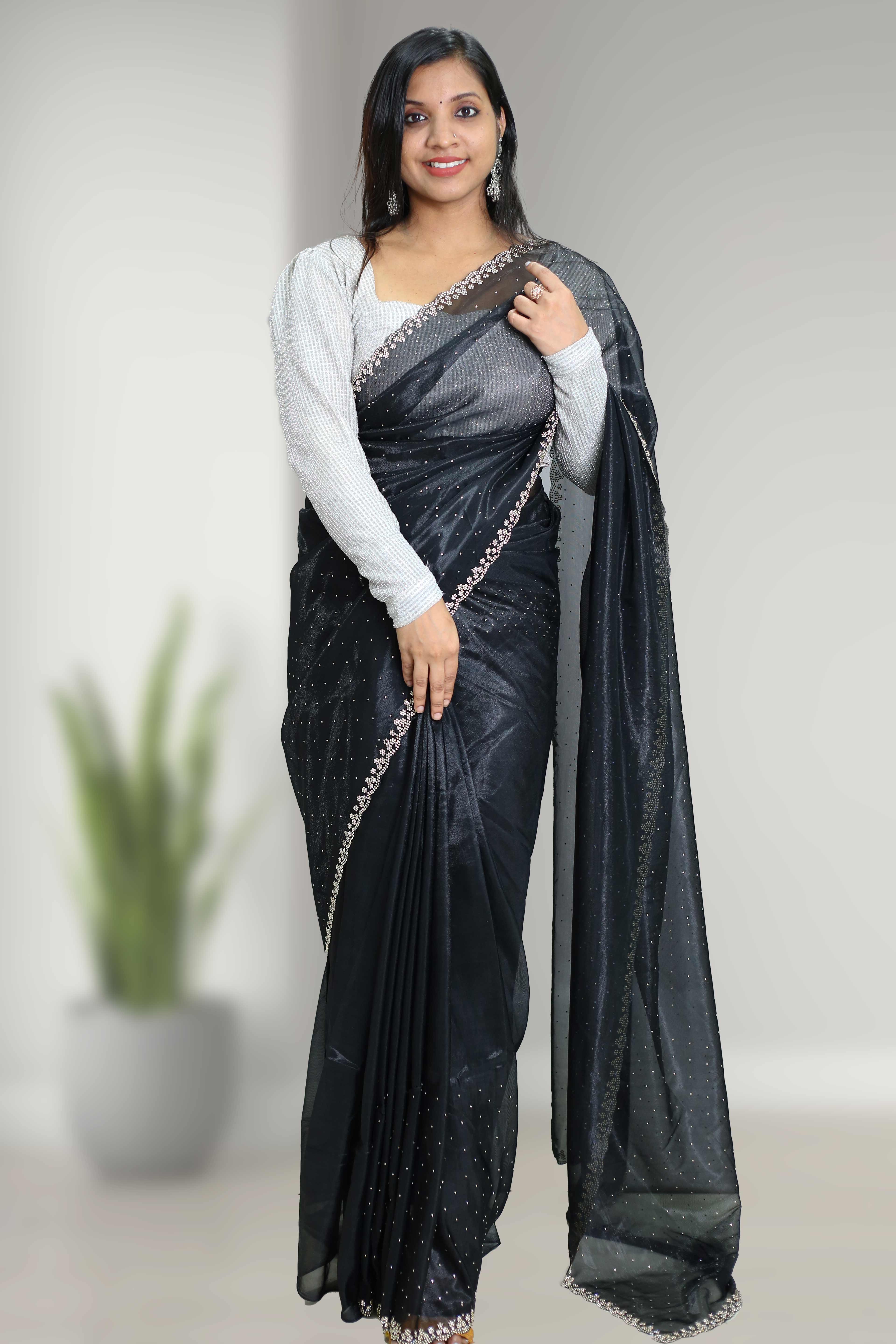 Bring sparkle to your ethnic collection with this net fancy saree adorned with elegant stone work. Lightweight and graceful, it comes with blouse material included, making it a perfect choice for festive occasions and special events.