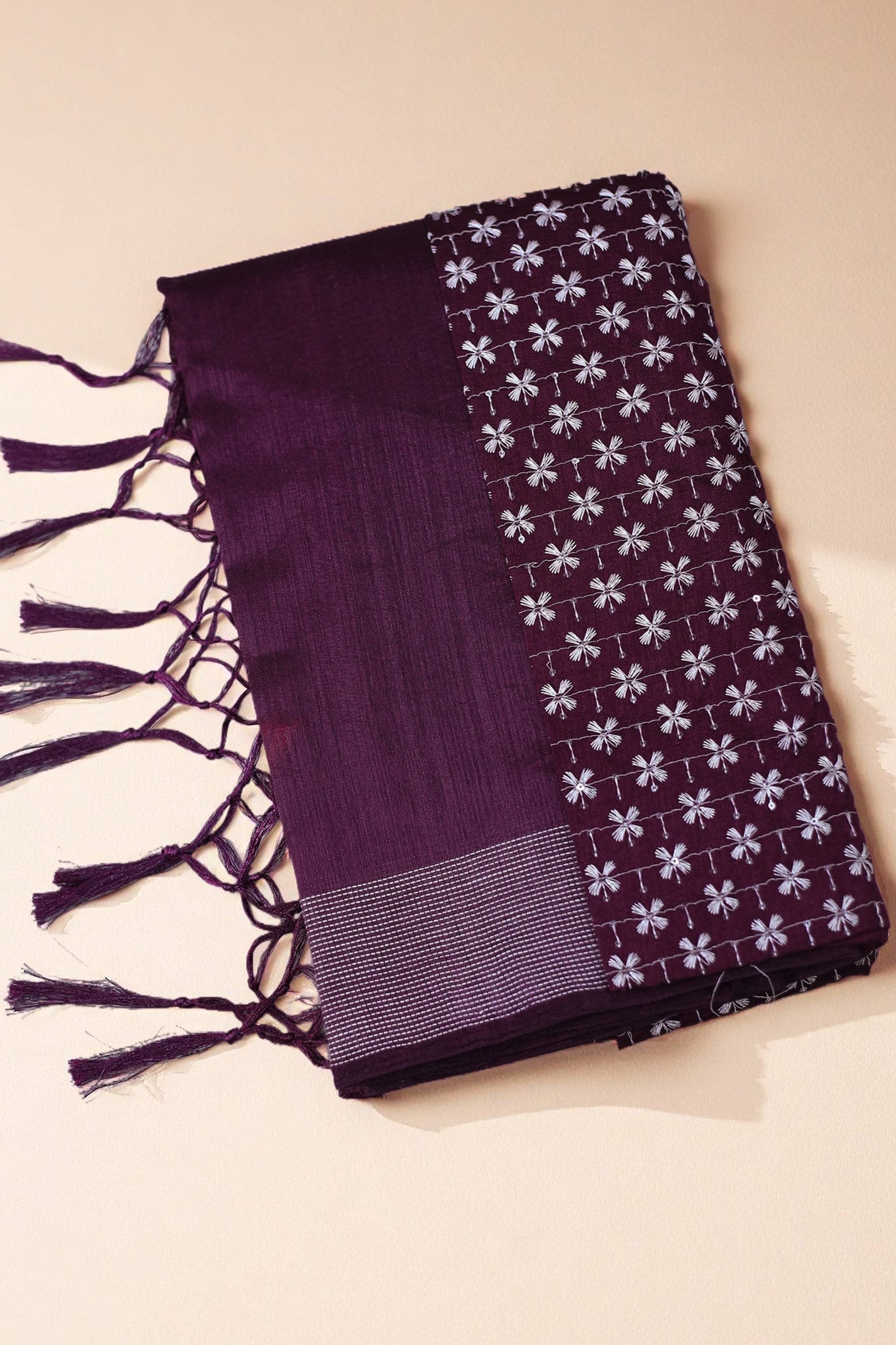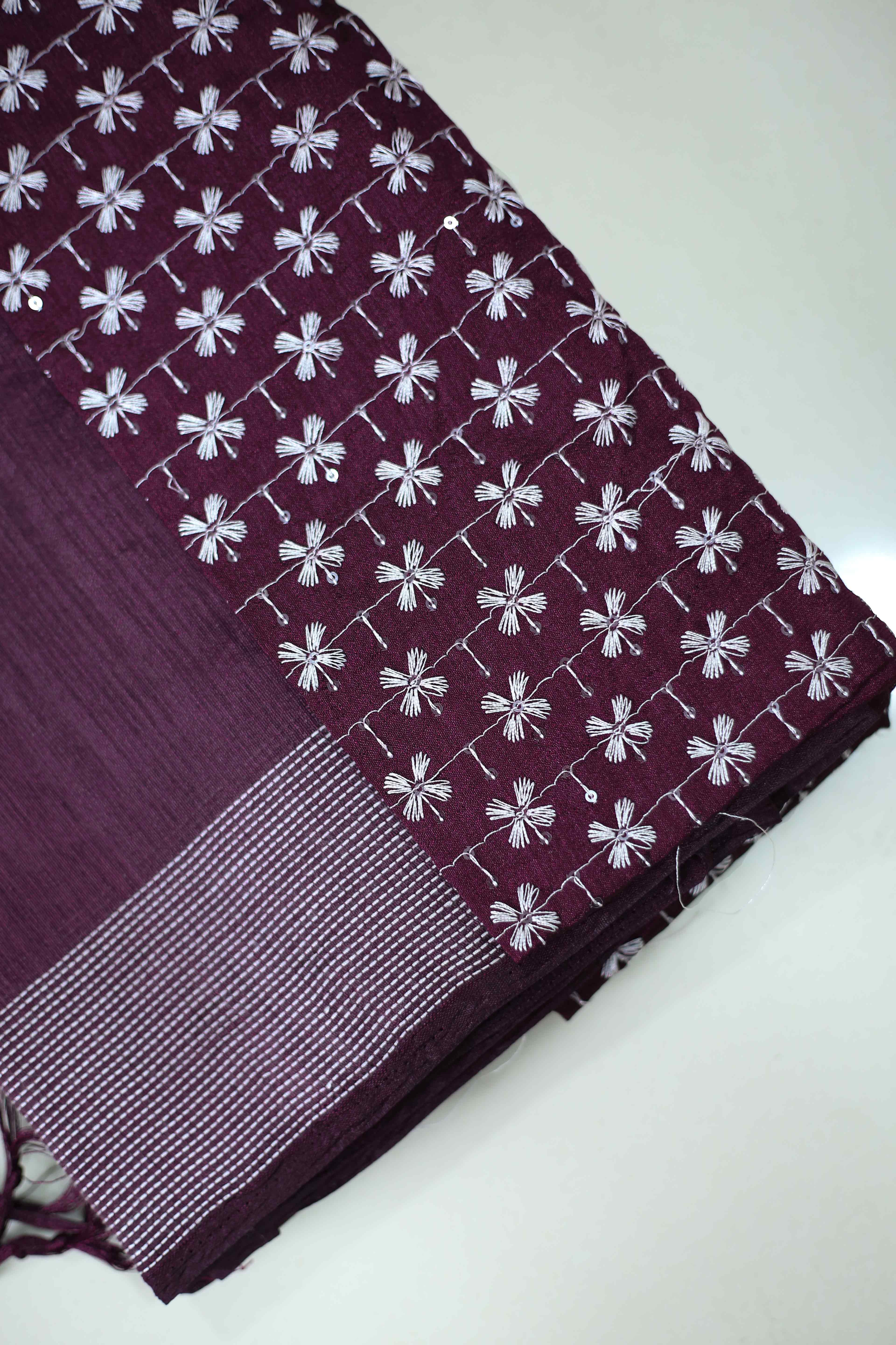 Plain chiffon saree enhanced with embroidery thread work