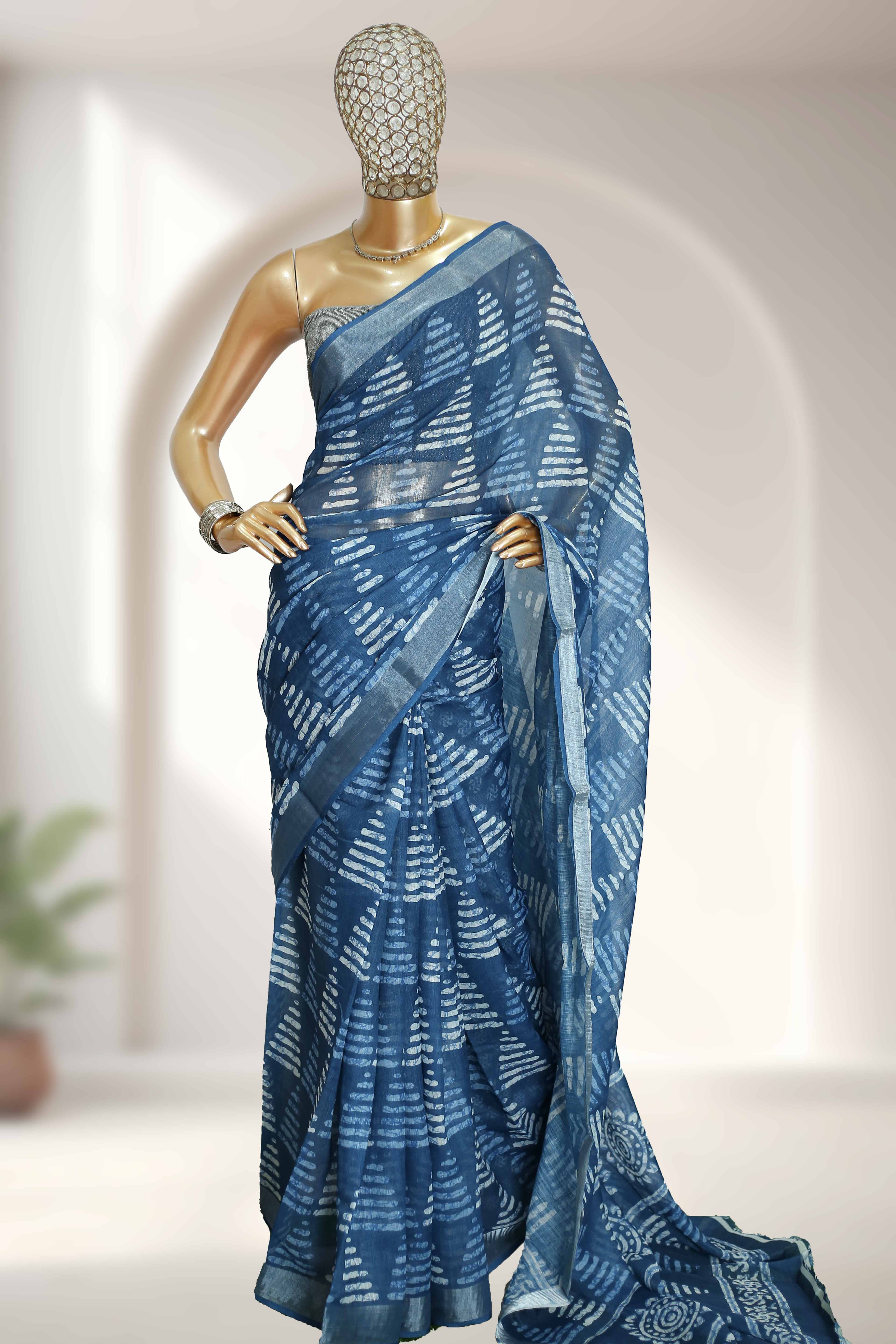Elegant printed design throughout the sari