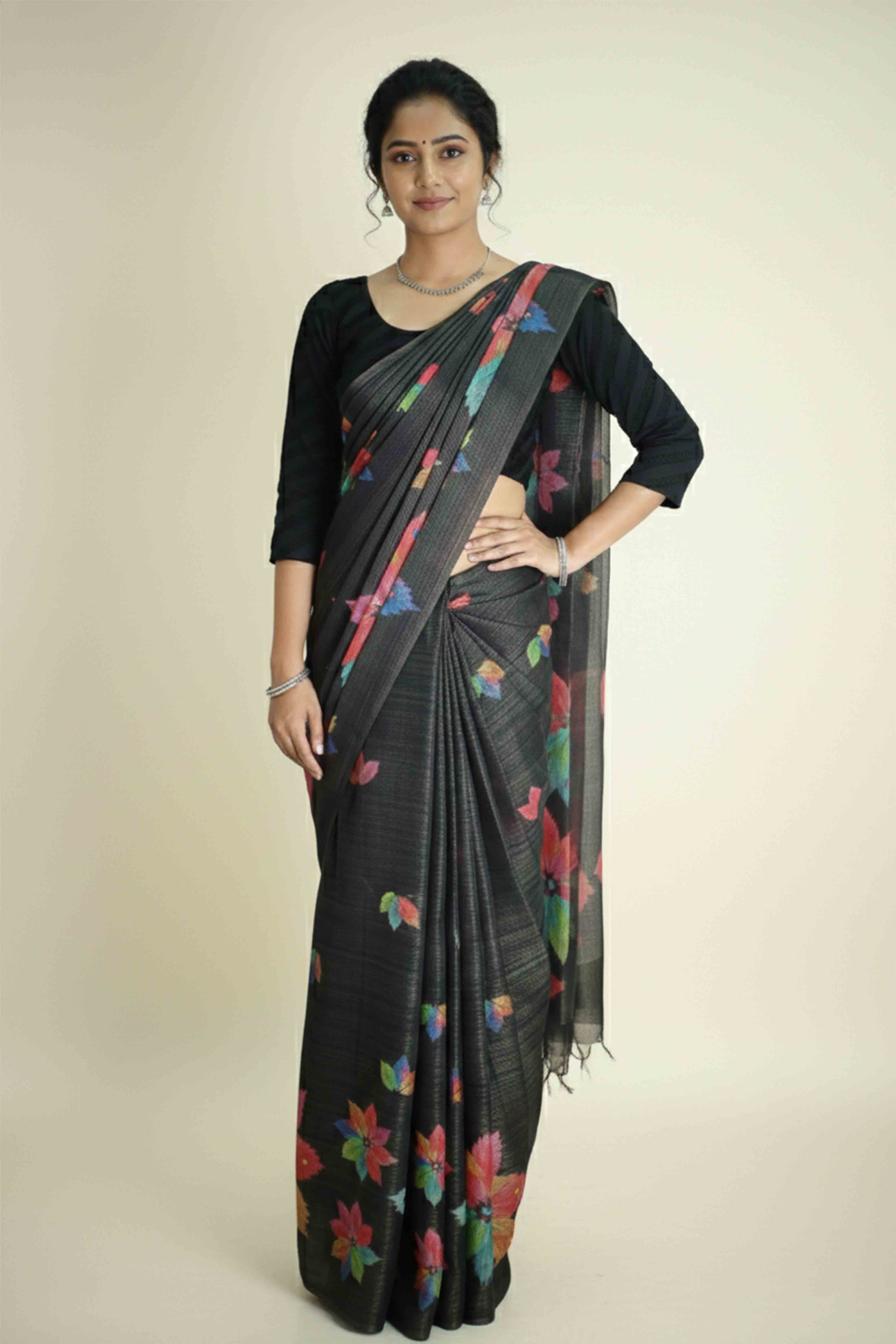 Varanasi Saree – Mirror Work Floral Print
