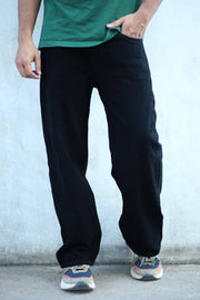 Durable denim fabric with a relaxed wide-leg baggy fit