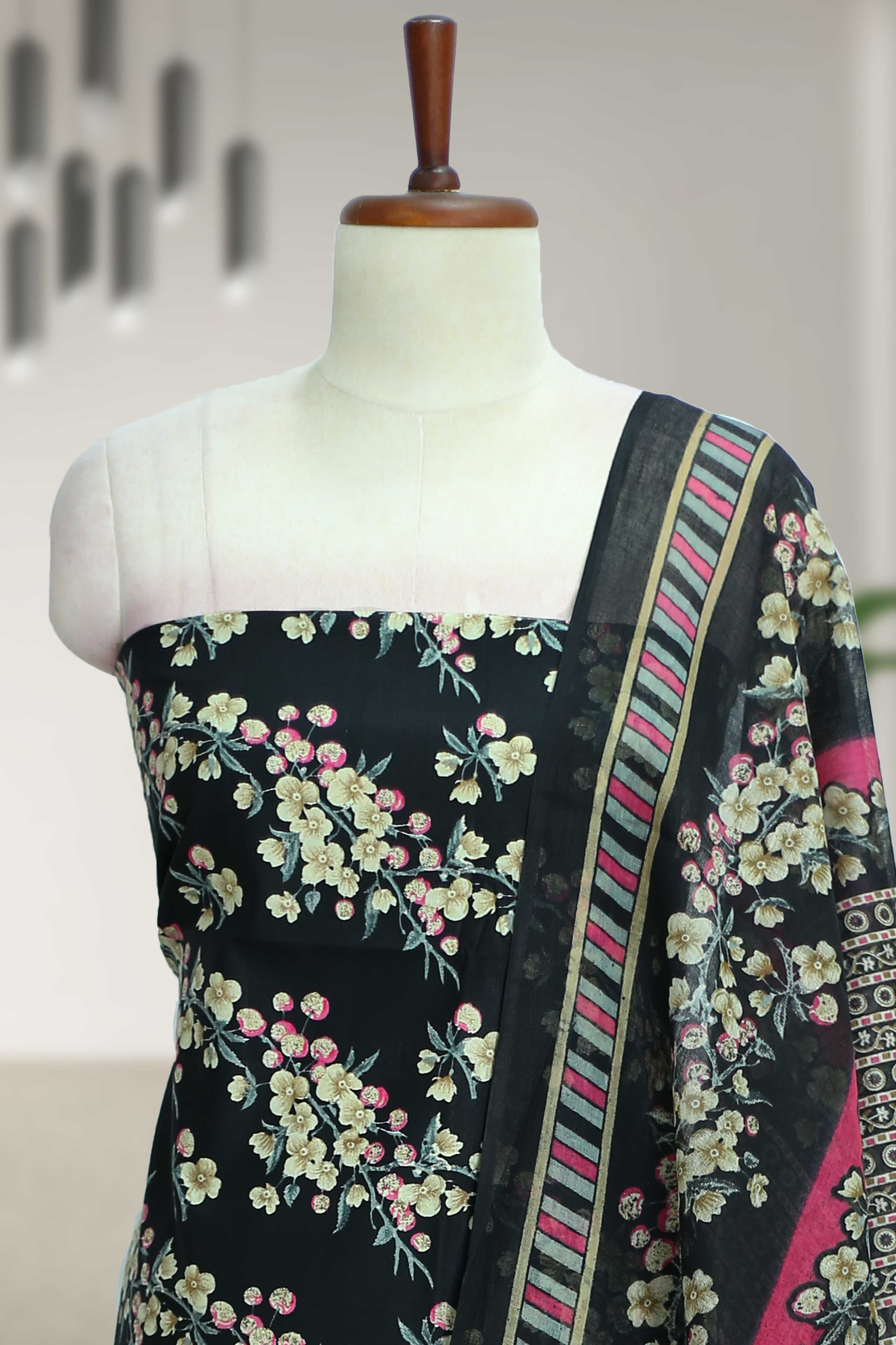 Soft cotton fabric with a graceful floral print — perfect for daily wear and comfort styling.