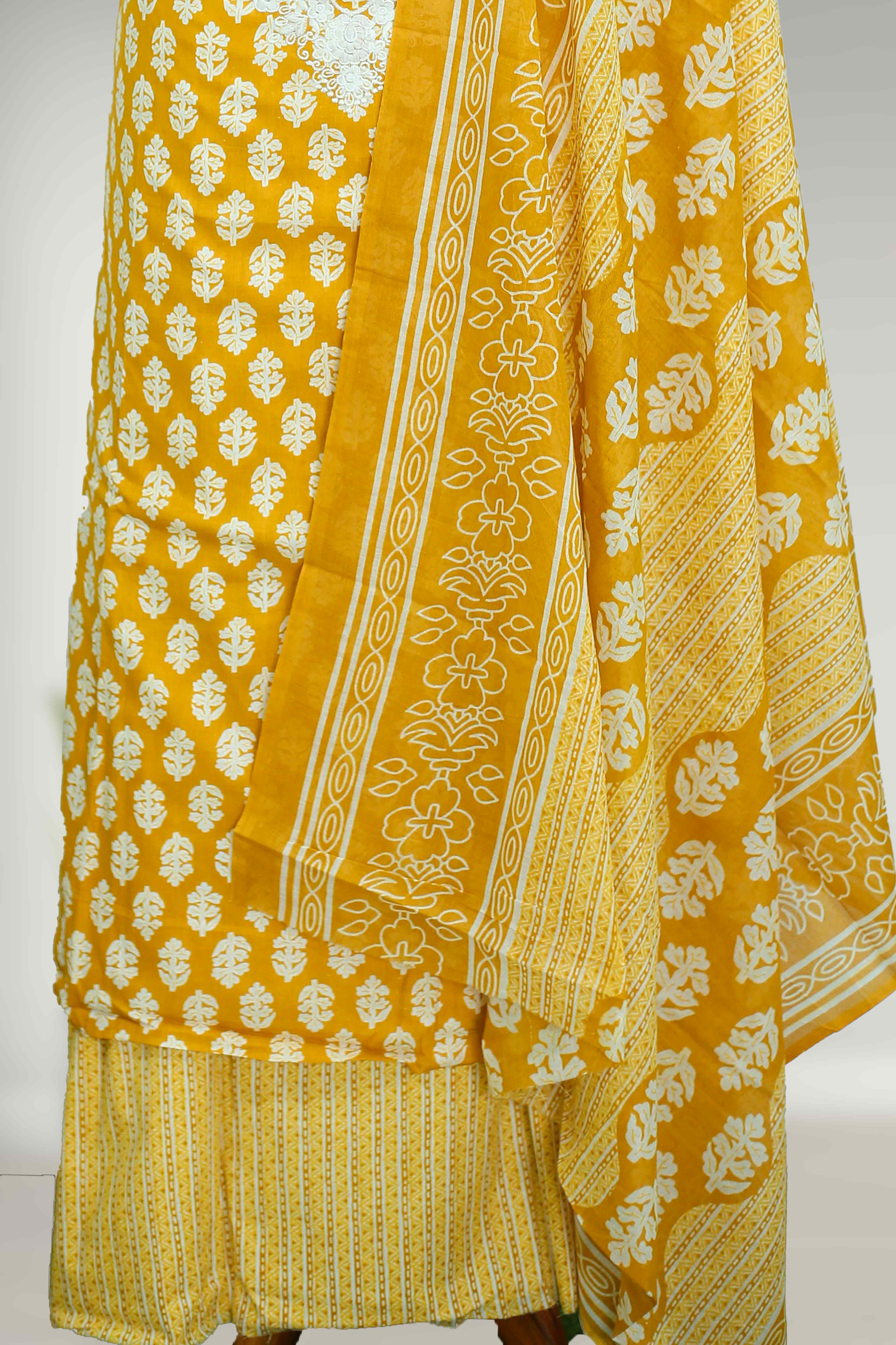 Elegant floral embroidery with thread detailing on soft cotton fabric — perfect for daily wear, office use & casual ethnic occasions.