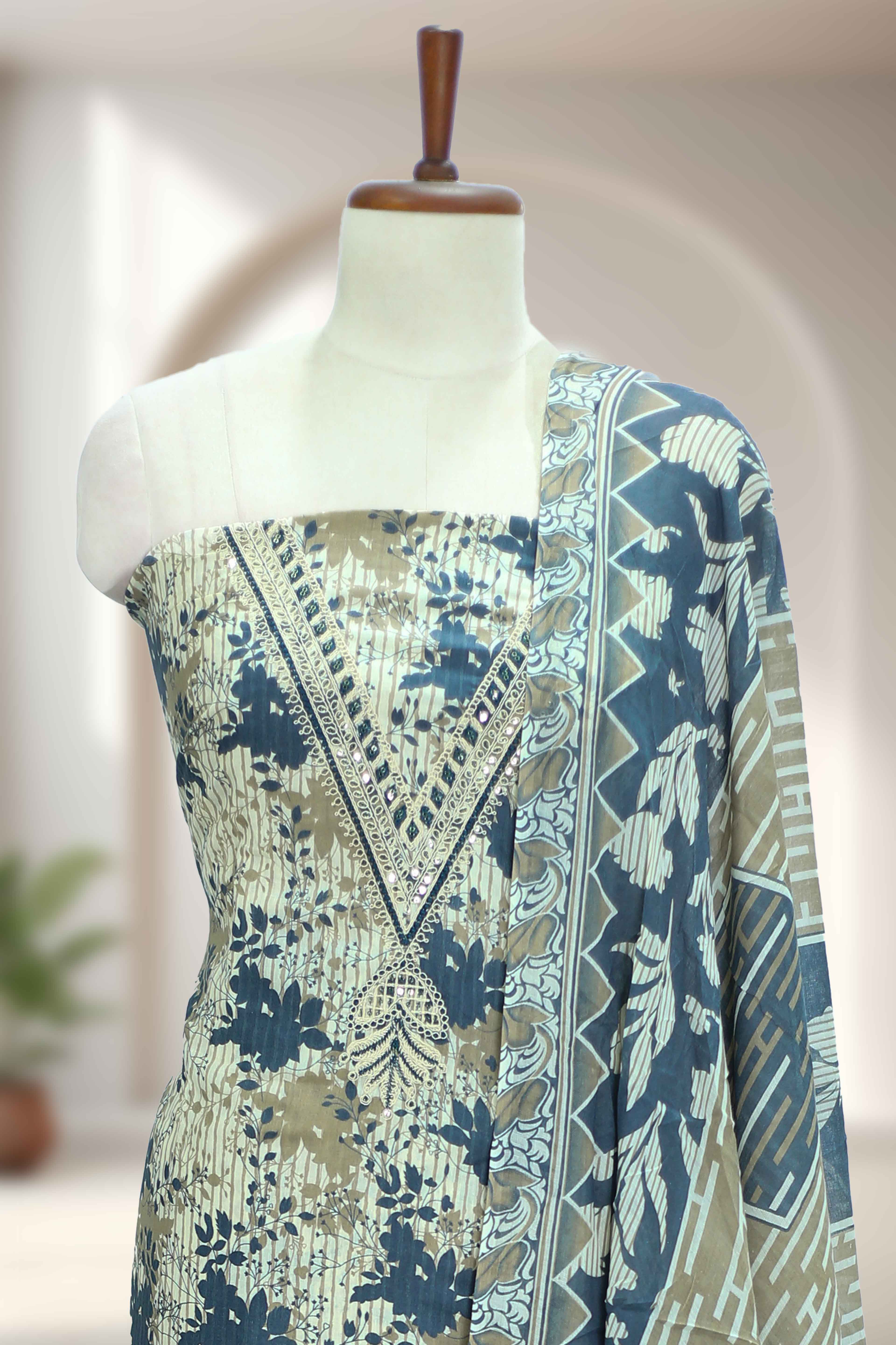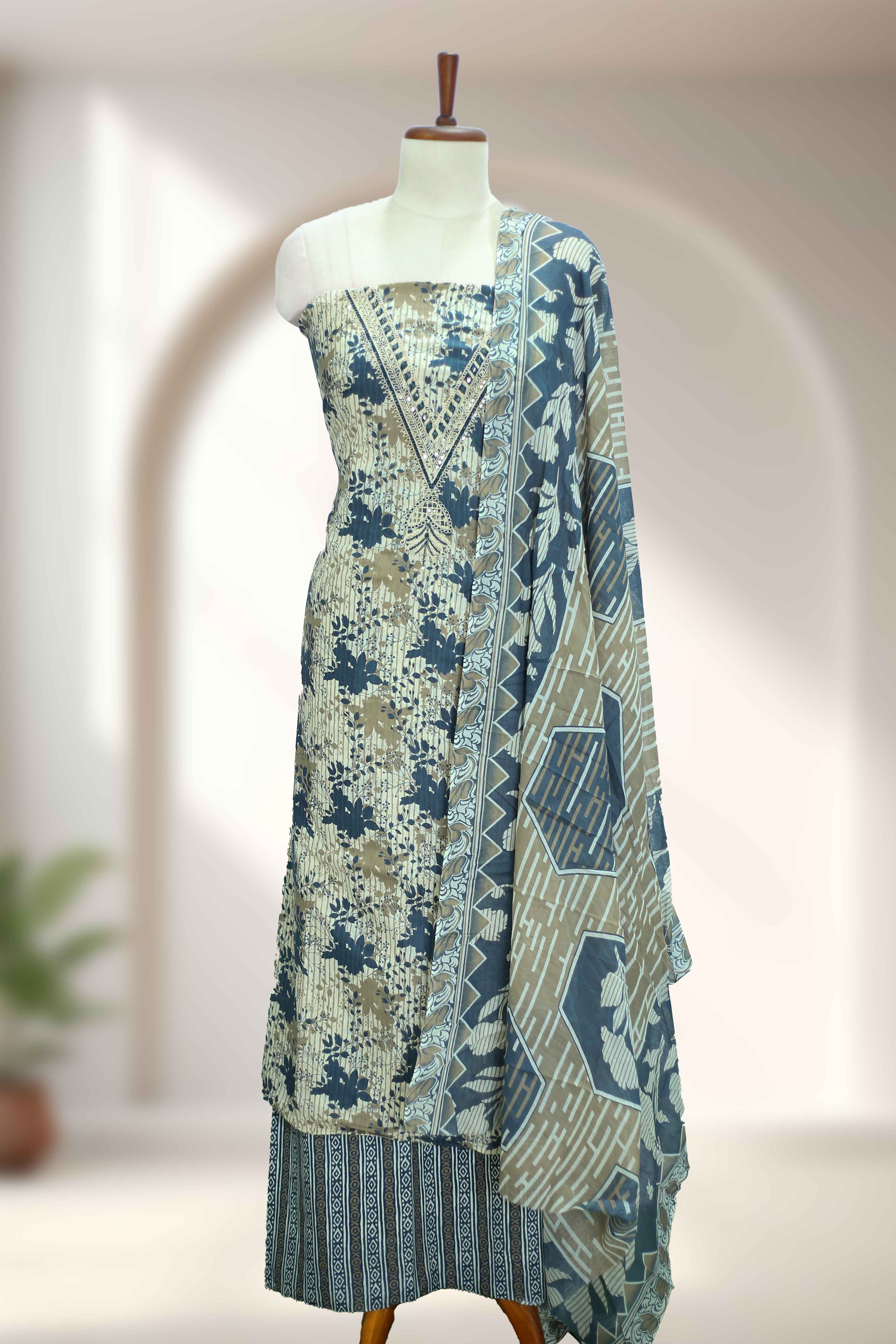 Cotton Churidar Material – Floral Print & Sequins Work – suryasilksonline.com