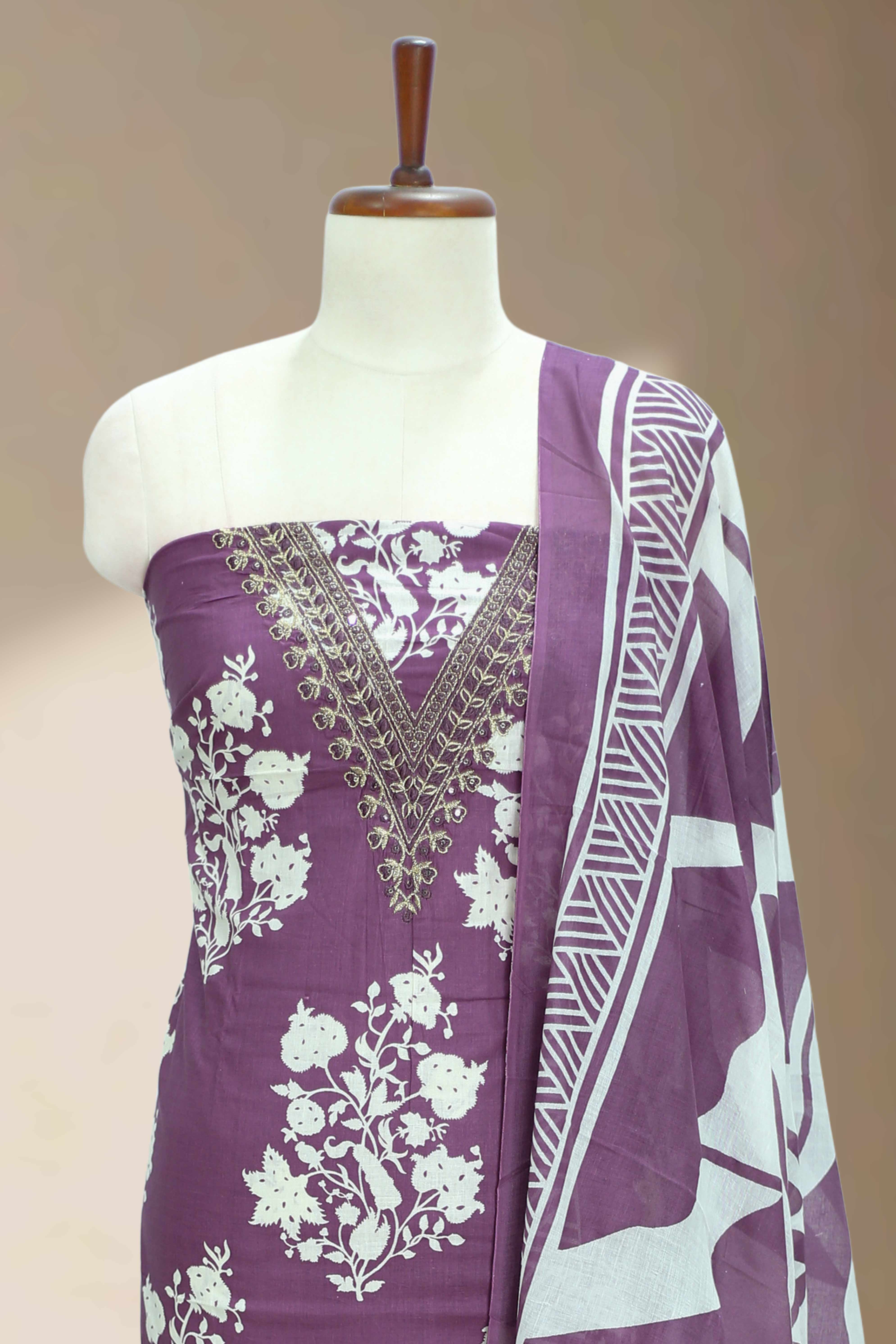 Premium cotton fabric with elegant golden thread and sequins detailing
