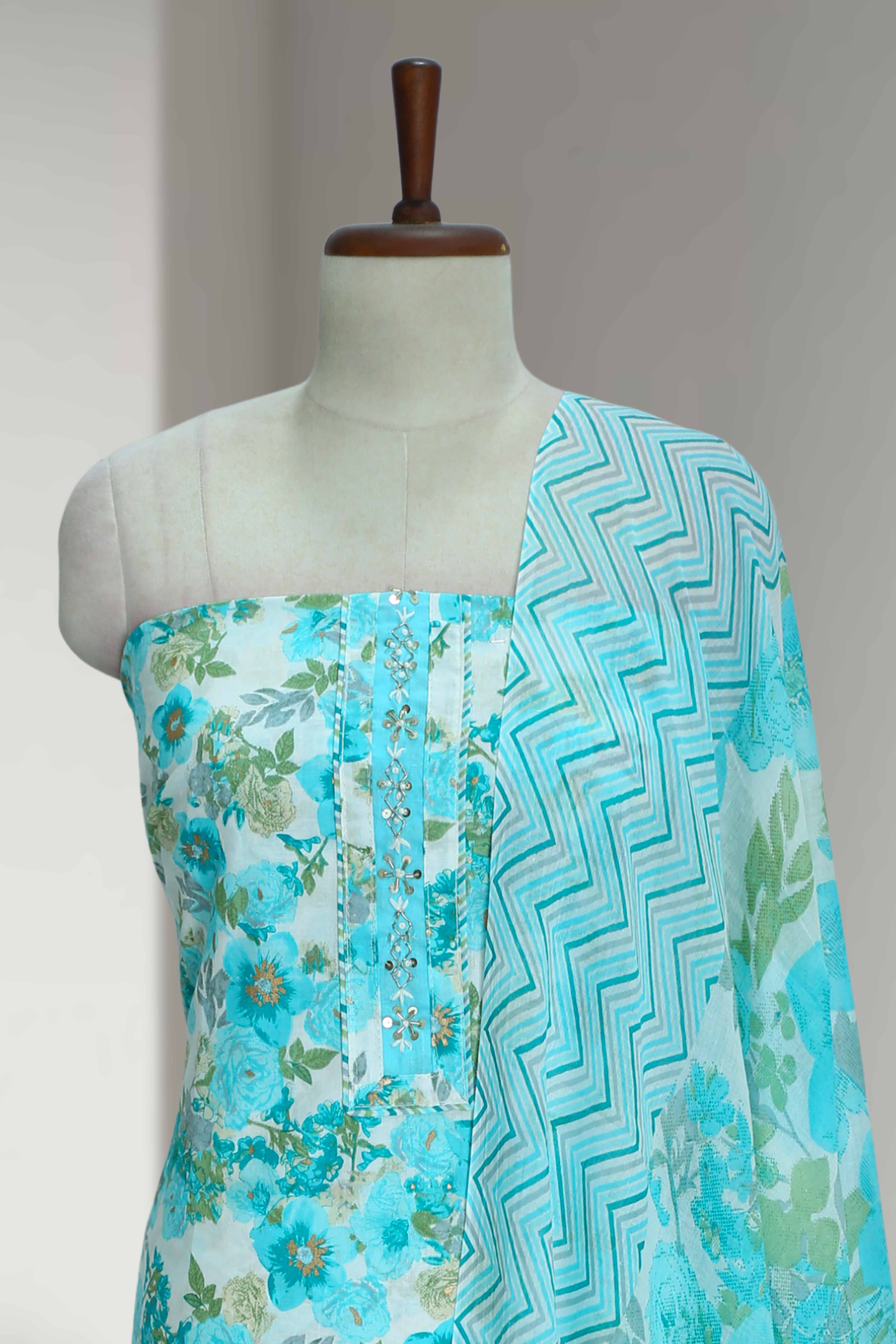 Elegant cambric print with sequins and cut bead embellishment — ideal for daily wear, office use & casual ethnic occasions.