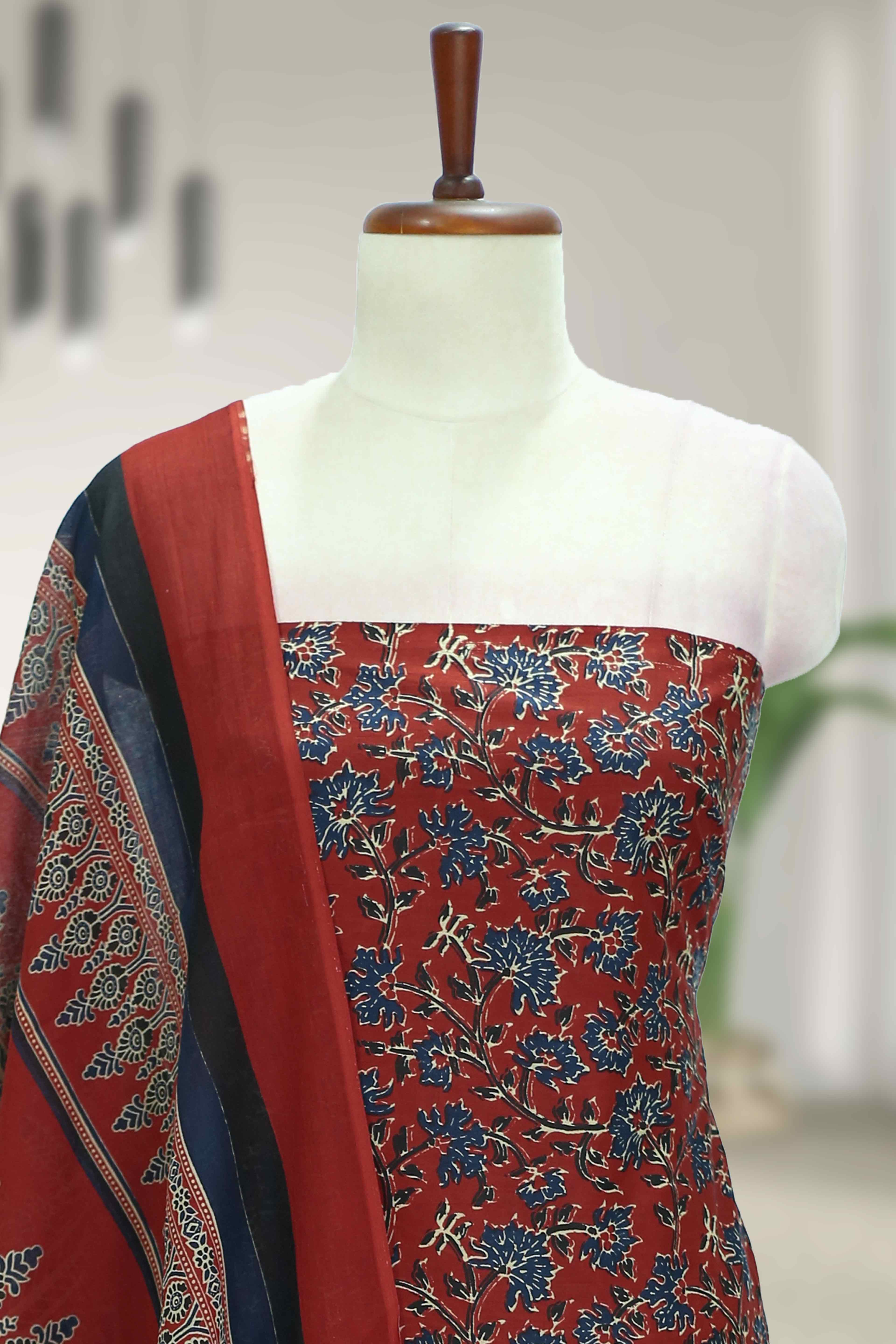 Cotton Churidar Material with Kalamkari Print – suryasilksonline.com