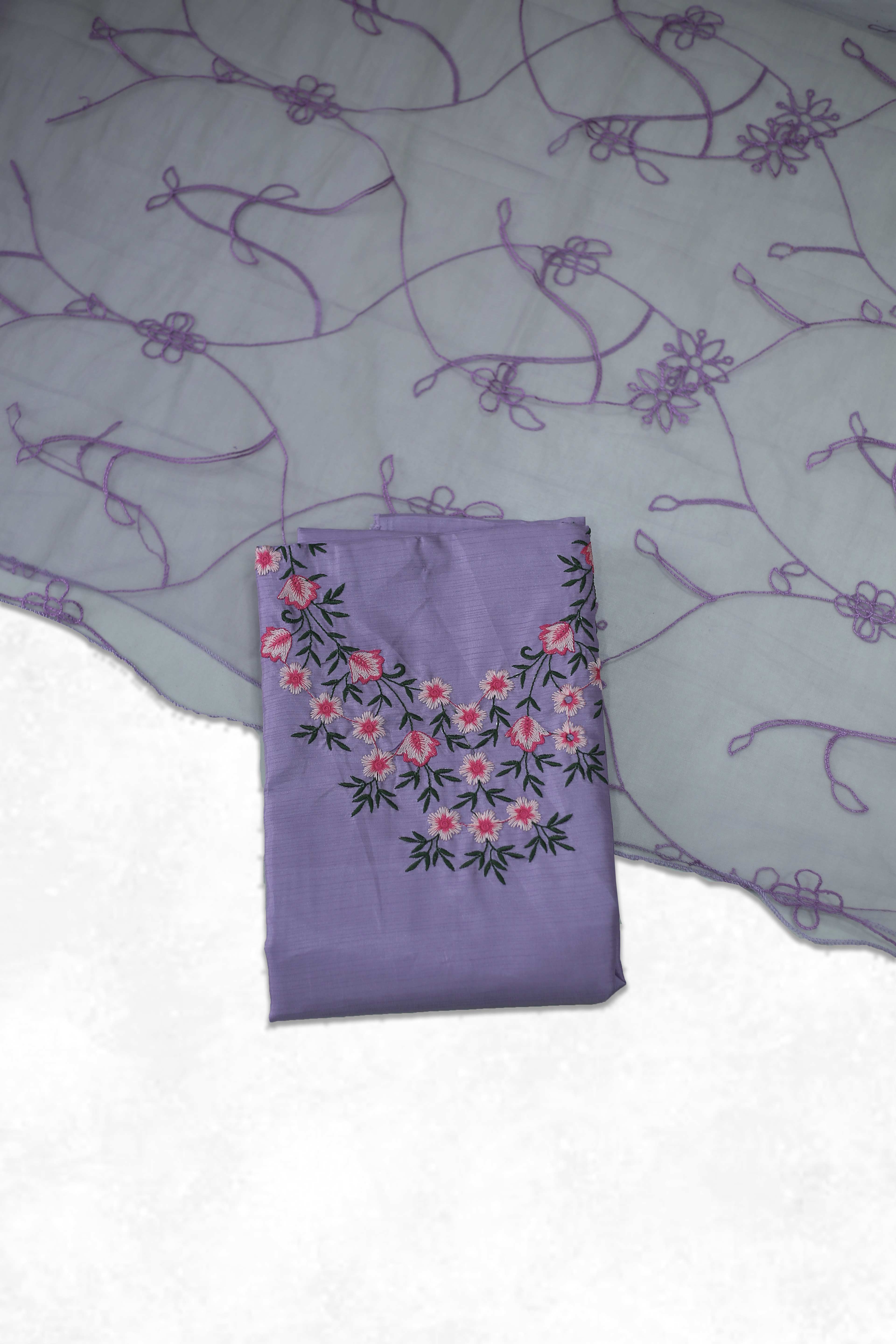 Floral Thread Work Silk Churidar Material