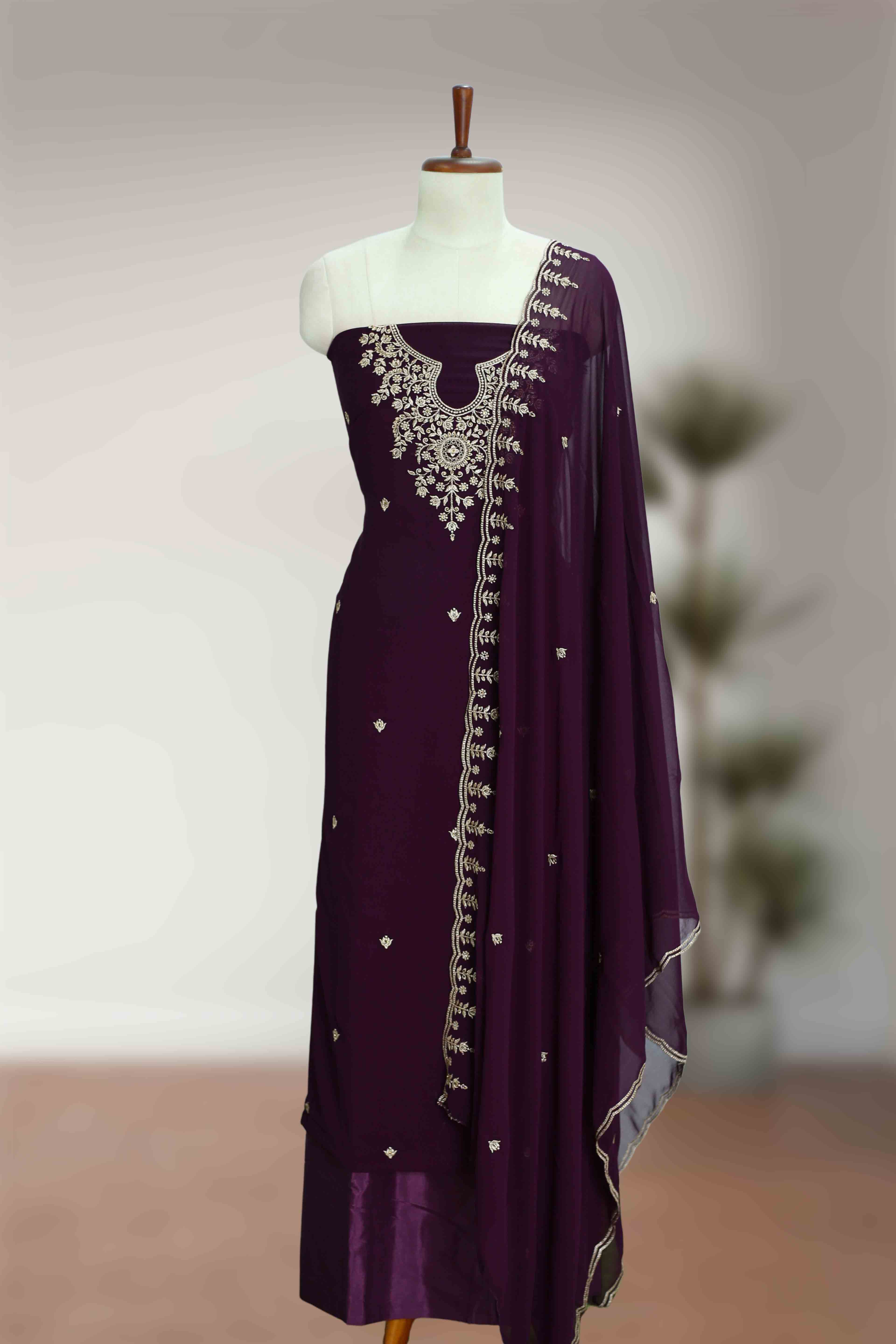 Georgette Churidar Material – Golden Thread Work with Stone