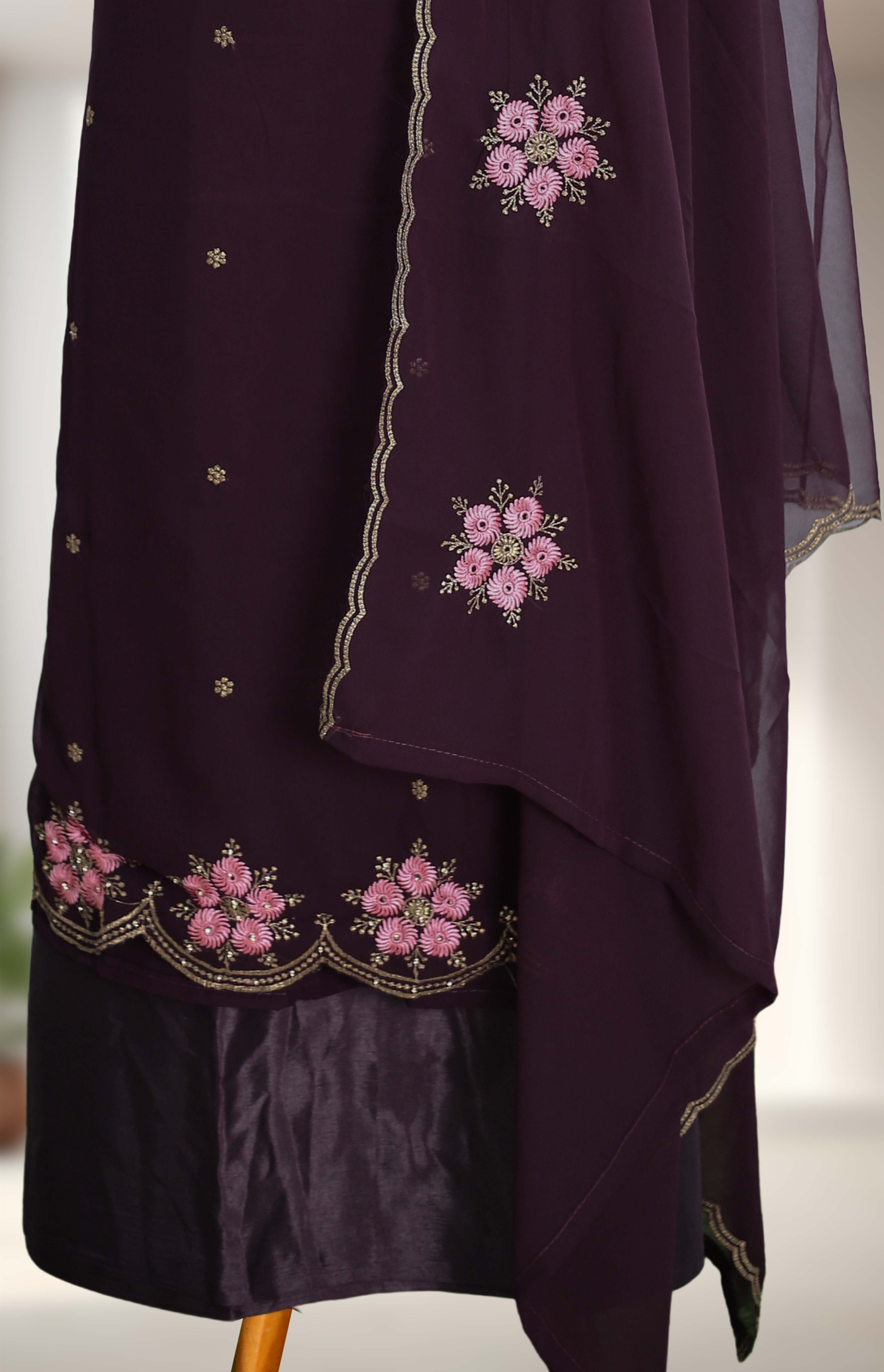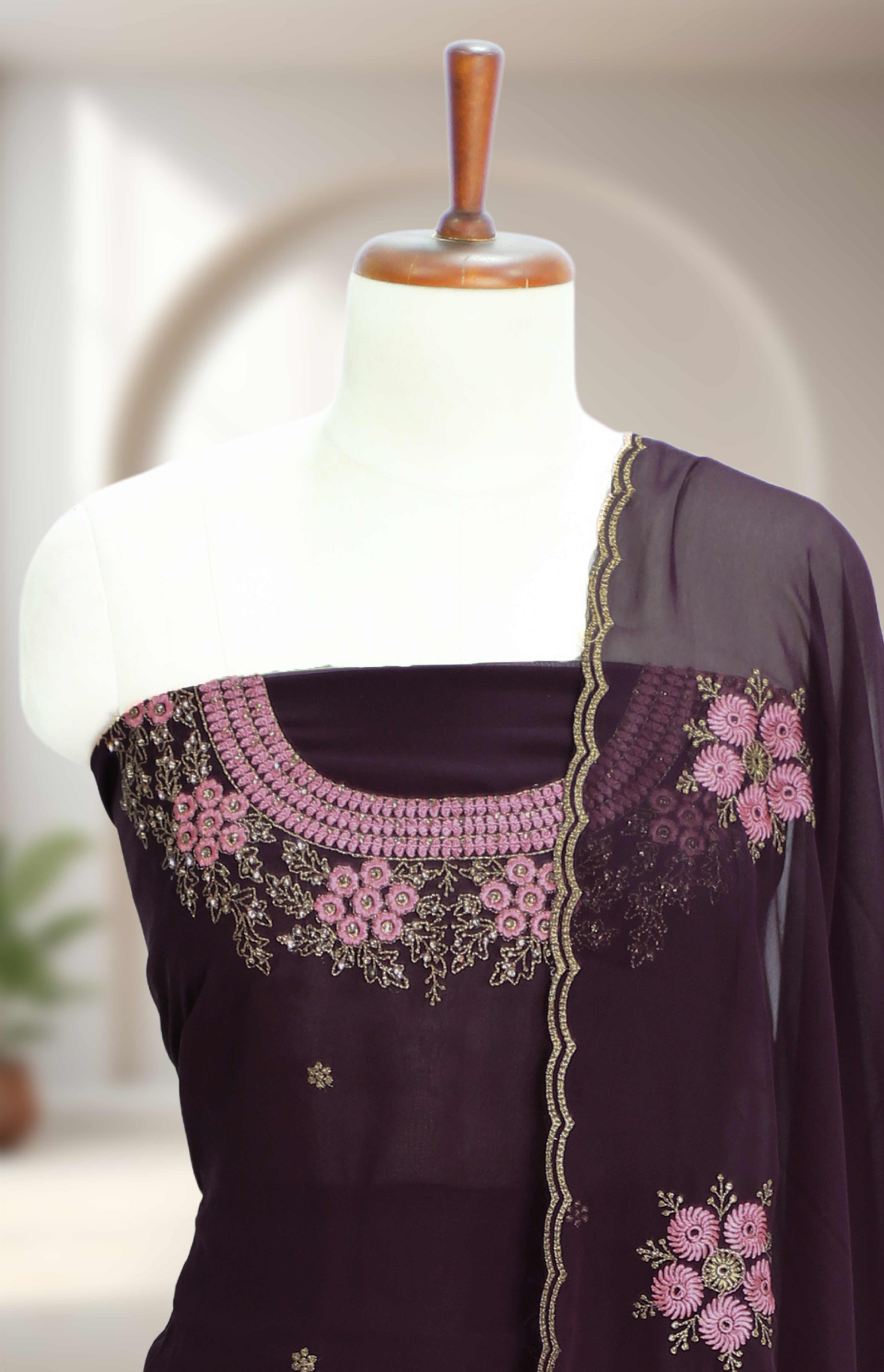 Elegant georgette churidar material featuring fine thread embroidery with stone embellishments