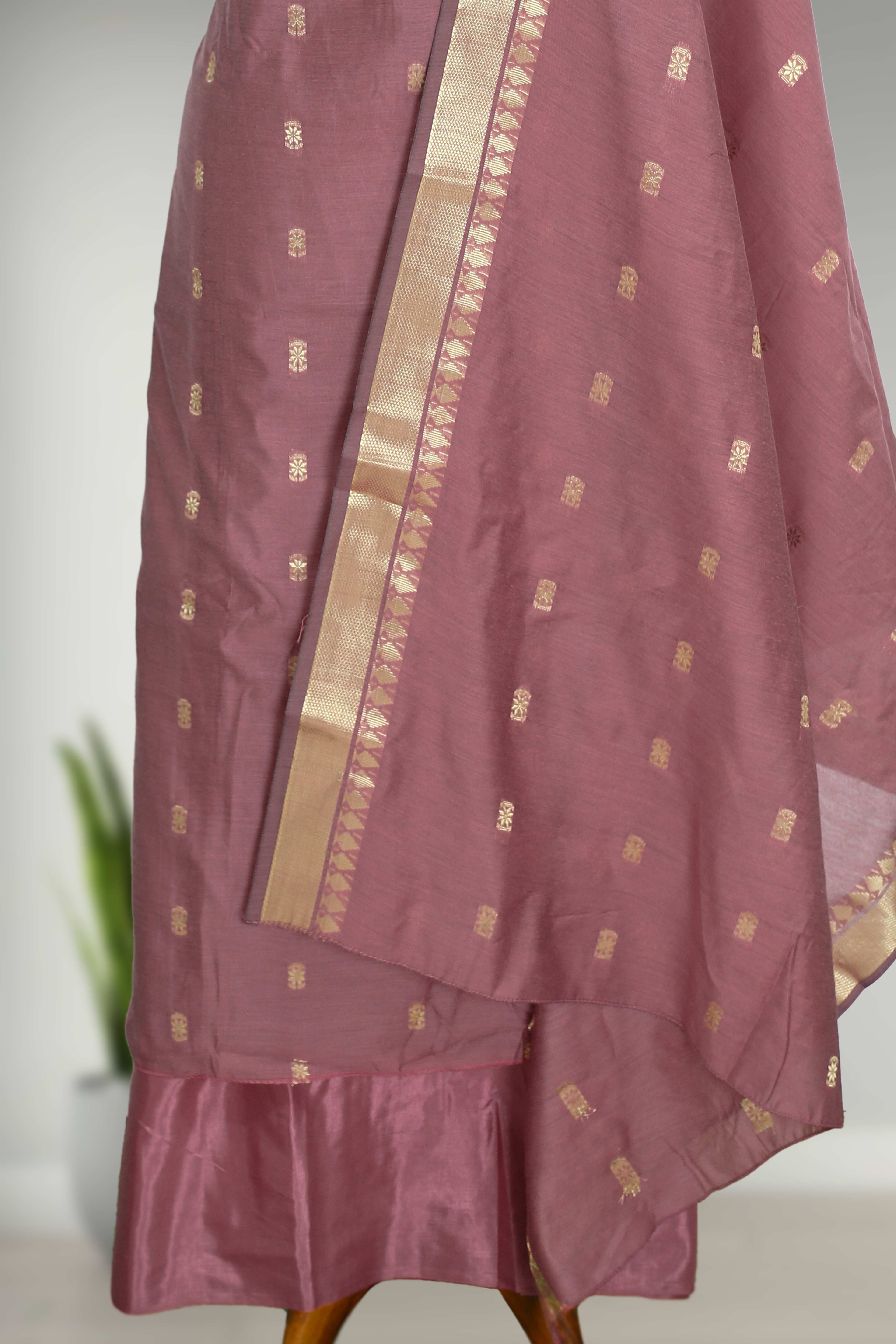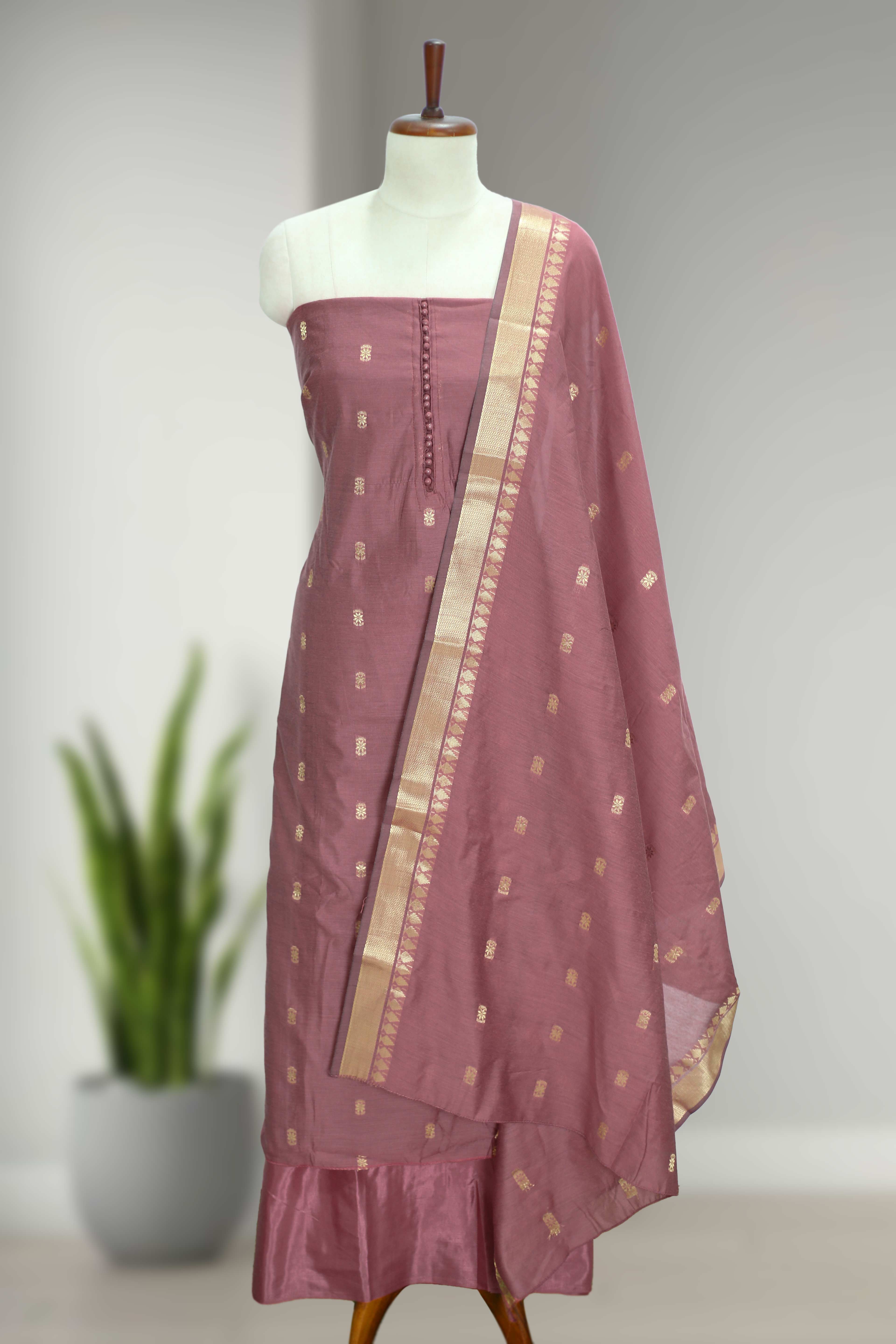 Elegant butta work with button detailing for a refined ethnic lookRich silk fabric suitable for festive and special occasionsUnstitched material for a perfect customized fit