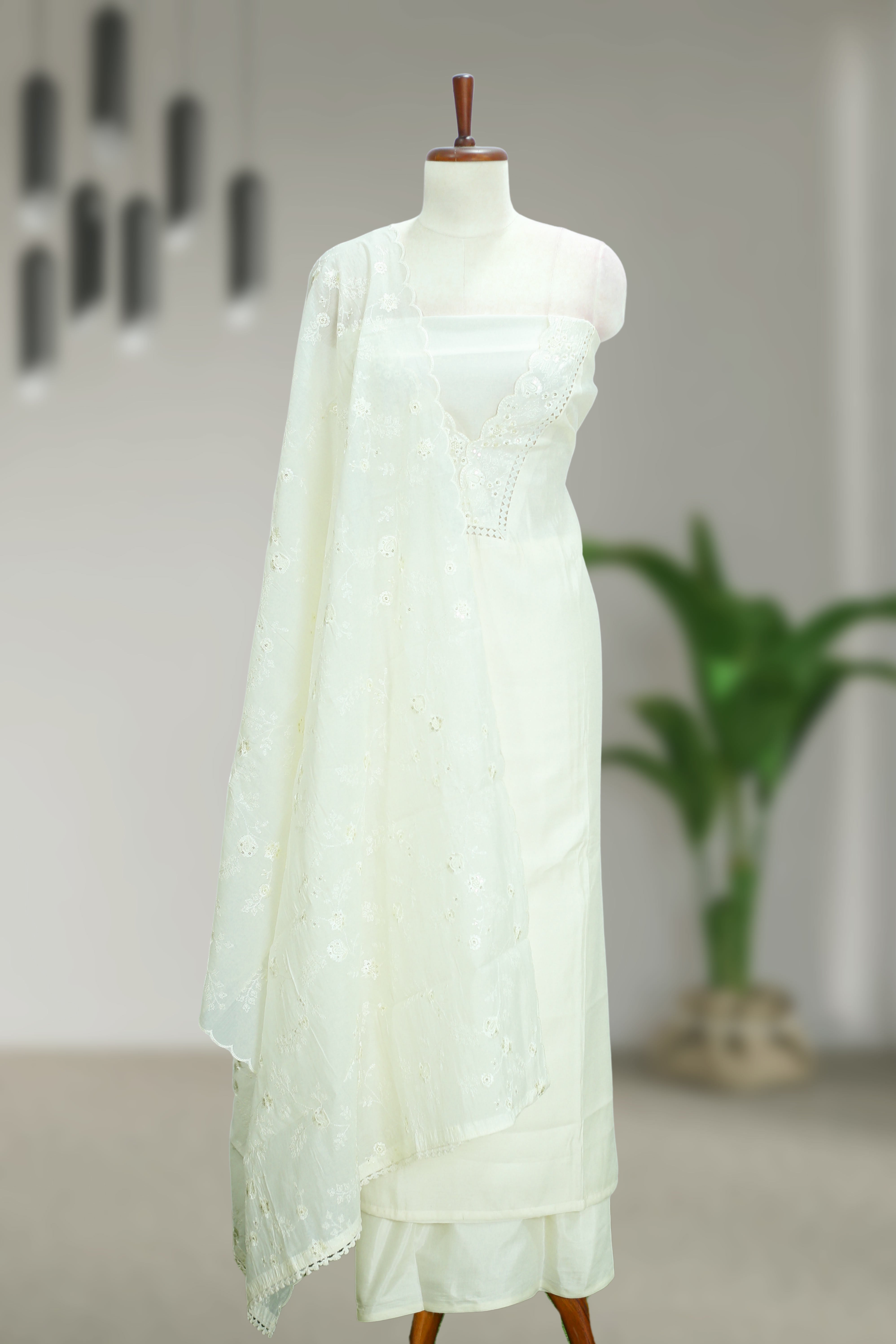 Silk Churidar Material – Embroidery Thread & Sequins Lace Work