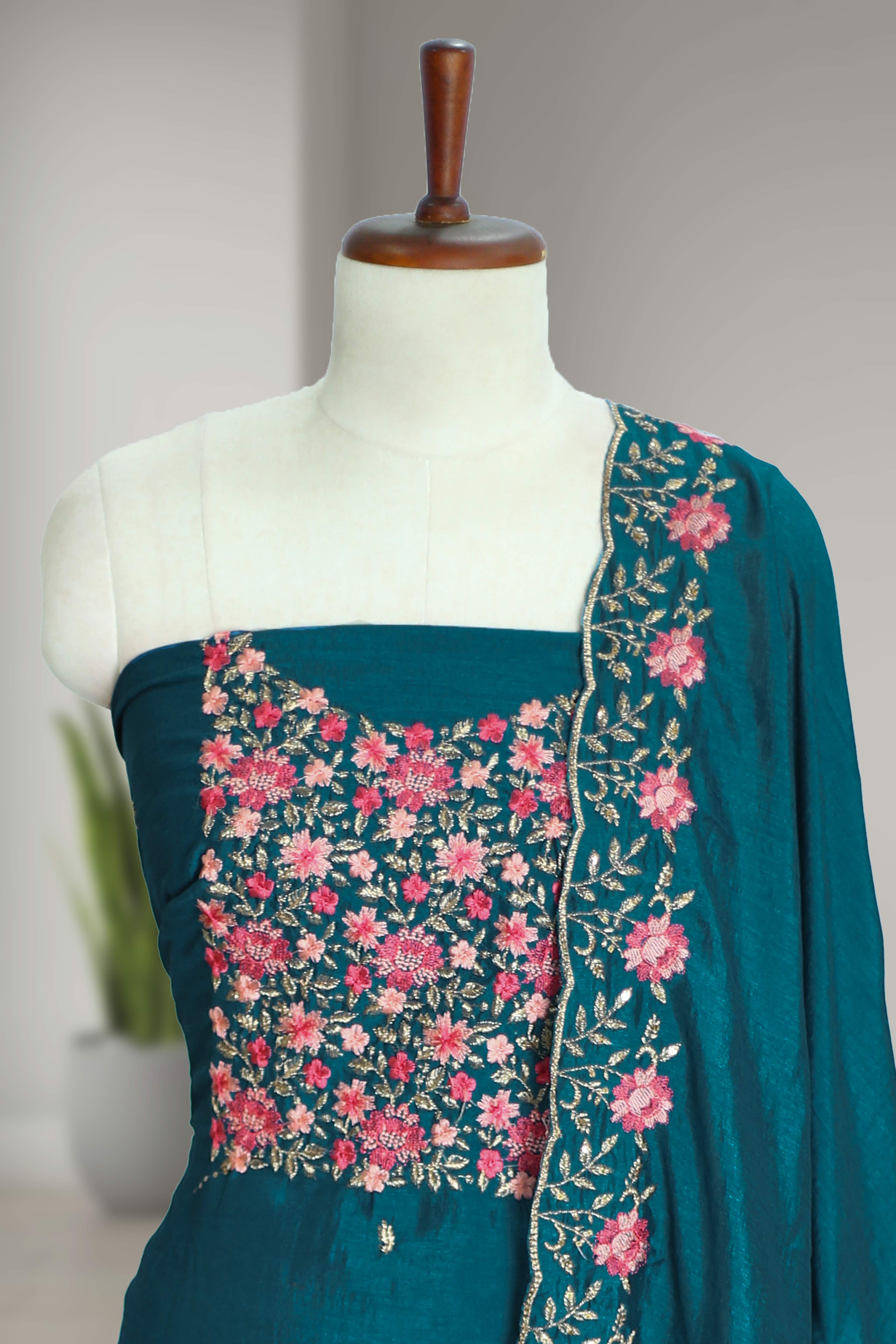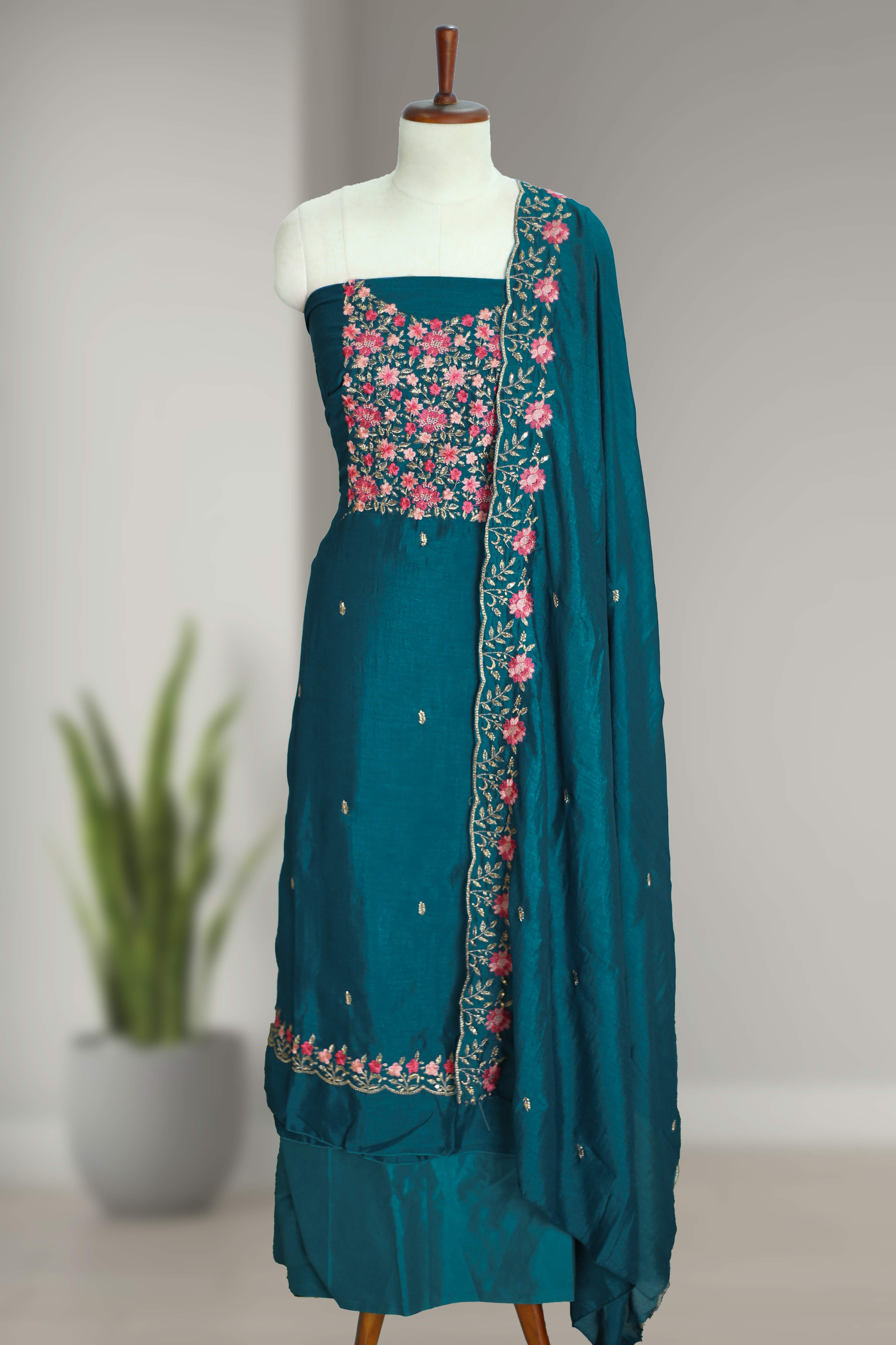 Silk Churidar Material – Floral Thread Work – suryasilksonline.com