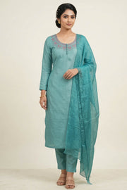 Silk Churidar Material – Floral Thread Work with Sequins – suryasilksonline.com
