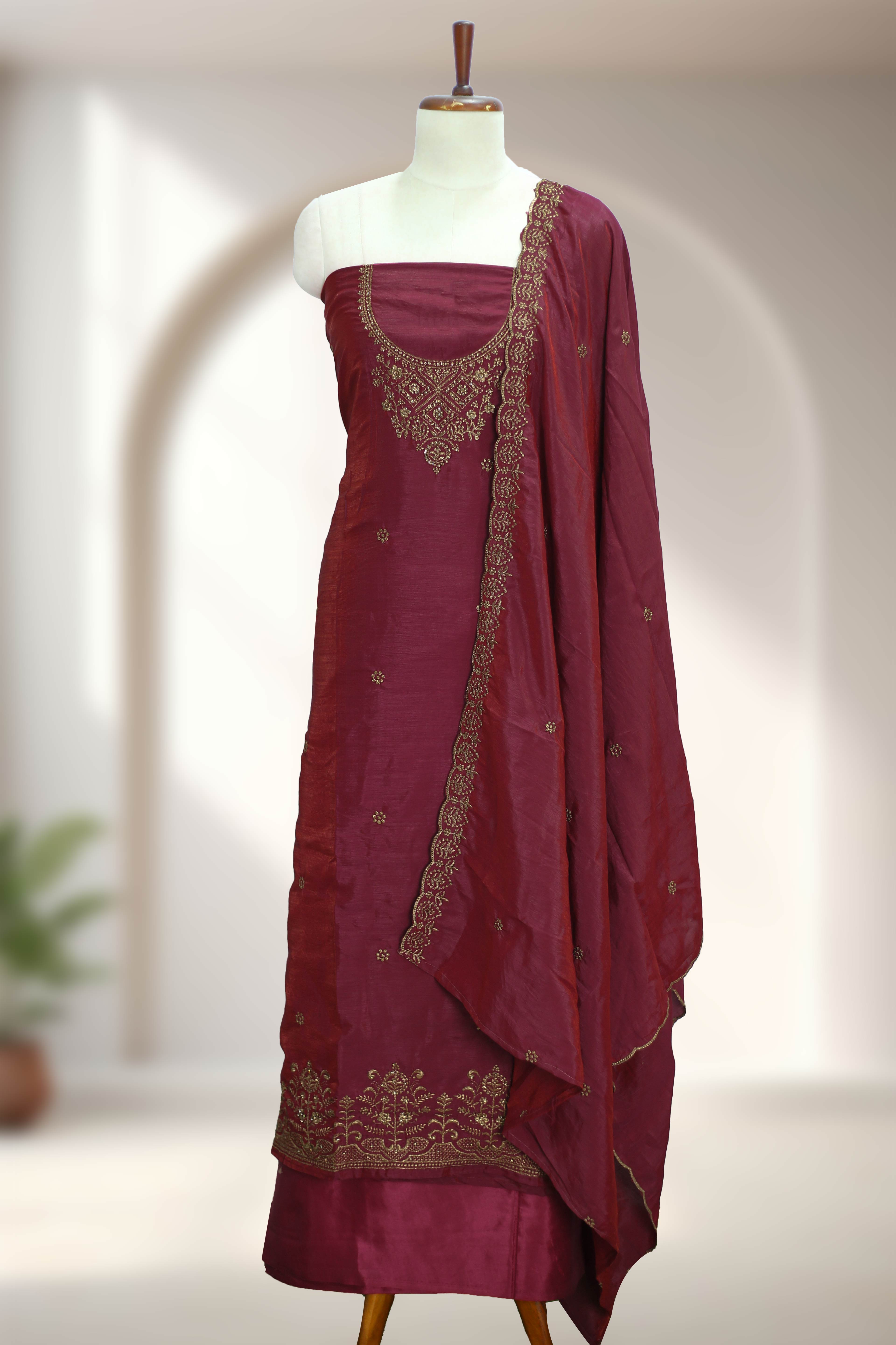 Silk Churidar Material – Golden Thread & Stone Work – suryasilksonline.com