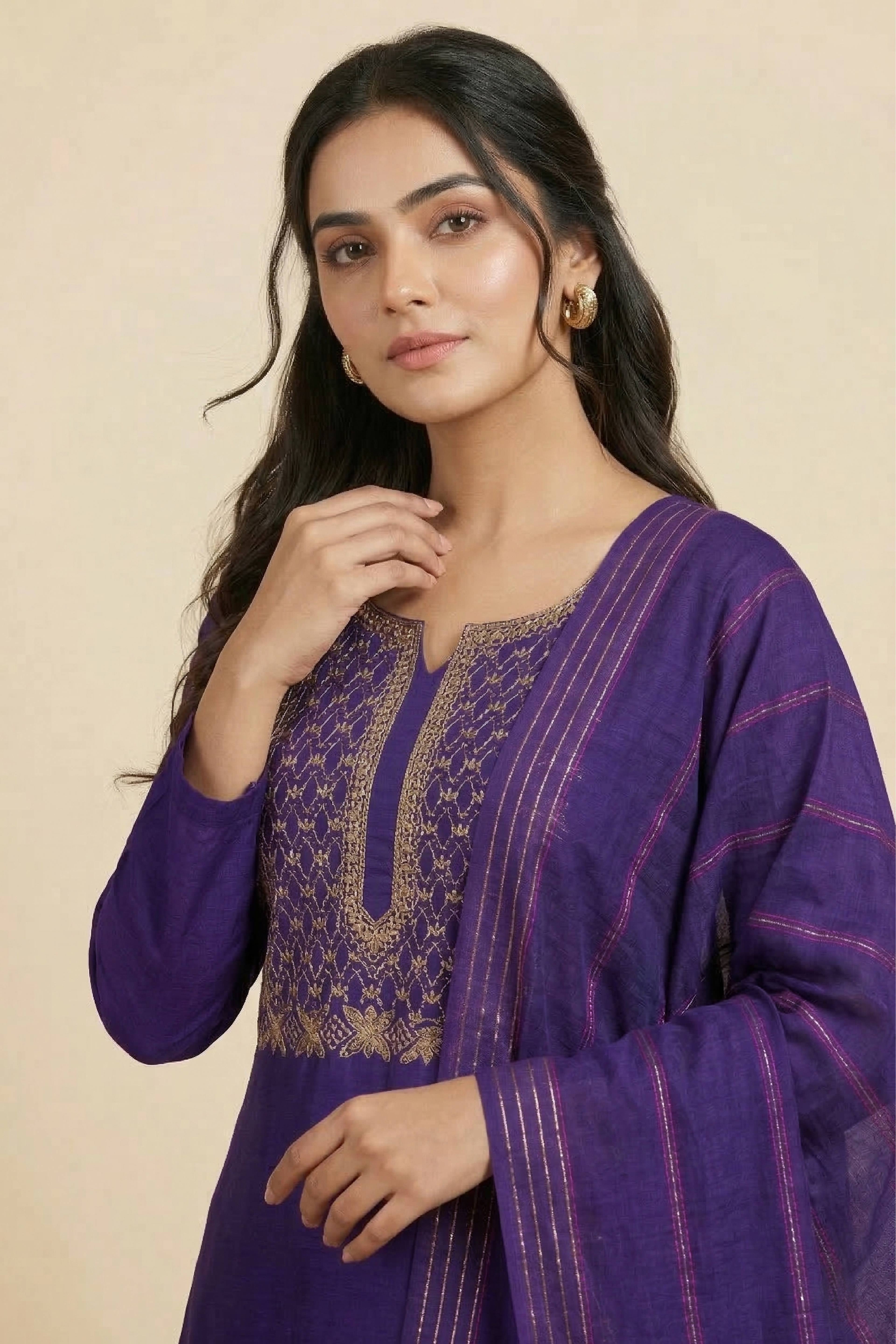 Silk Churidar Material – Golden Thread Work with Sequins