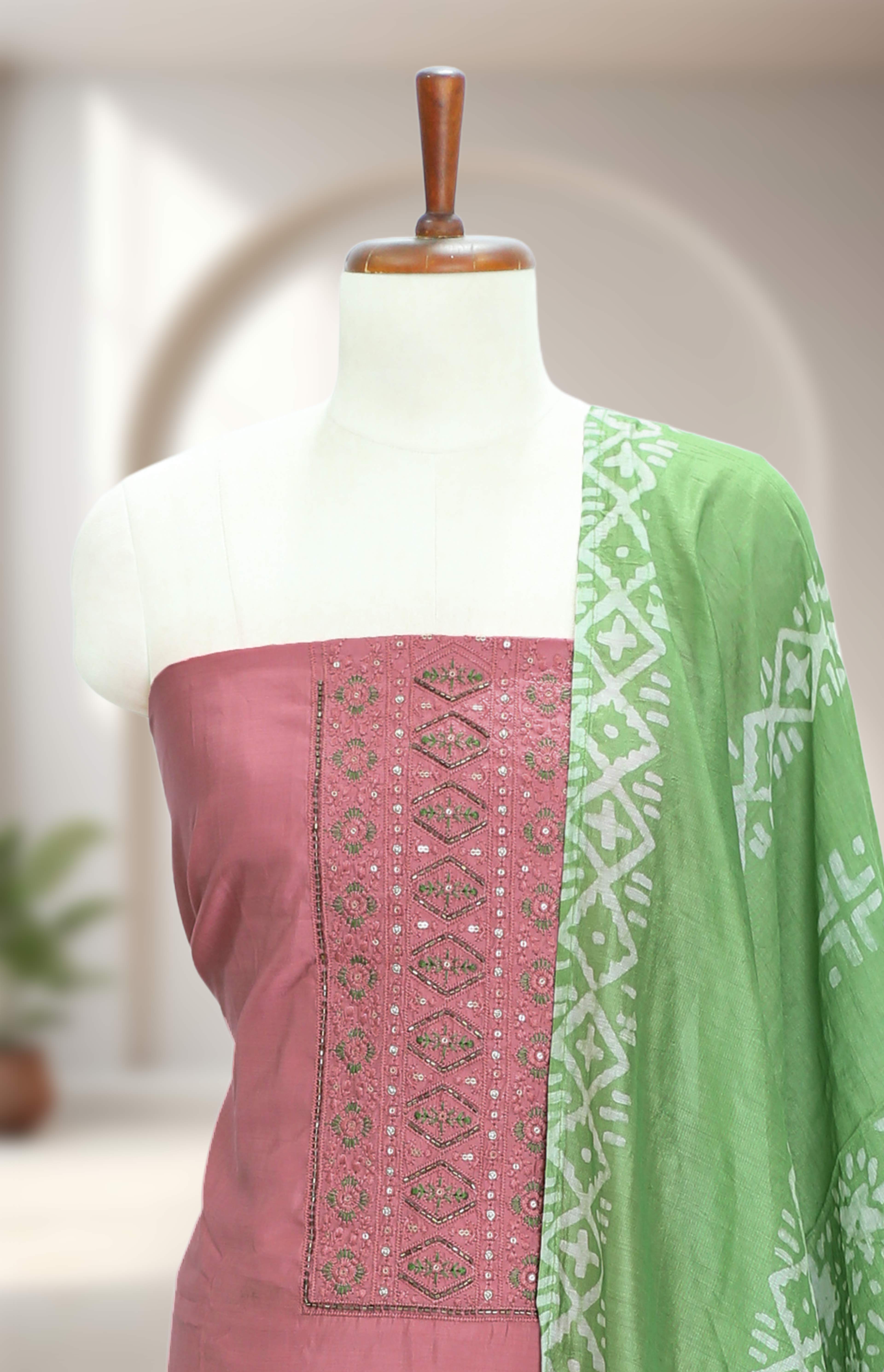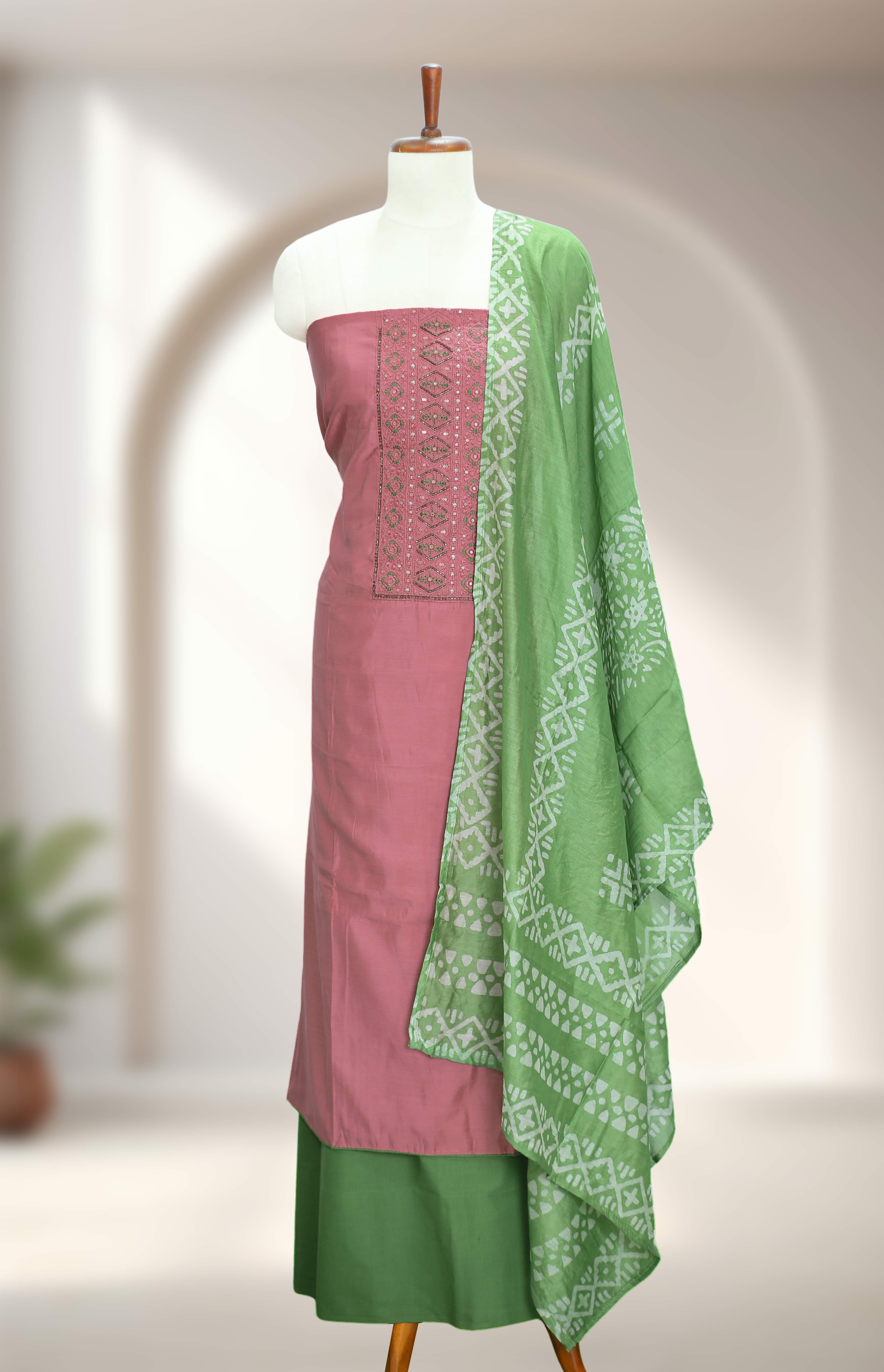 Silk Churidar Material – Thread Work with Beads