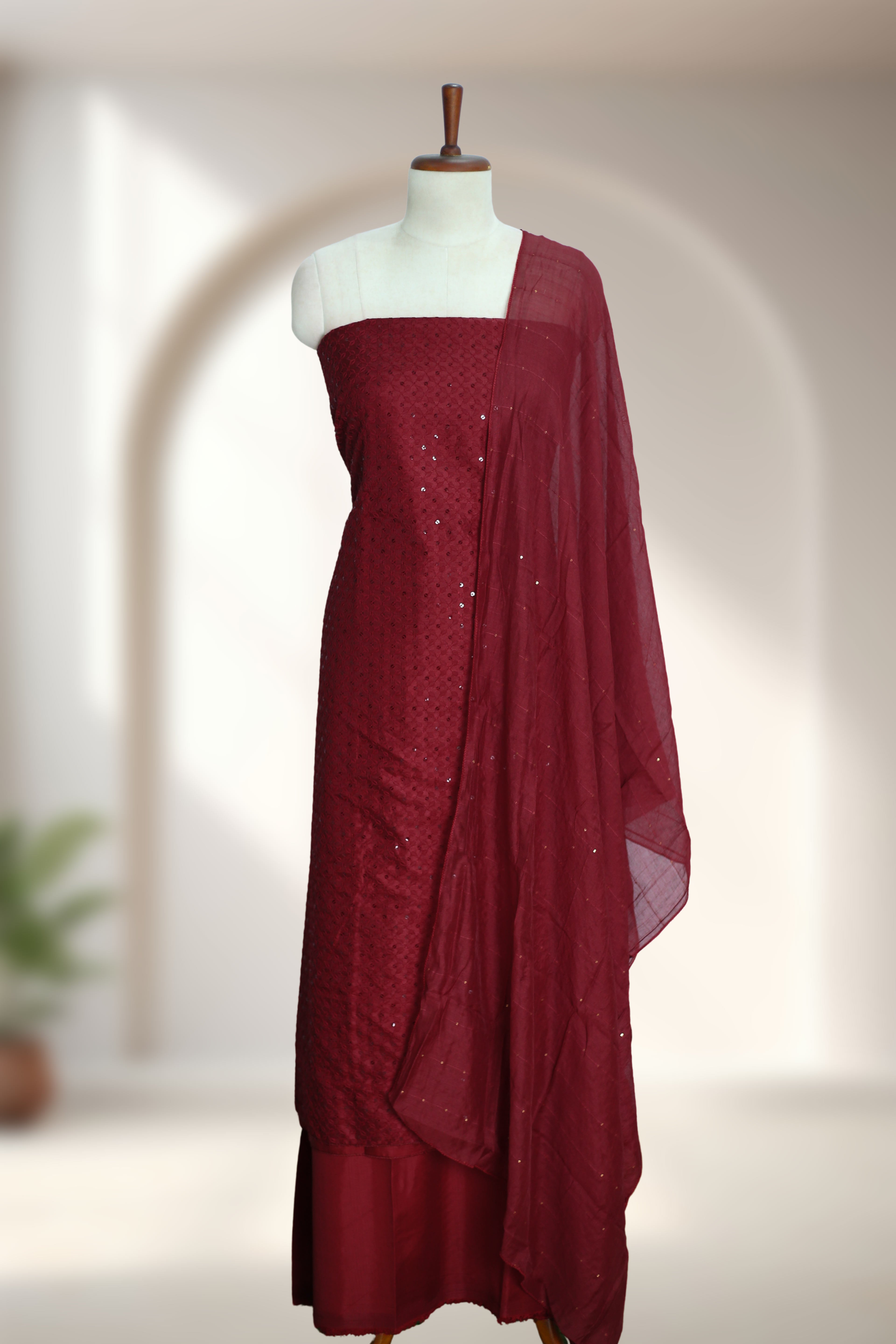 Premium silk churidar material featuring elegant thread embroidery enhanced with subtle sequins detailing