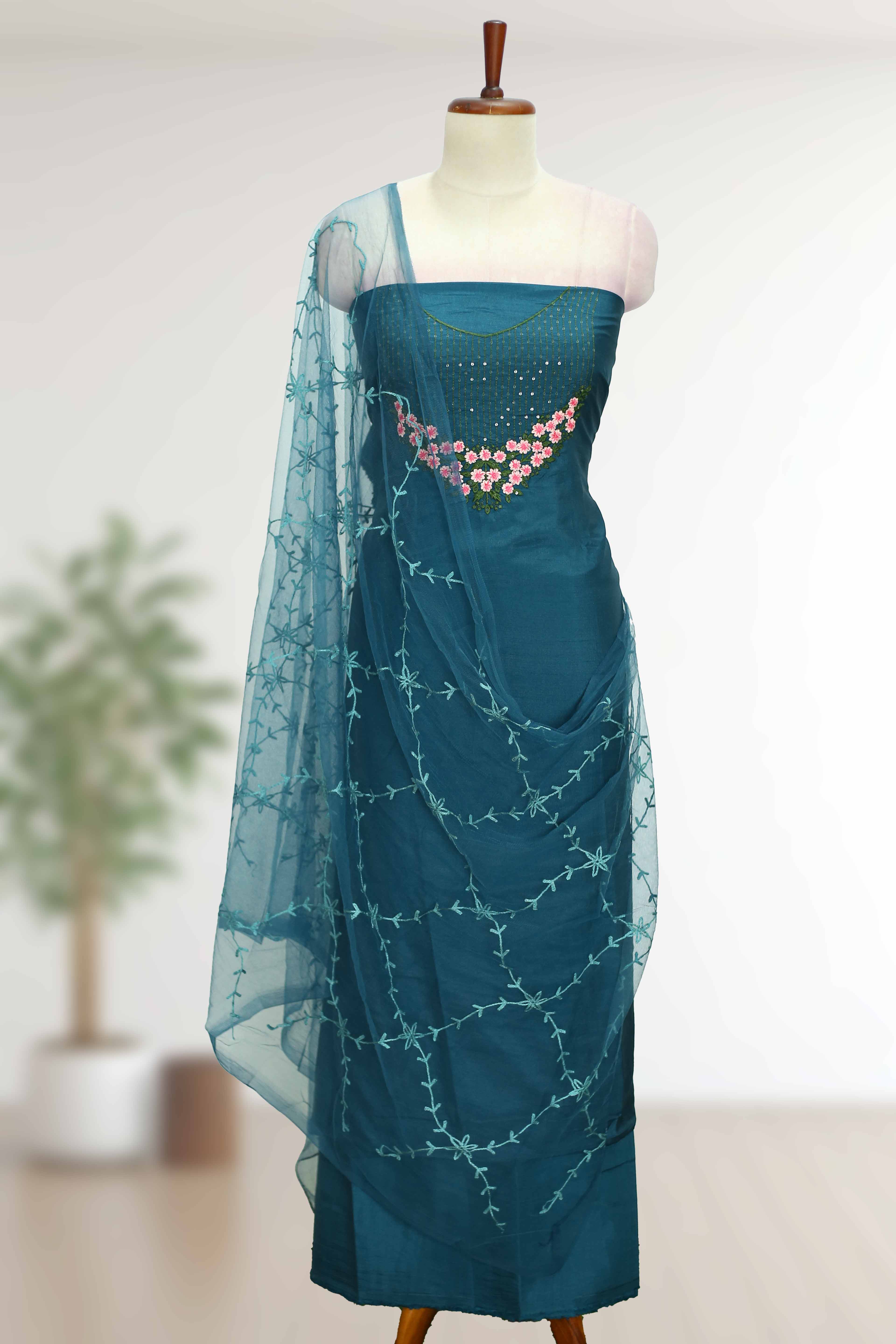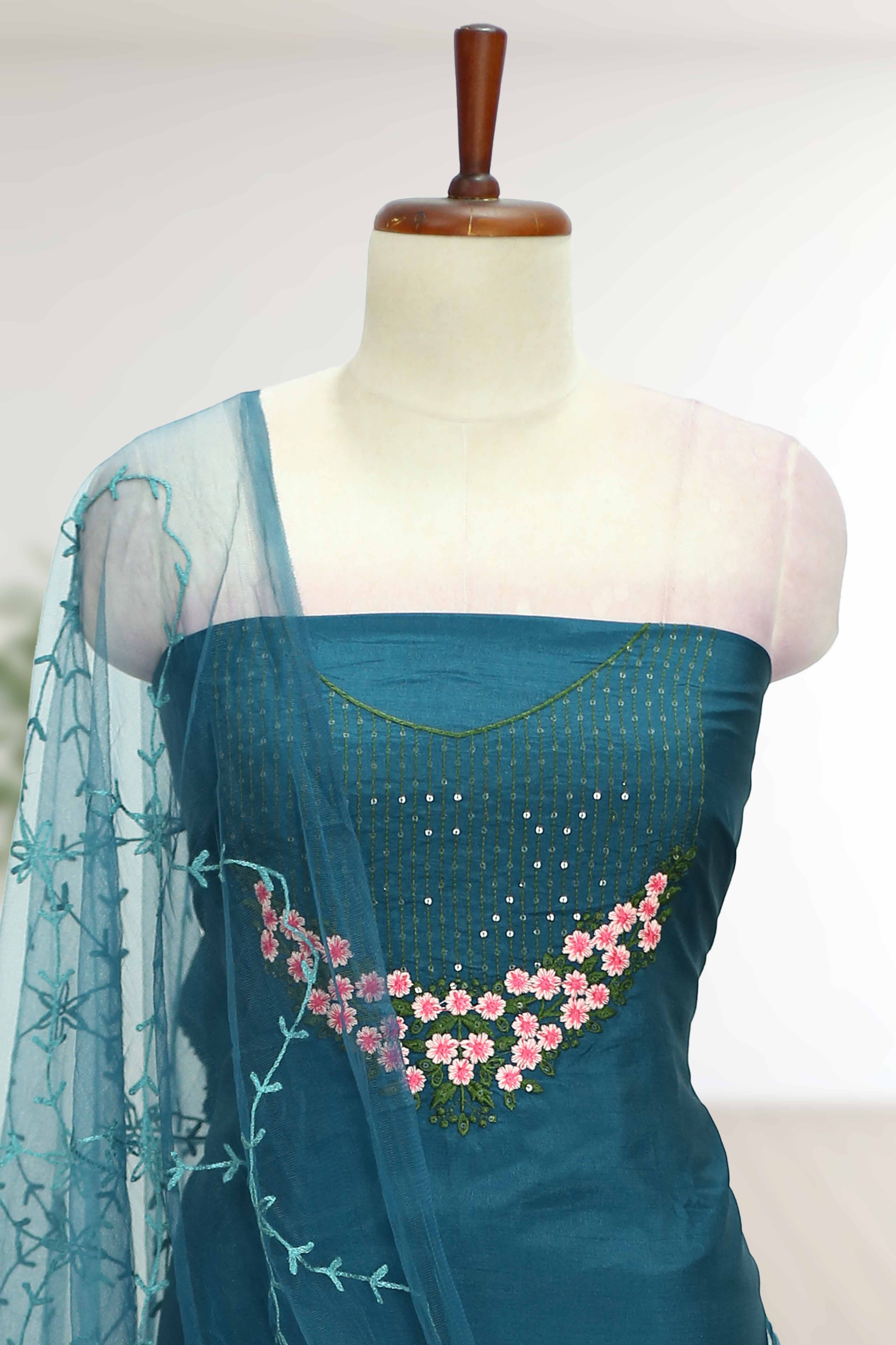 Silk Churidar Material with Floral Thread Embroidery – suryasilksonline.com