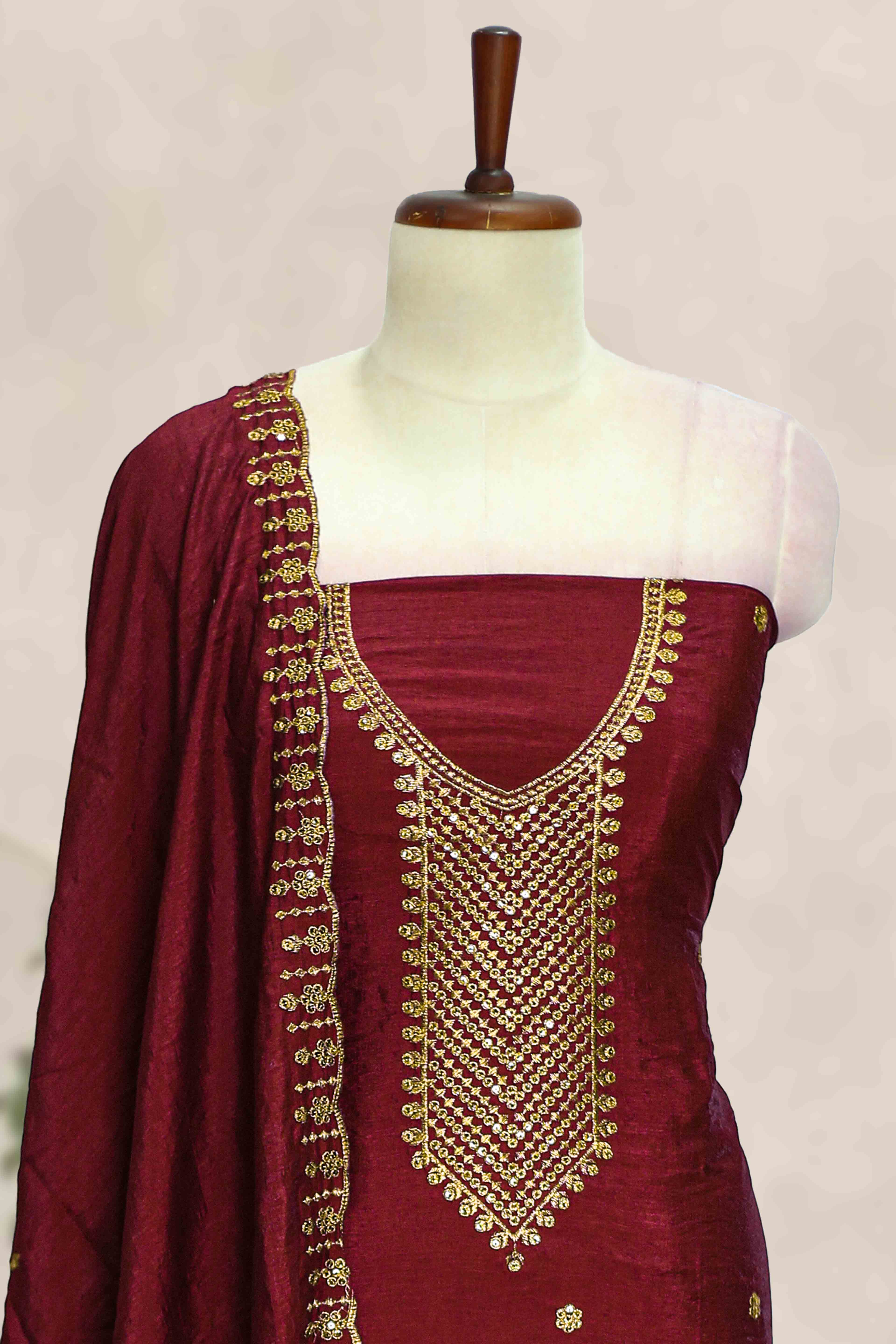 Silk Churidar Material with Golden Embroidery and Thread Work – suryasilksonline.com