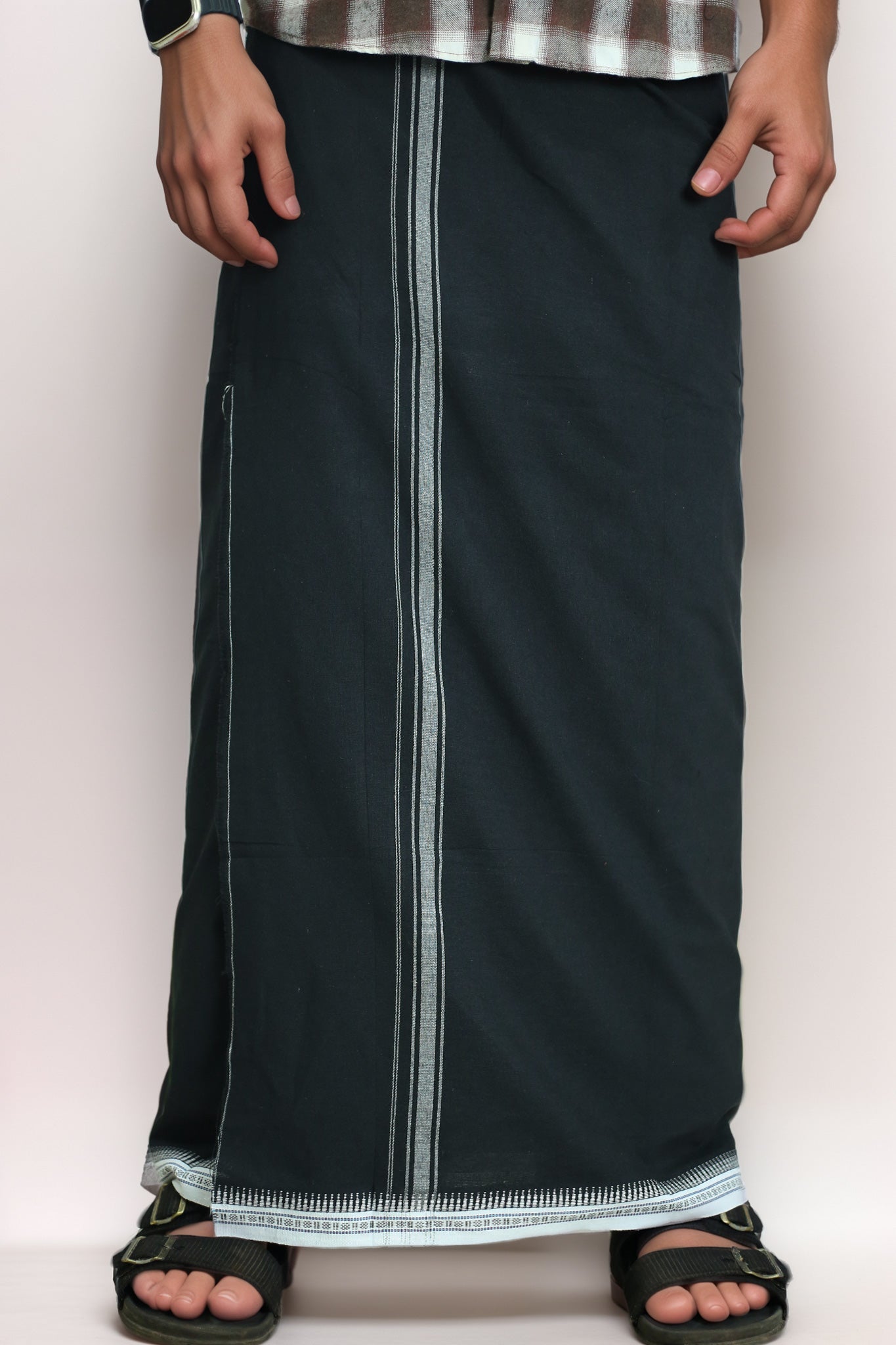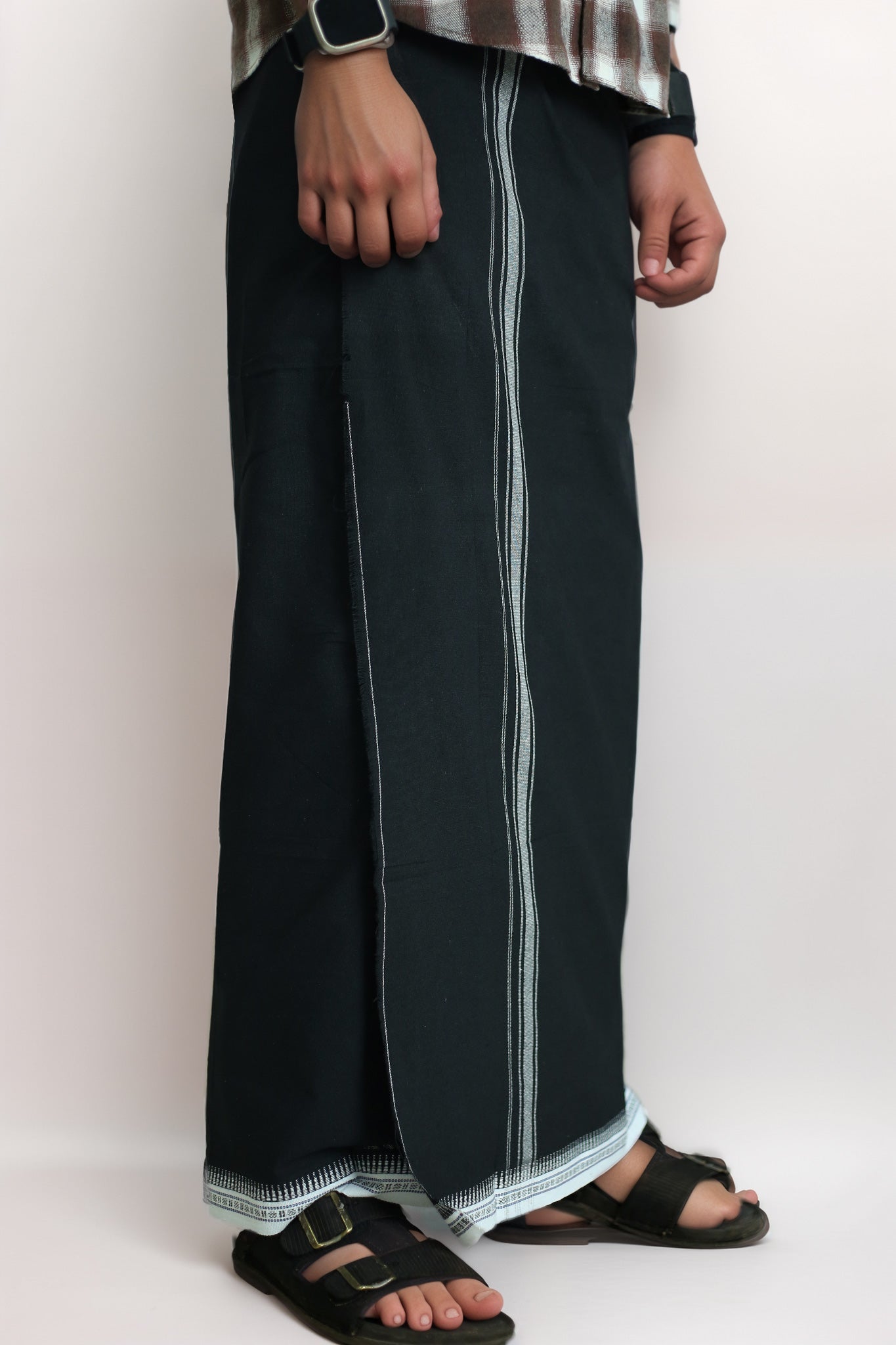 • Colour: Black• Elegant white border for a traditional look• Soft cotton fabric for comfort• Ideal for traditional functions and daily wear• Easy to drape and comfortable fit
