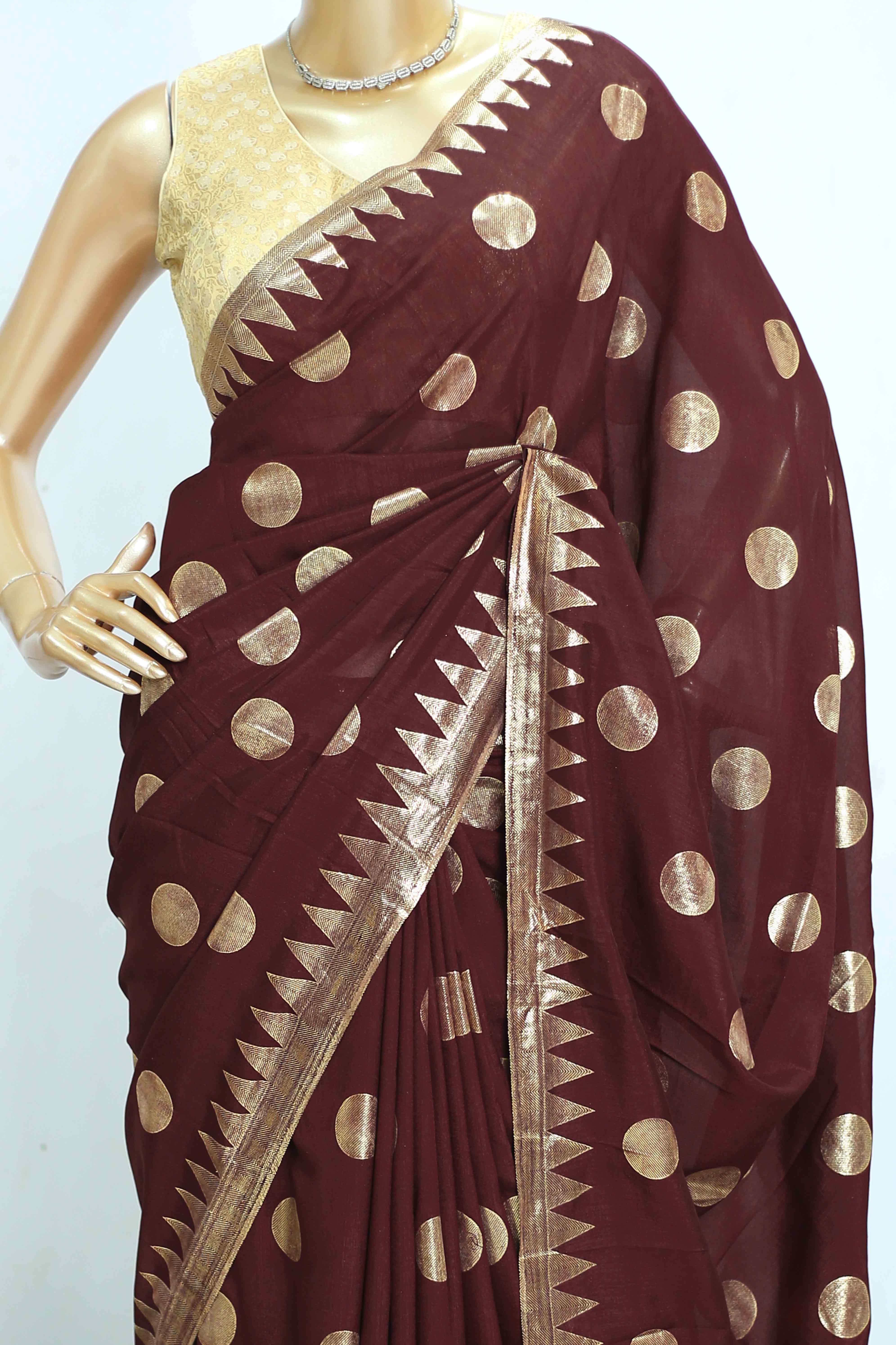 Circle Print Fancy Saree – Golden Print – suryasilksonline.com