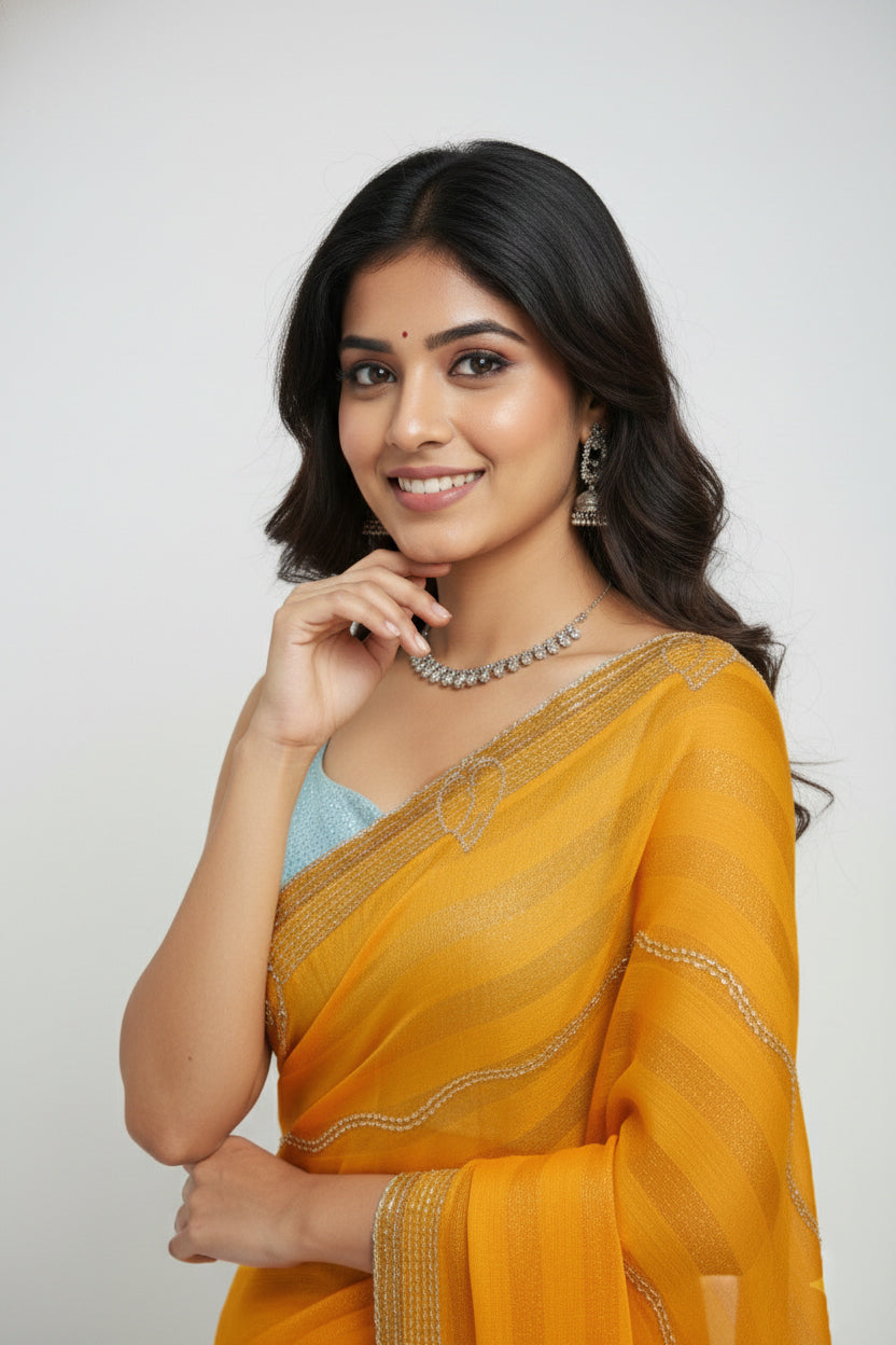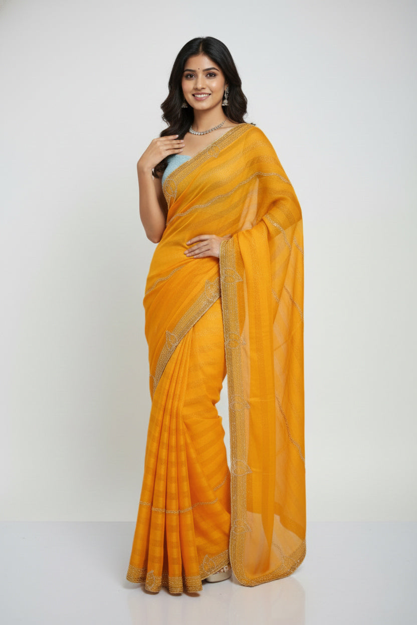 Fancy Saree – Stone Work Semi Chiffon