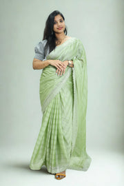 A graceful chiffon fancy saree enhanced with elegant stone work and a beautifully detailed border, perfect for parties, festive occasions, and special events.