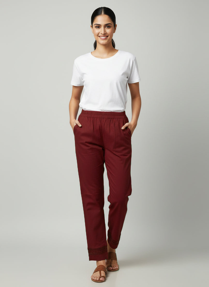 Smart and comfortable cotton cigarette pants — perfect for daily wear, office use, kurtis, and casual outings. Clean plain finish with a sleek, modern fit.
