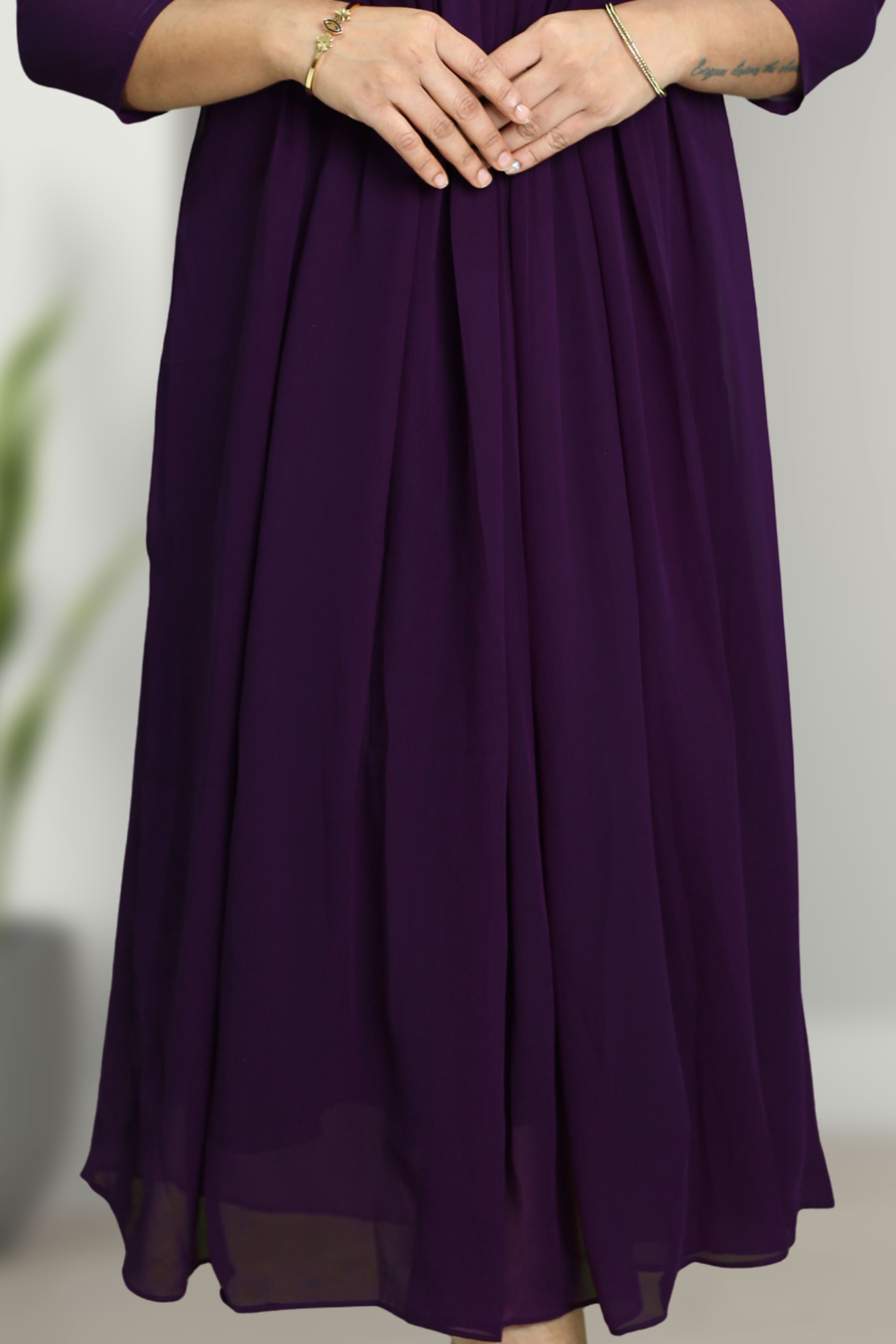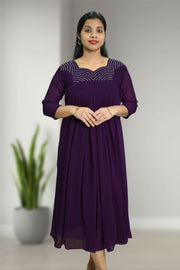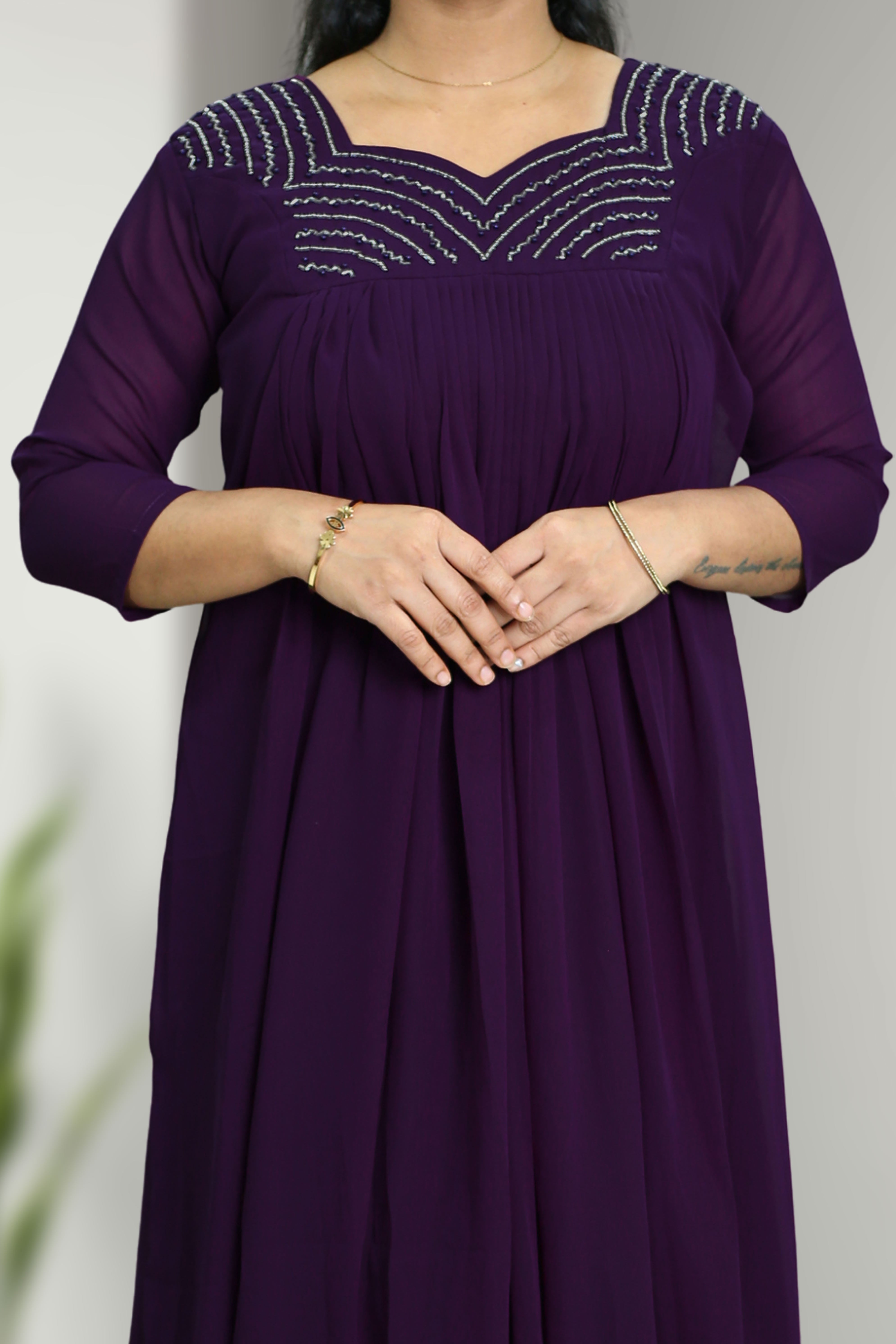 Stylish flared georgette top with elegant cut bead work and a flattering sweetheart neckline — perfect for parties, functions, and casual outings.