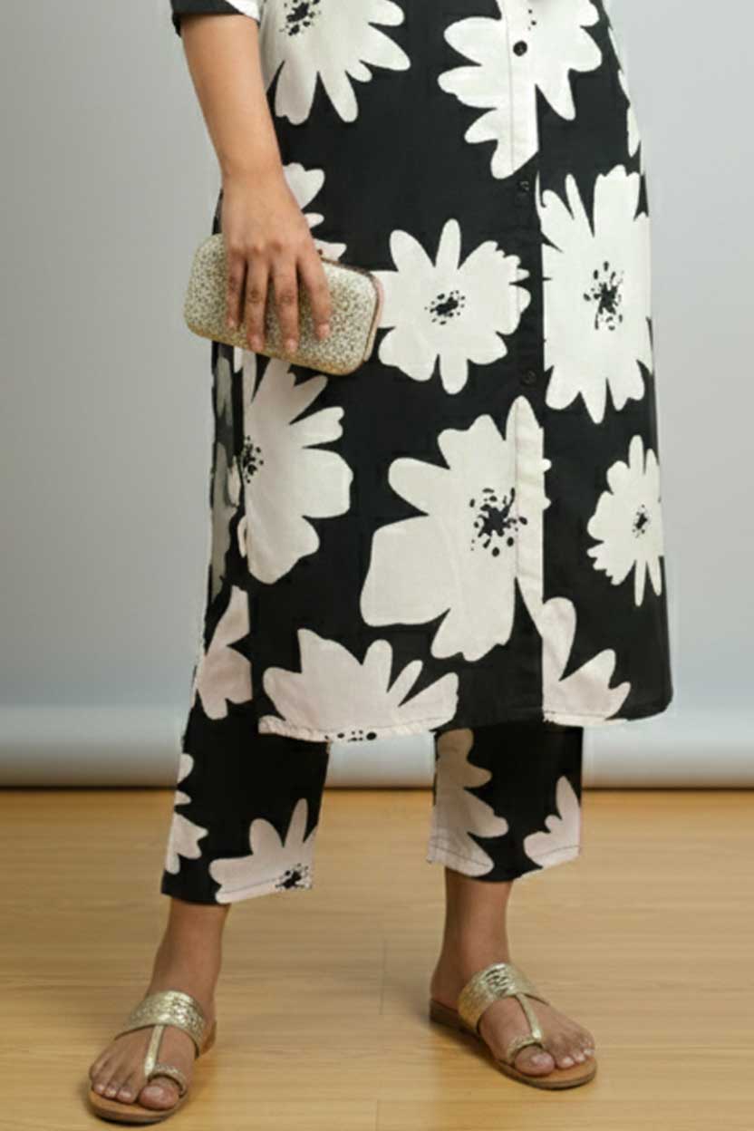 Stylish printed kurti paired with matching palazzo, perfect for casual & ethnic wear