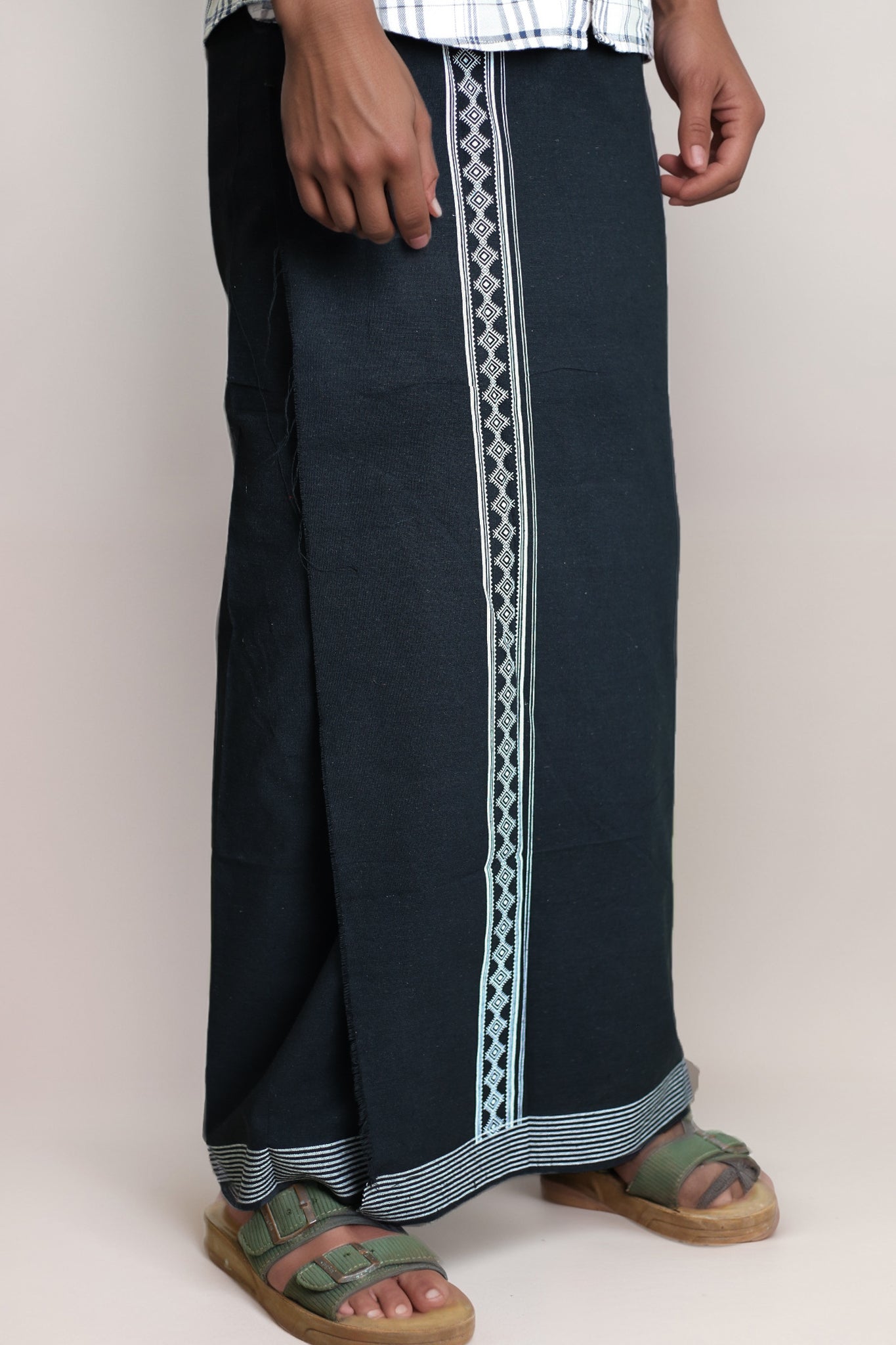 Black Cotton Dhothi with White Print – suryasilksonline.com