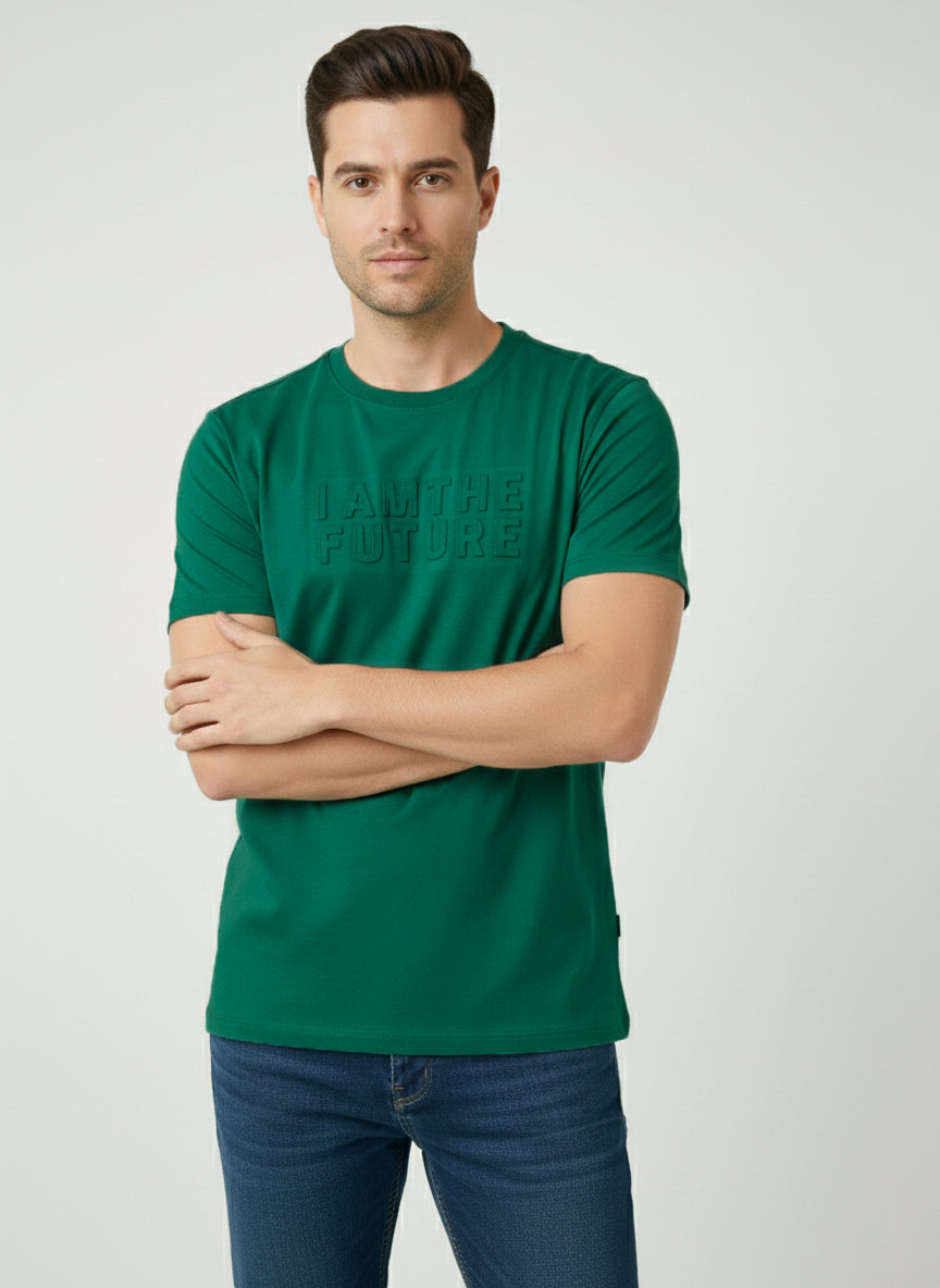 Stylish off-shoulder look with embossed design, perfect for casual wear