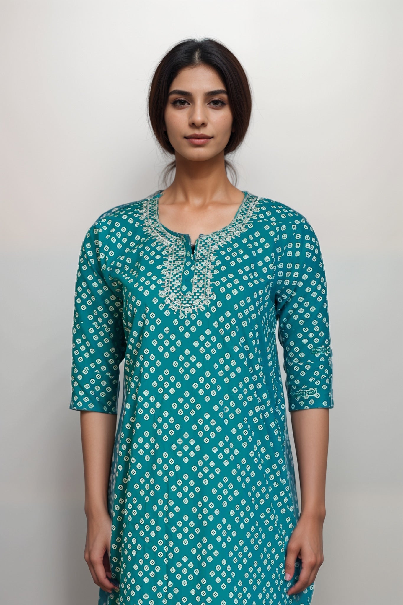 Stay comfortable and stylish all night long in this full-length cotton nighty, featuring soft floral prints and intricate neck thread work. The convenient zip-type U neck adds ease, while the full sleeves ensure warmth and modesty—perfect for lounging or sleeping.
