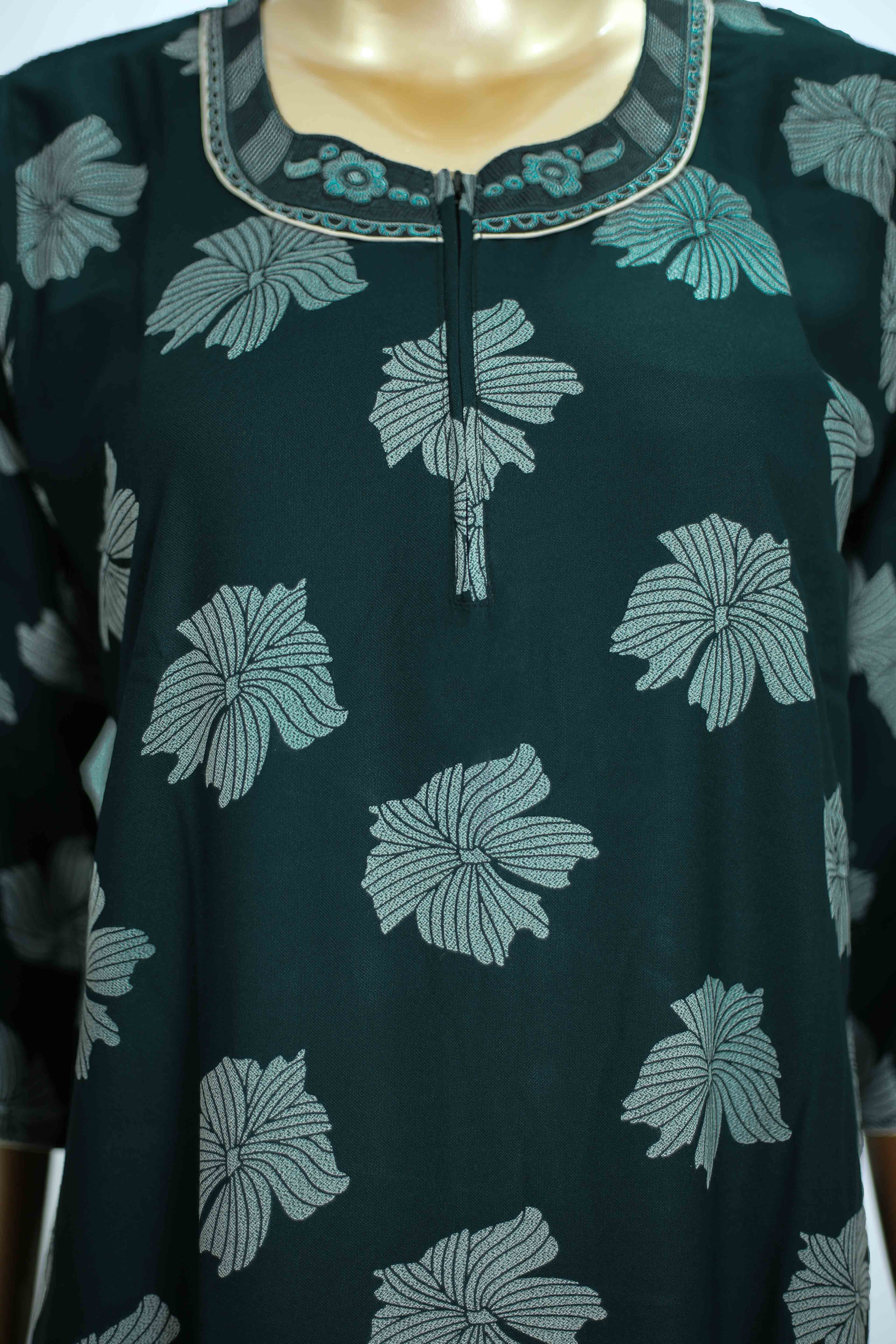 Smooth and lightweight rayon fabric with elegant floral embroidery