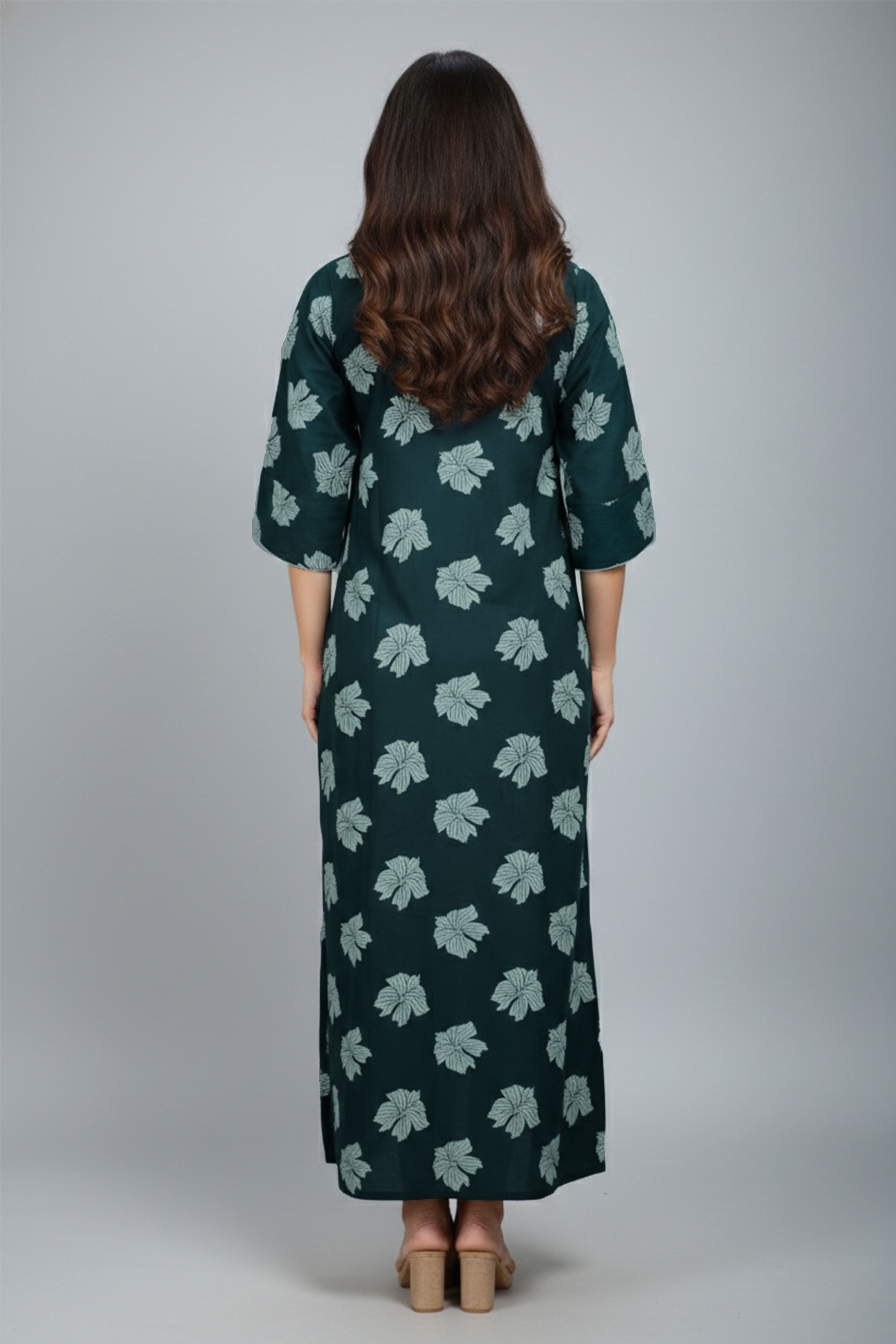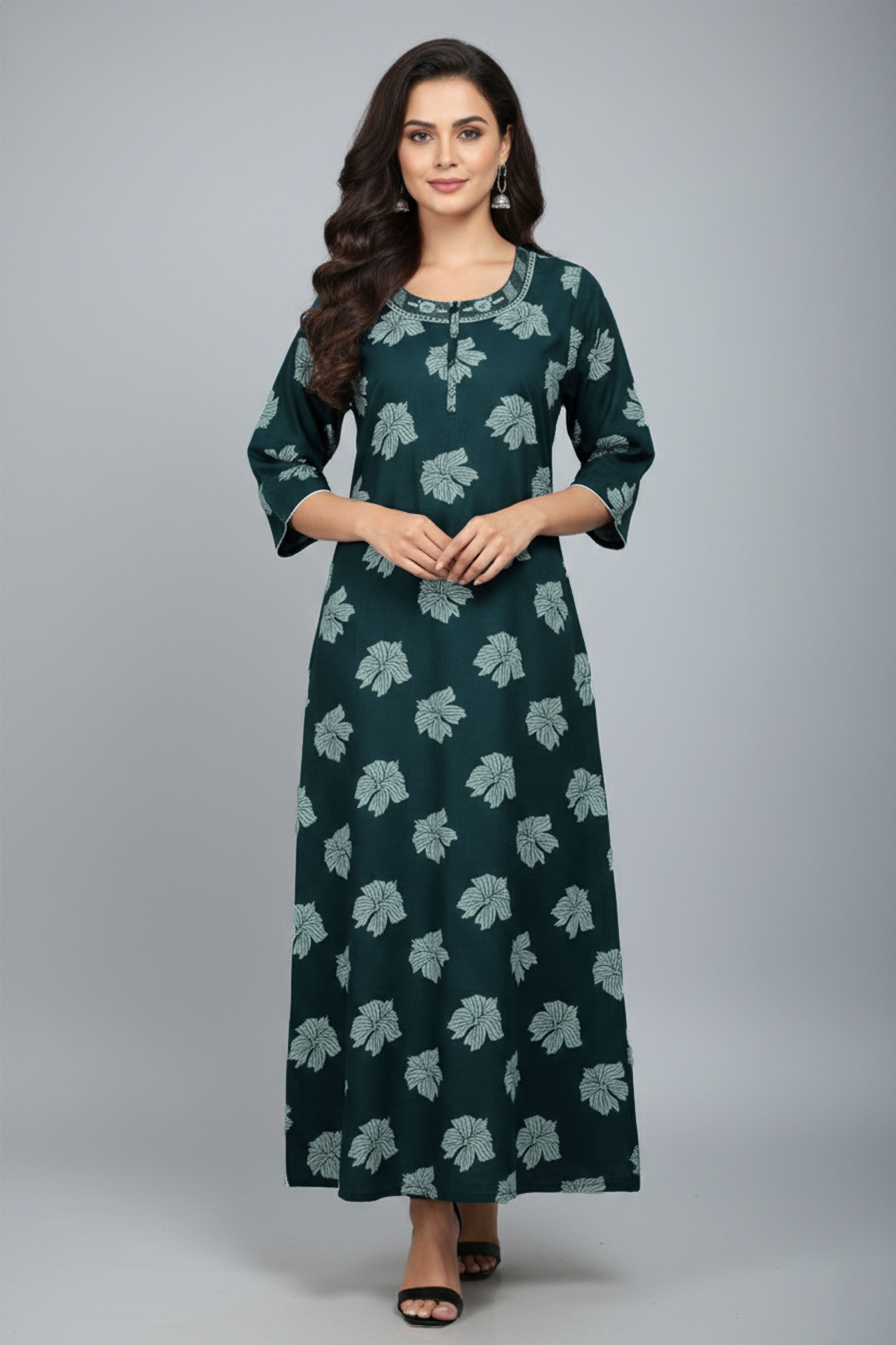 Comfortable nighty with elastic round neck for easy wear and a relaxed fit