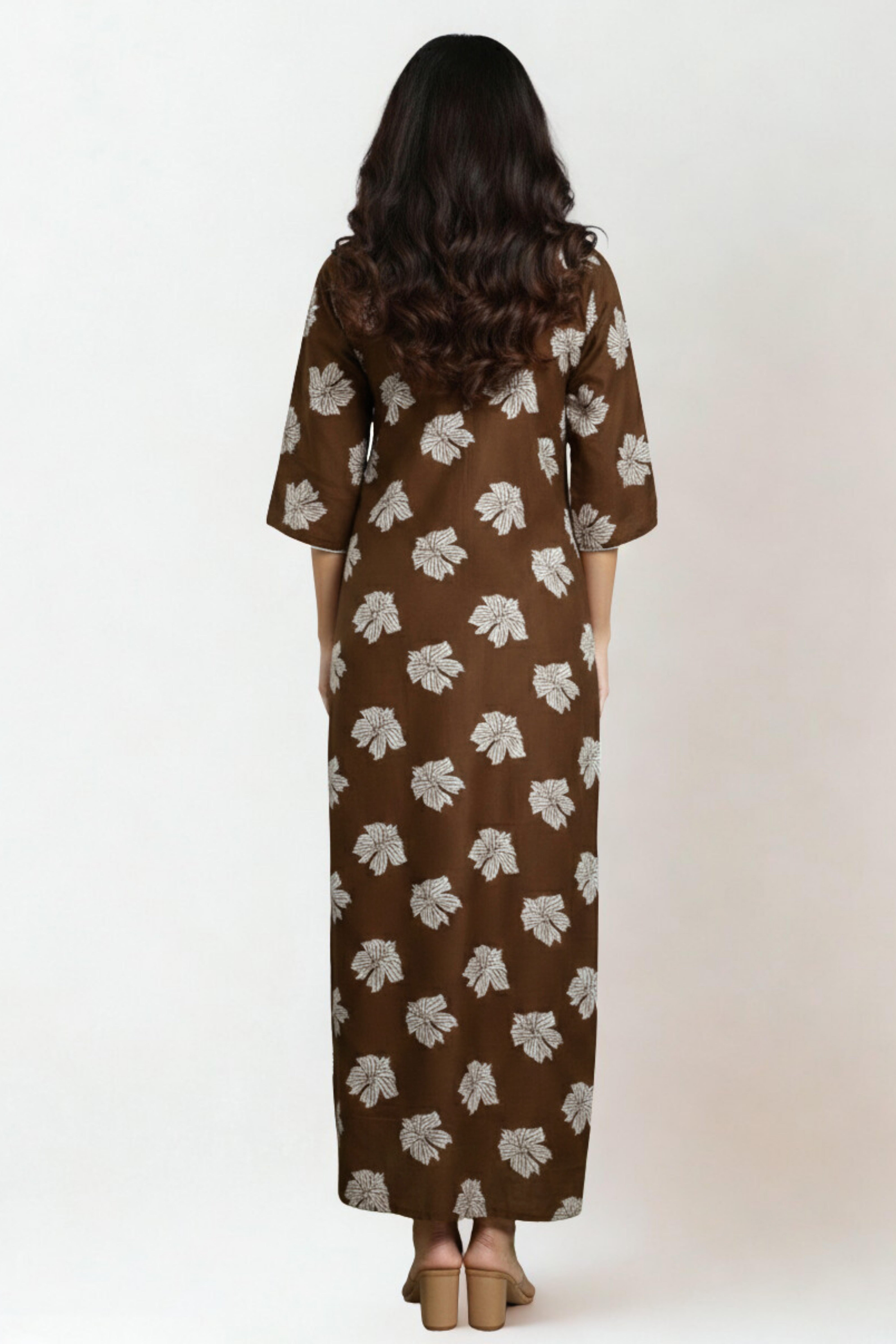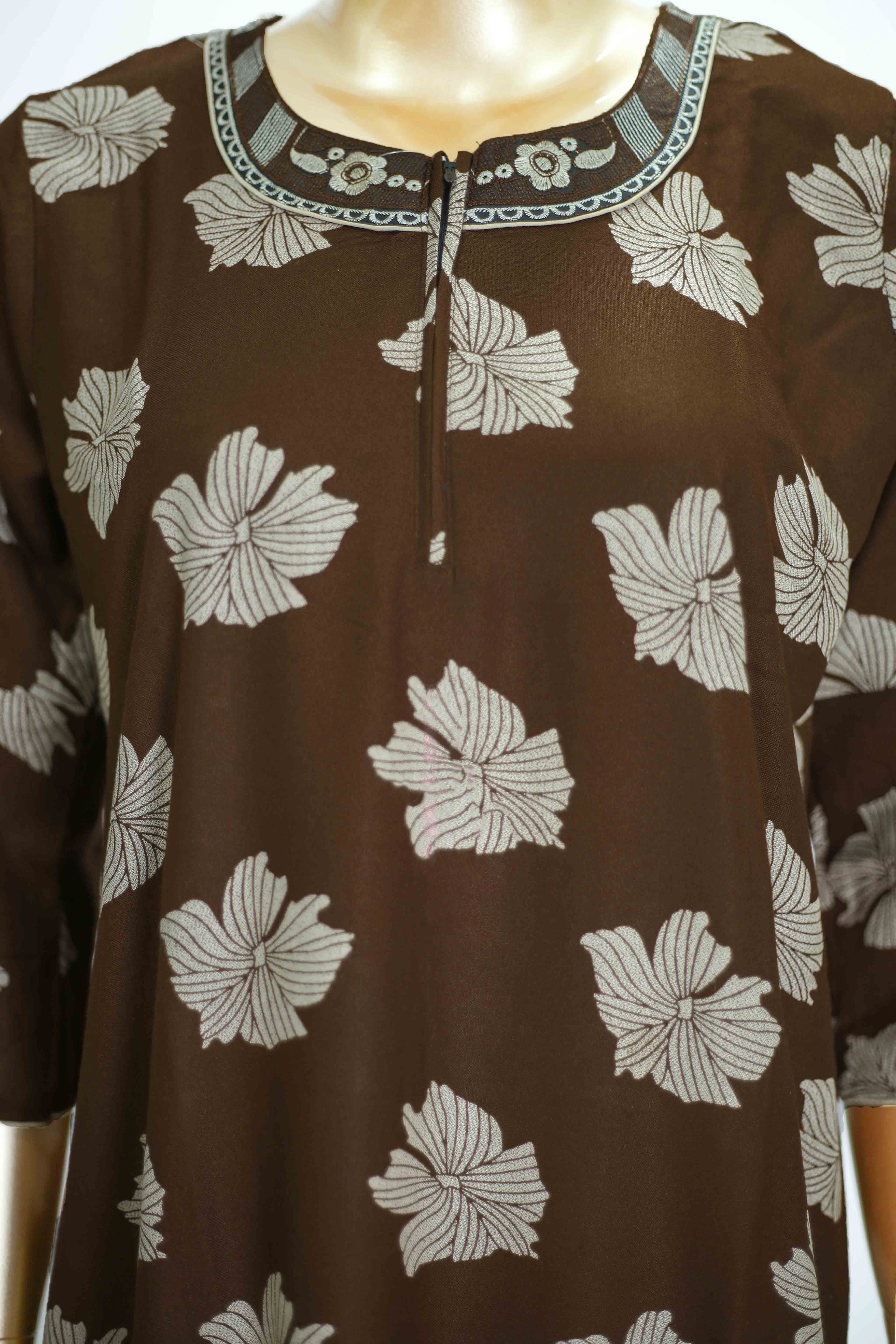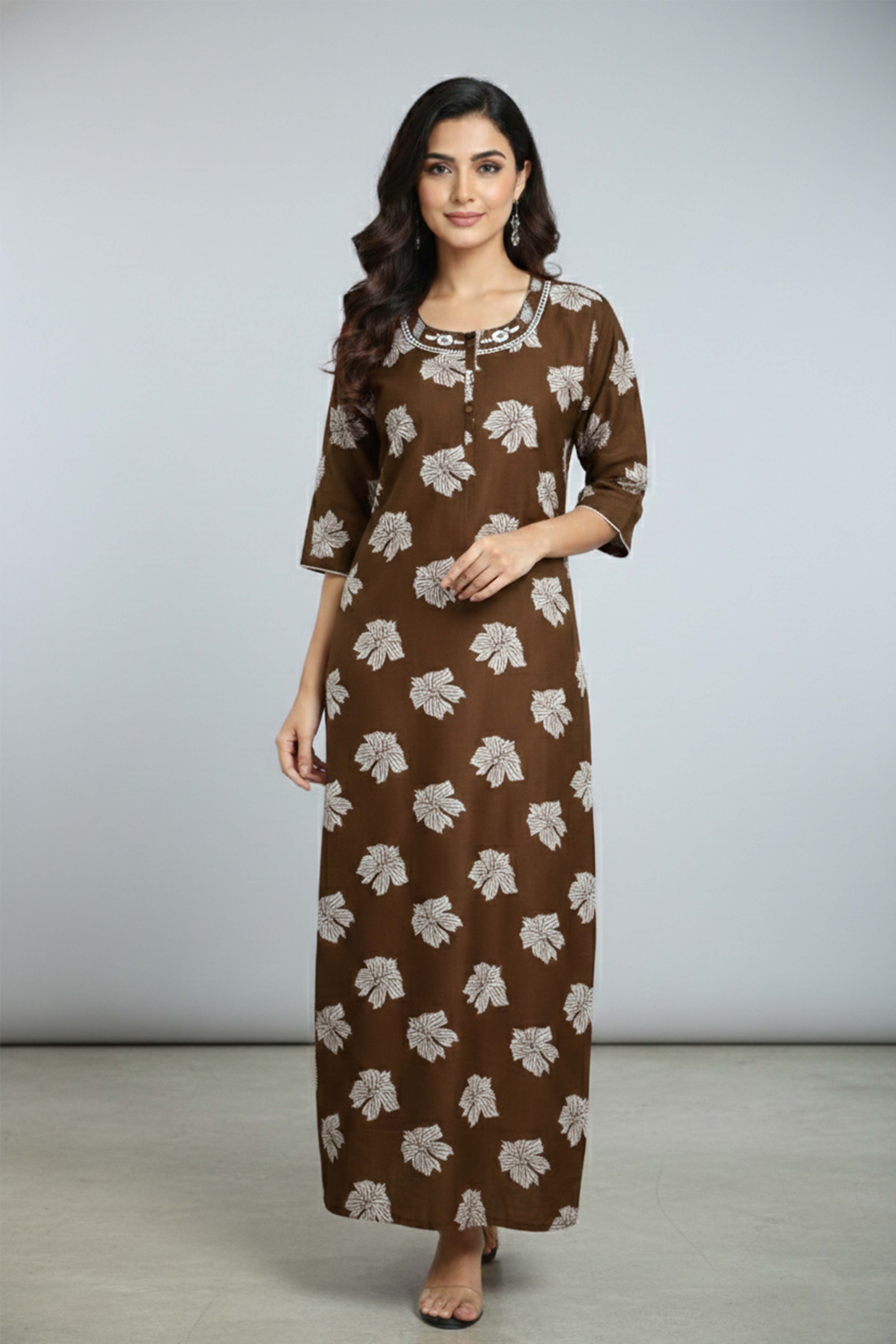 Comfortable nighty with elastic round neck for easy wear and a relaxed fit