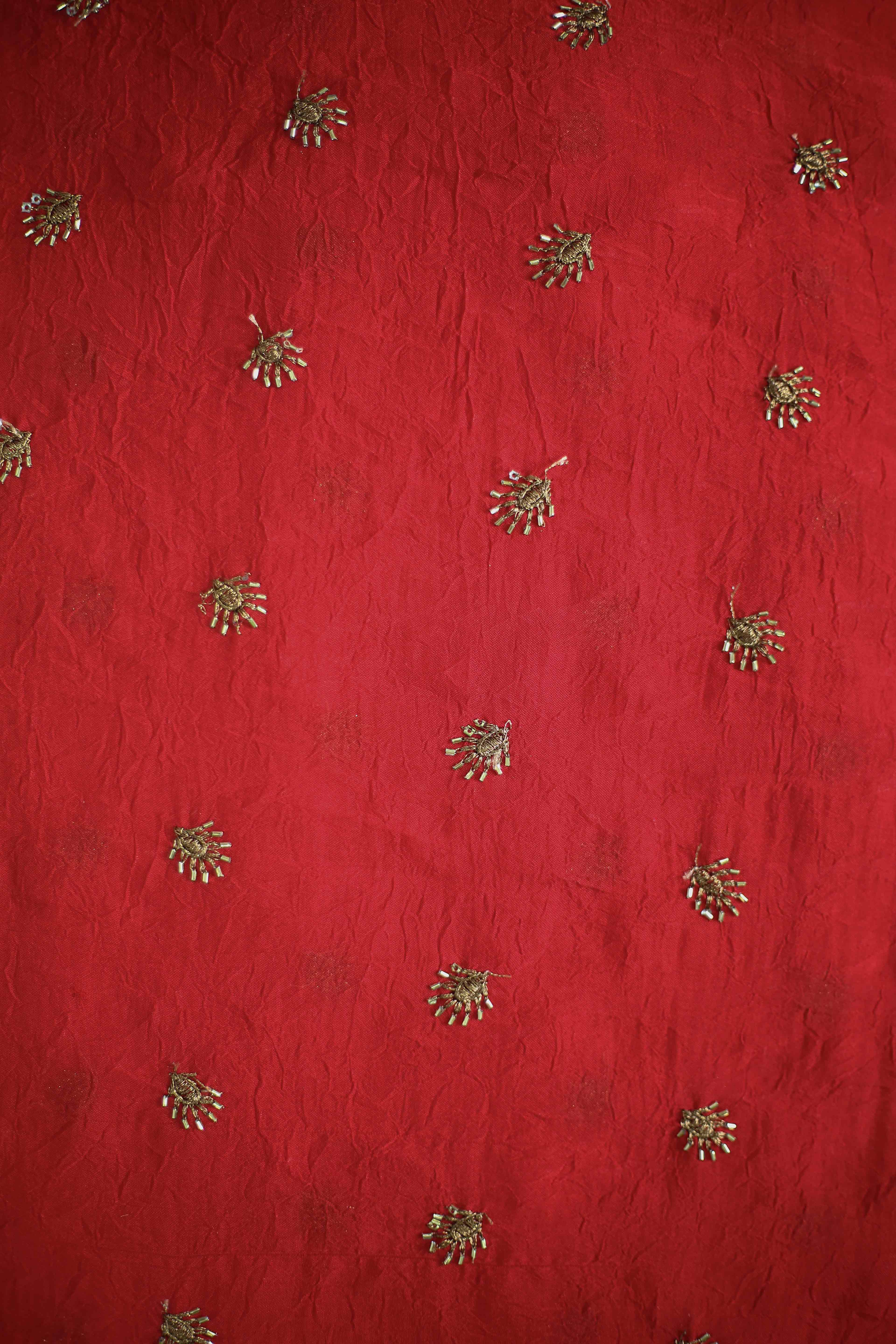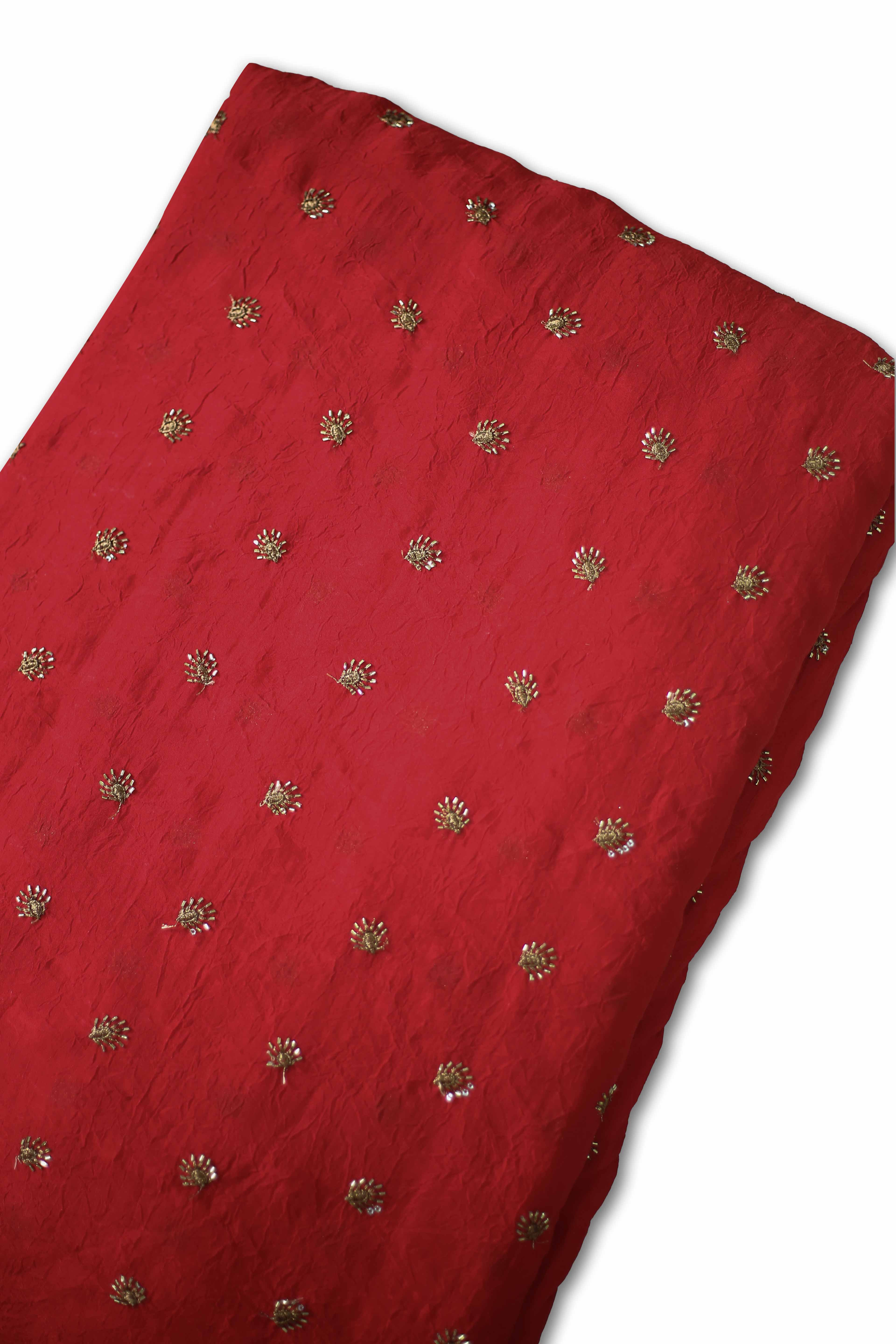 Rich festive running material crafted with detailed golden thread embroidery and bead work, perfect for ethnic wear and custom stitching.
