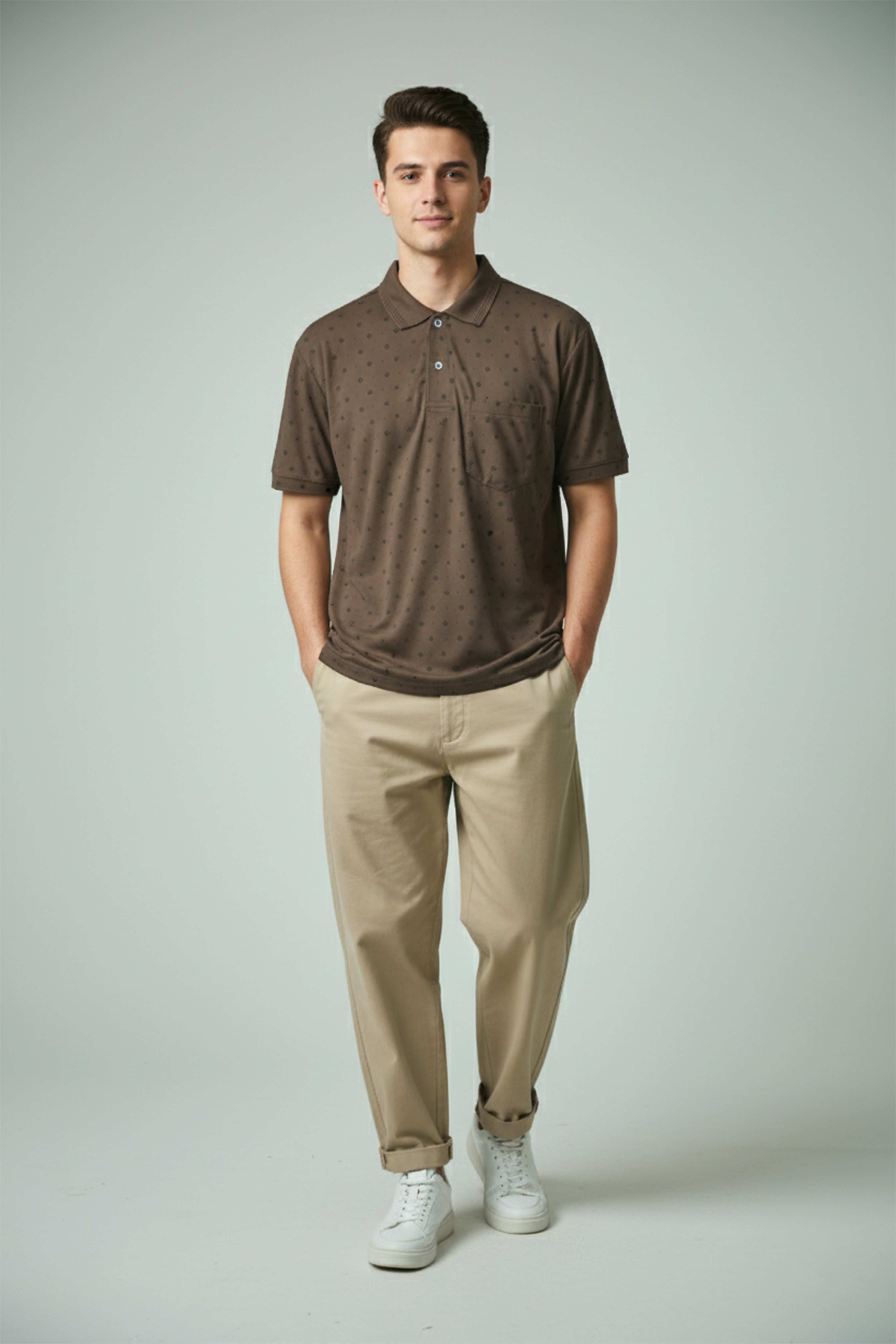 Classic polo style with a modern printed finish, suitable for casual & daily wear