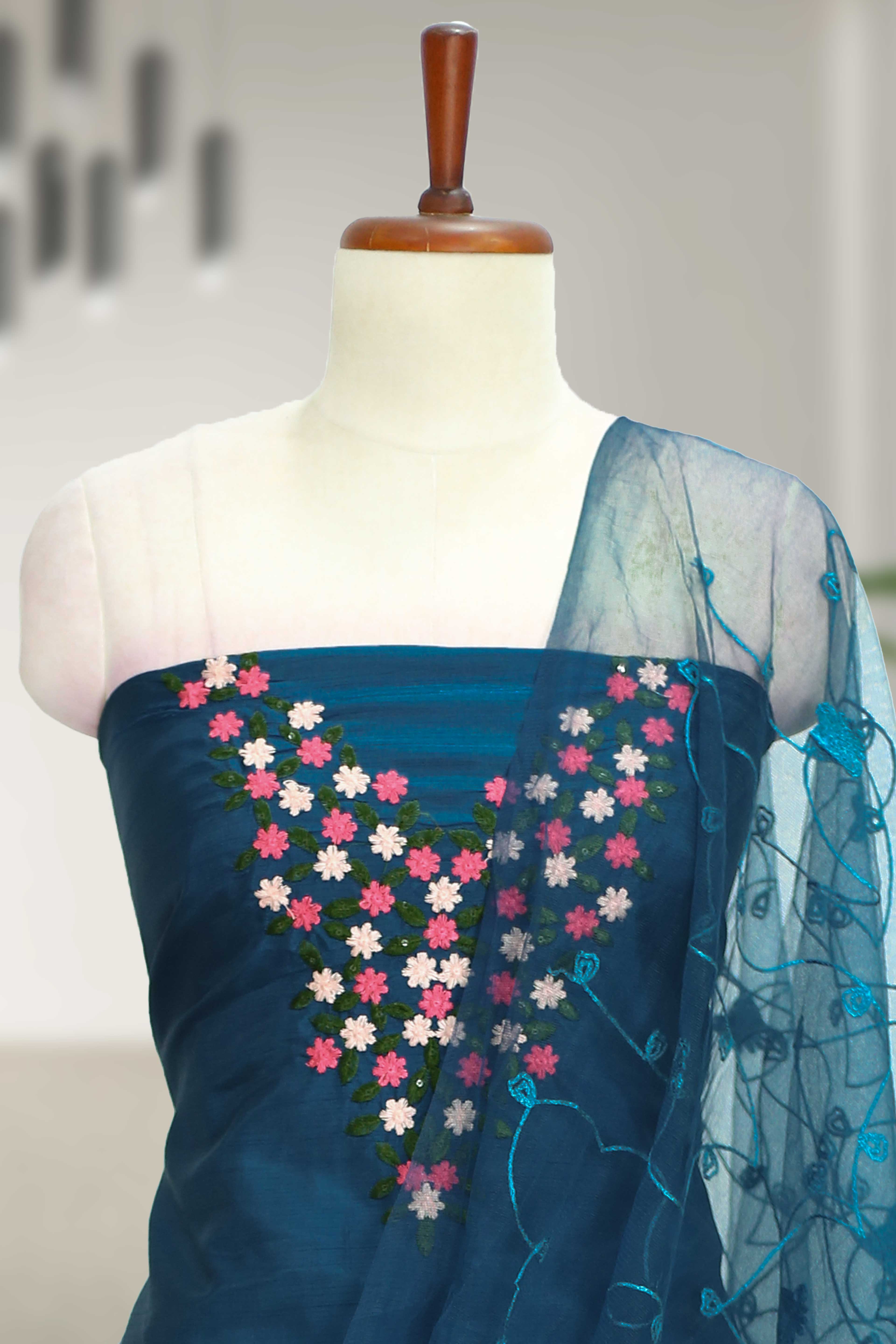 Silk Churidar Material with Floral Thread Embroidery – suryasilksonline.com