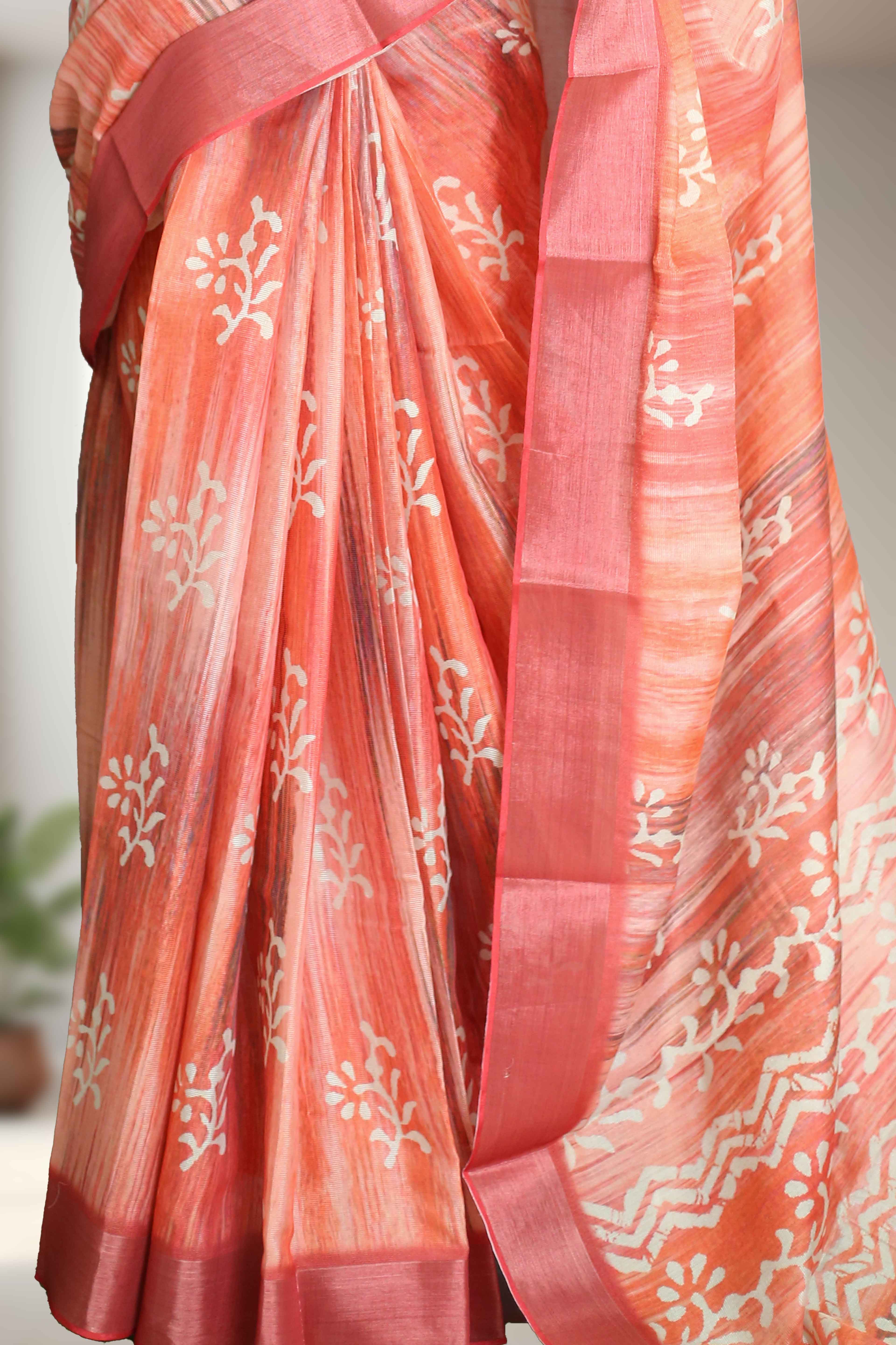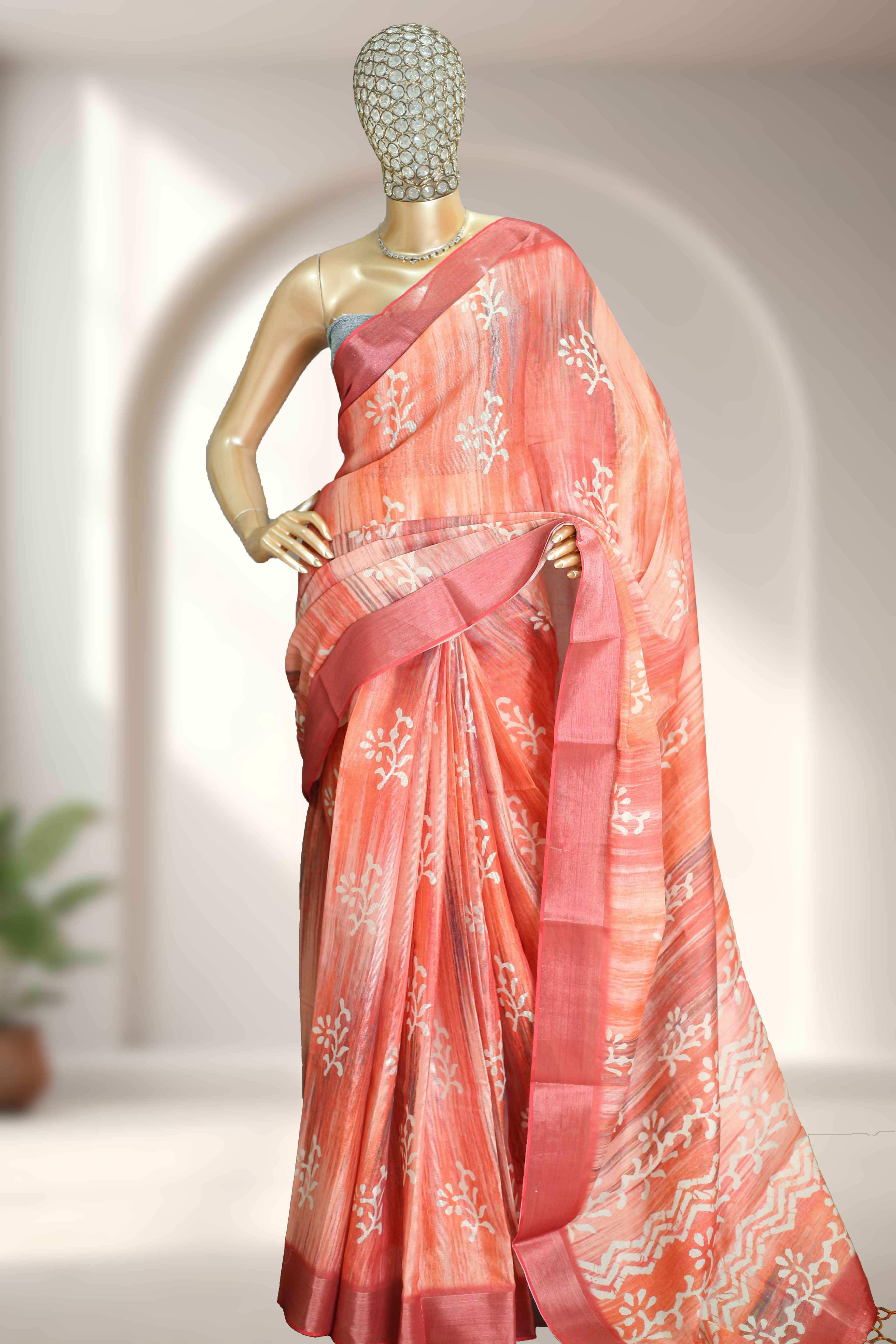 Synthetic Linen Saree with Batik Design – suryasilksonline.com
