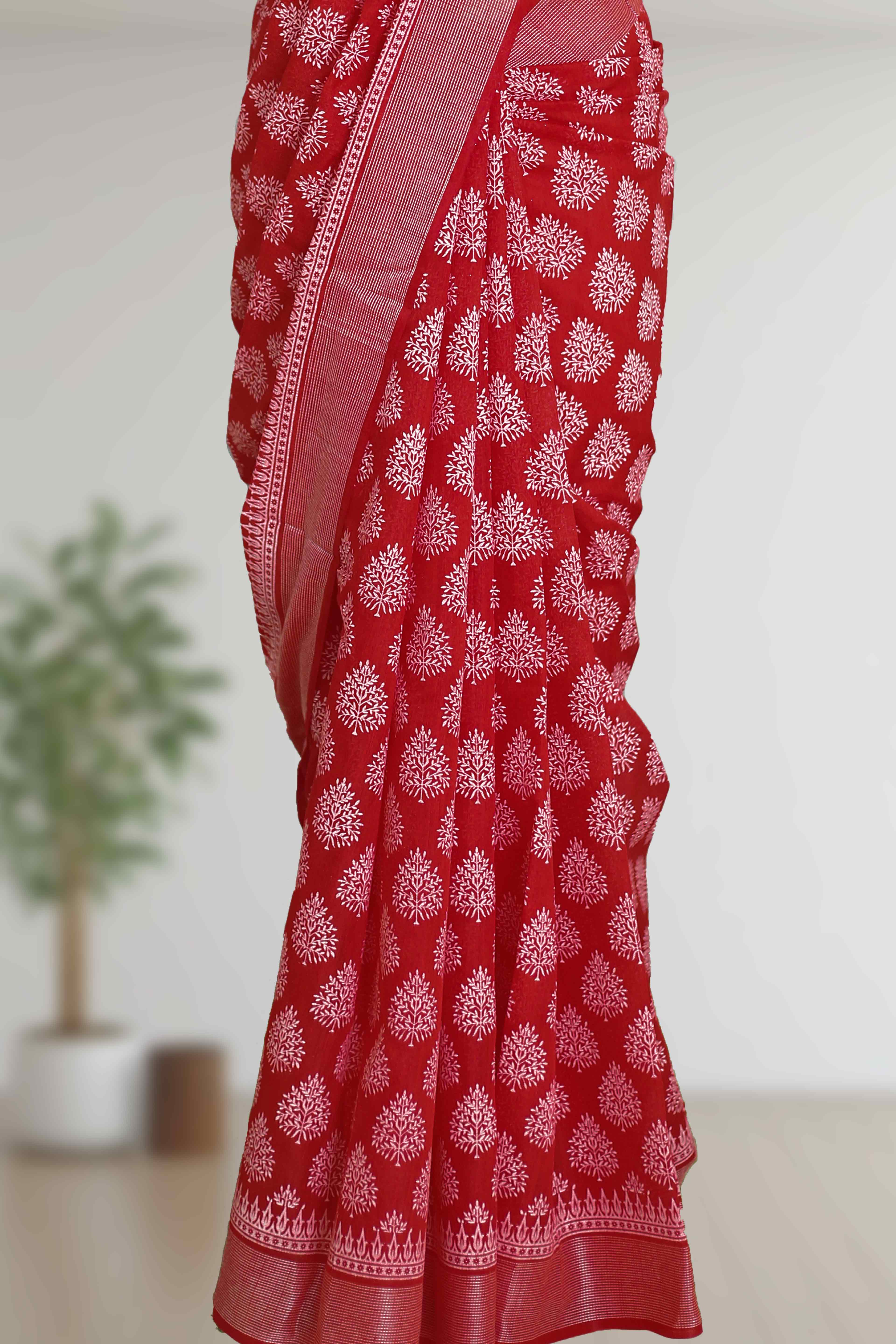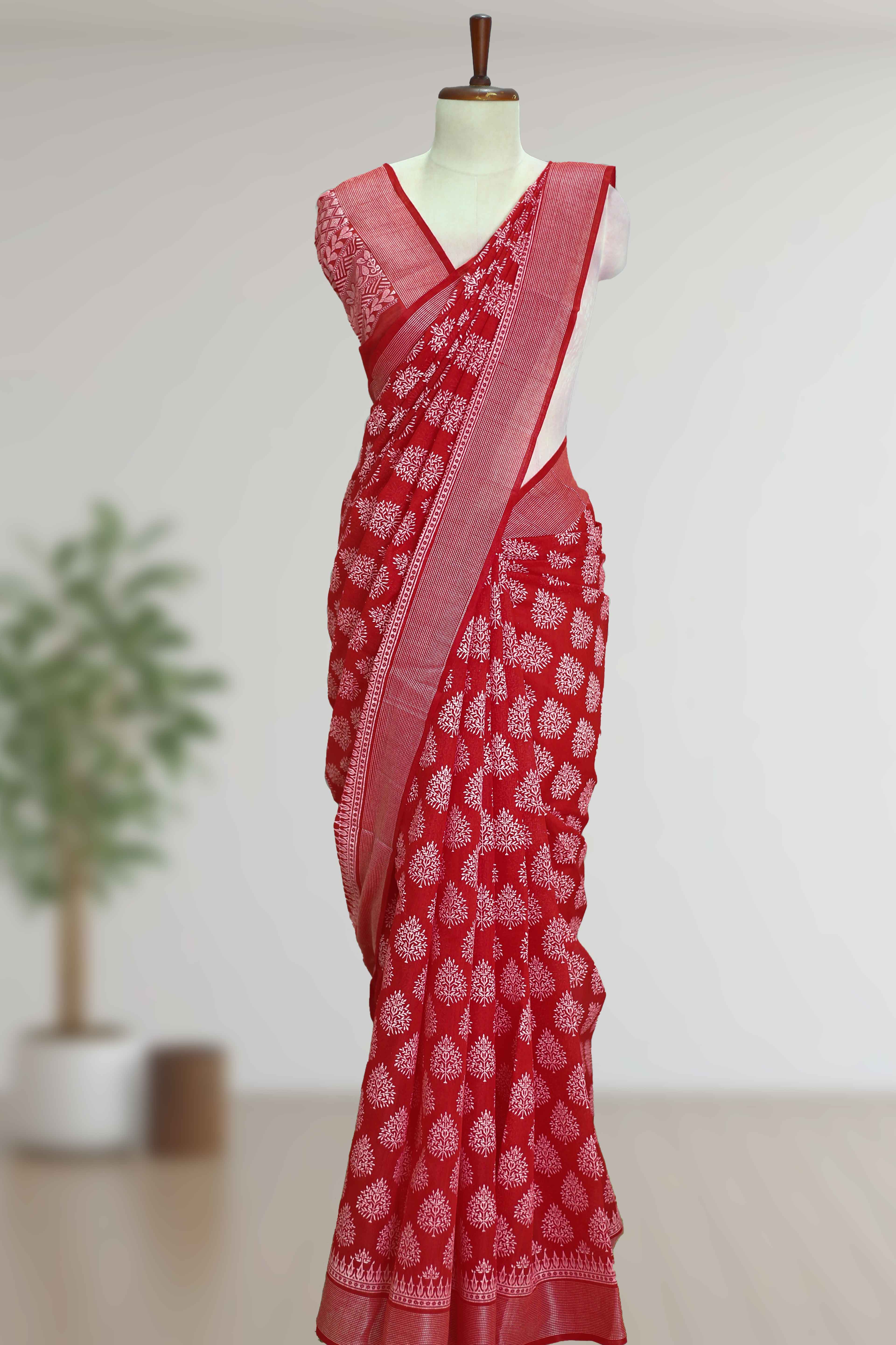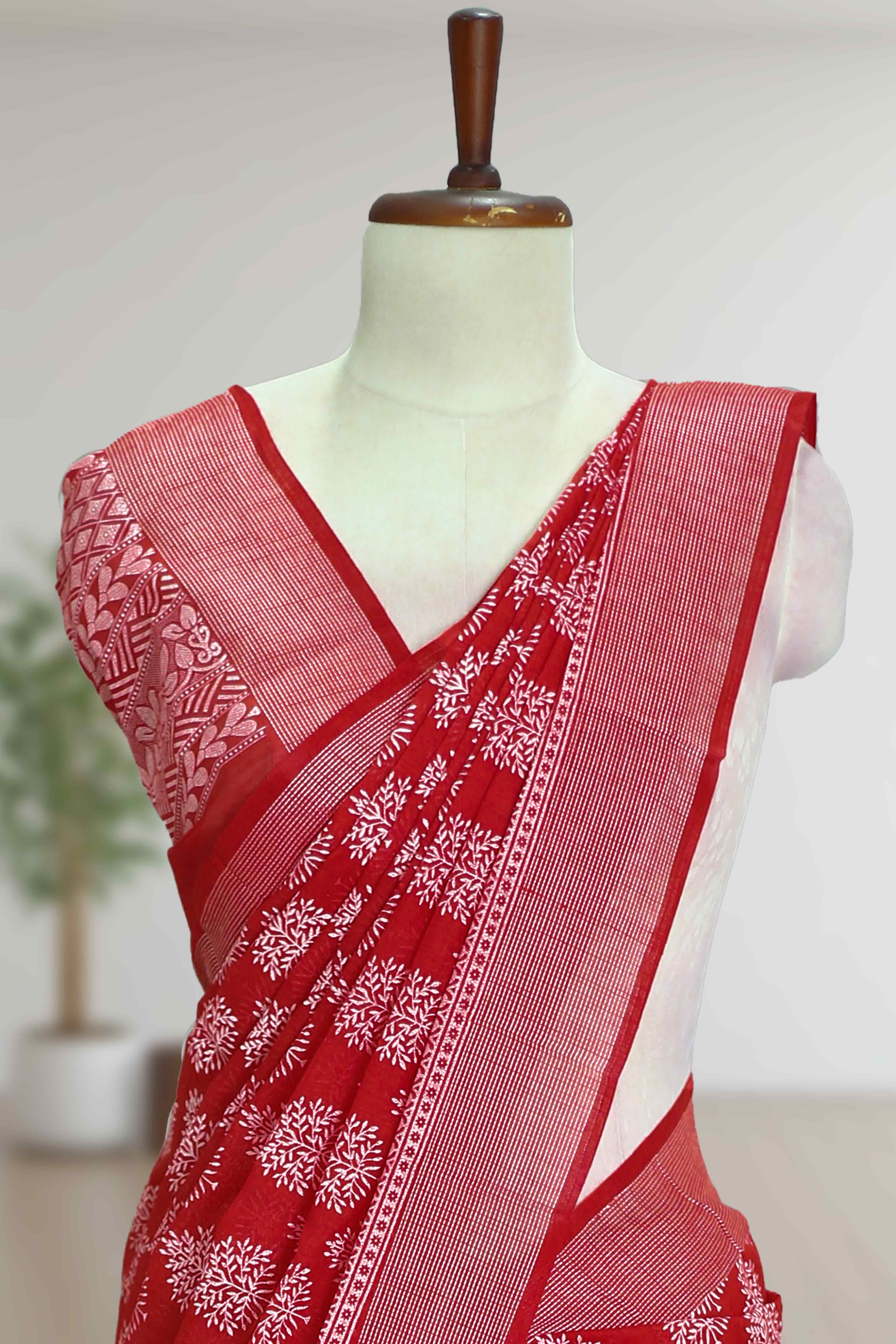 Material: Premium CottonDesign: Elegant White PrintPattern: Full Body Print with Threadwork BorderLength: 6 Meters (Including Blouse Piece)Type: Saree with BlouseCare Guide: Dry Wash RecommendedReturn Policy: No Return