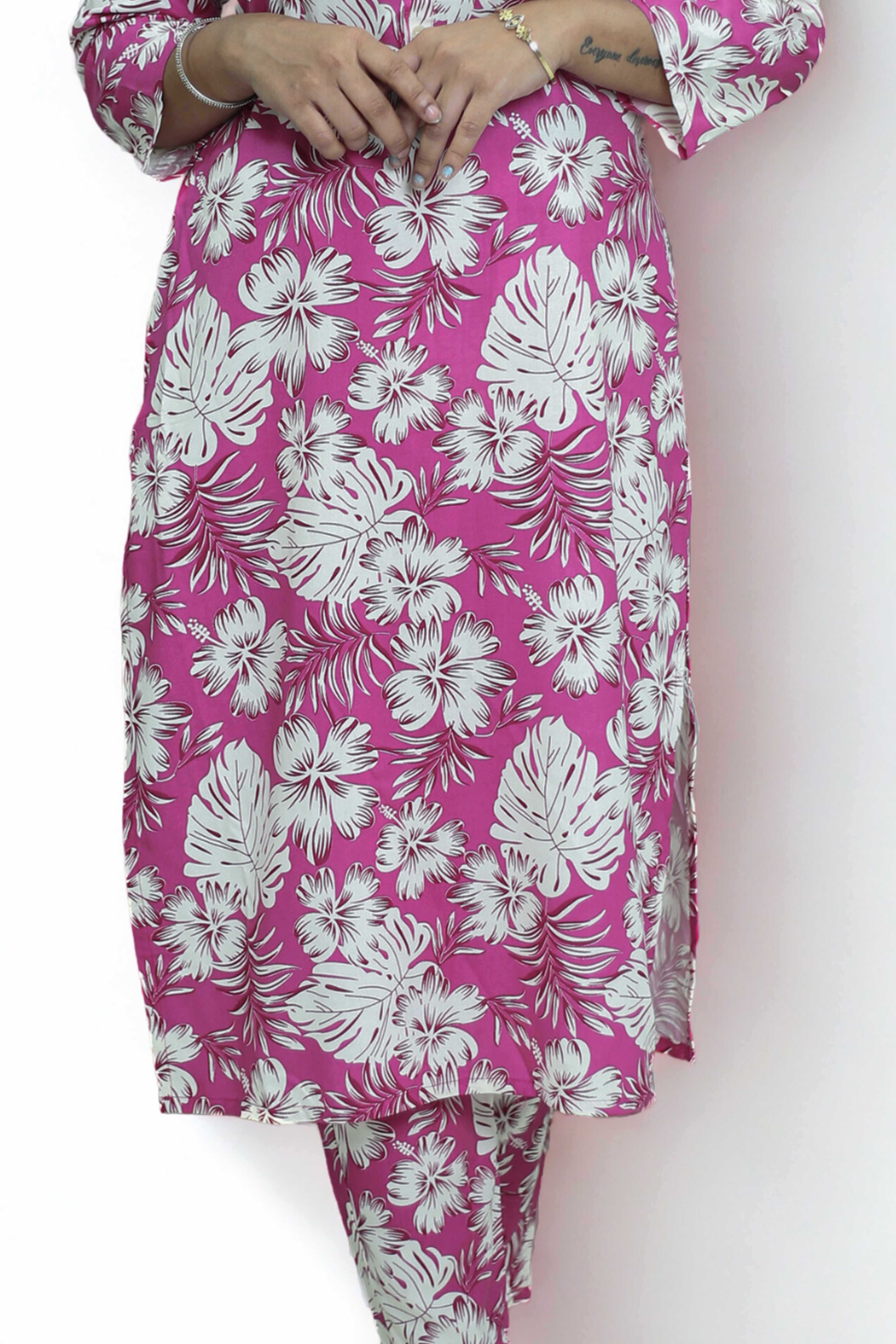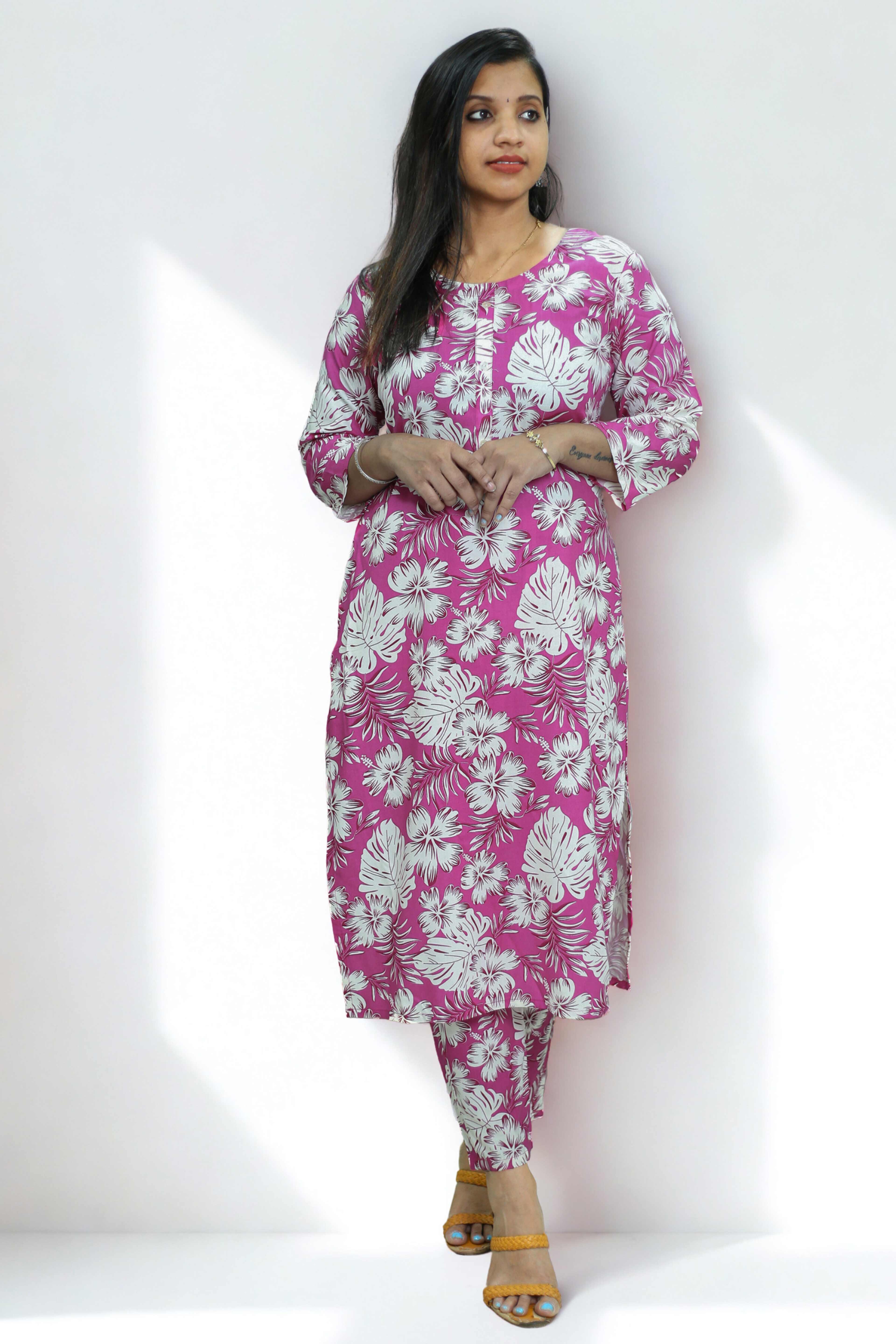 Co-Ord Set – Button Work Printed Design – suryasilksonline.com