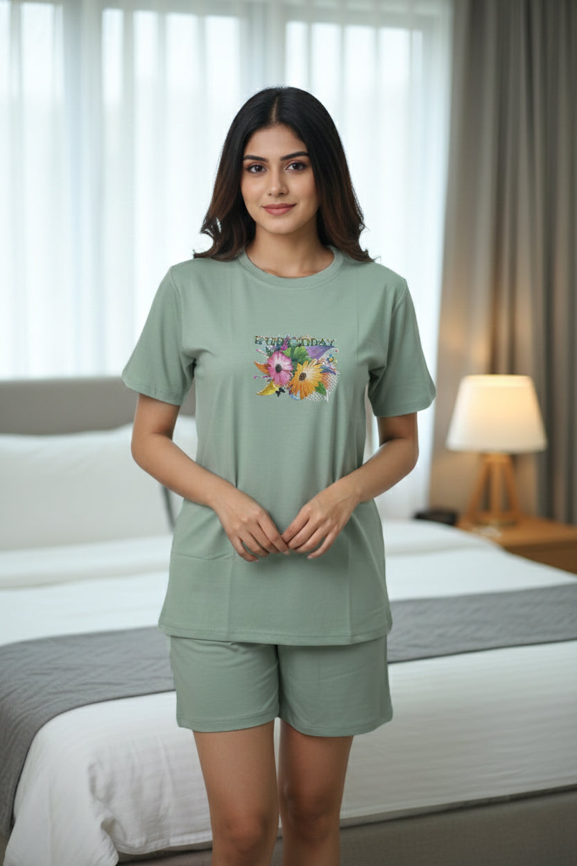 Co-Ord Set – Printed Baniyan Fabric(Night dress)