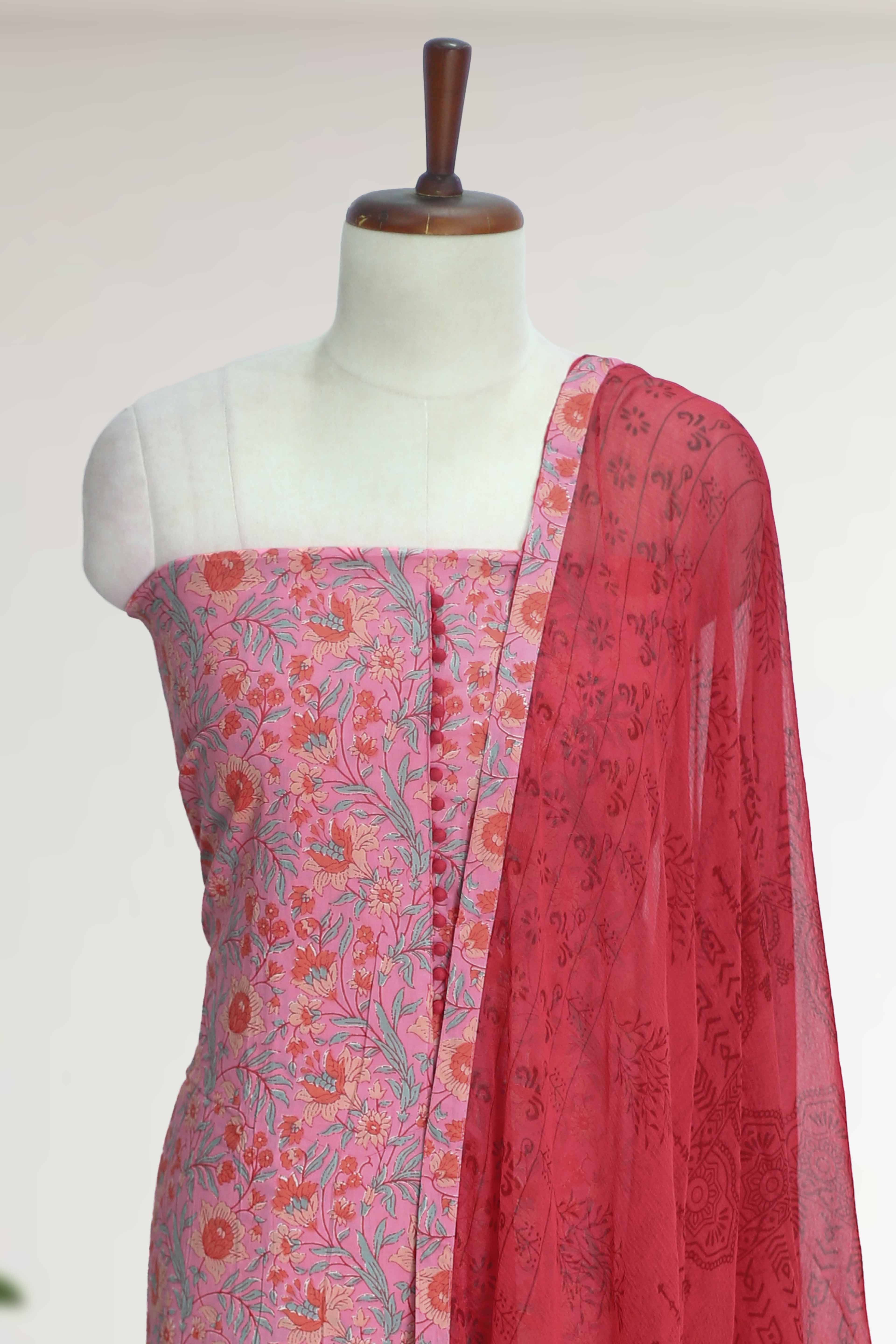 Cotton Churidar Material – Button Work & Floral Print – suryasilksonline.com