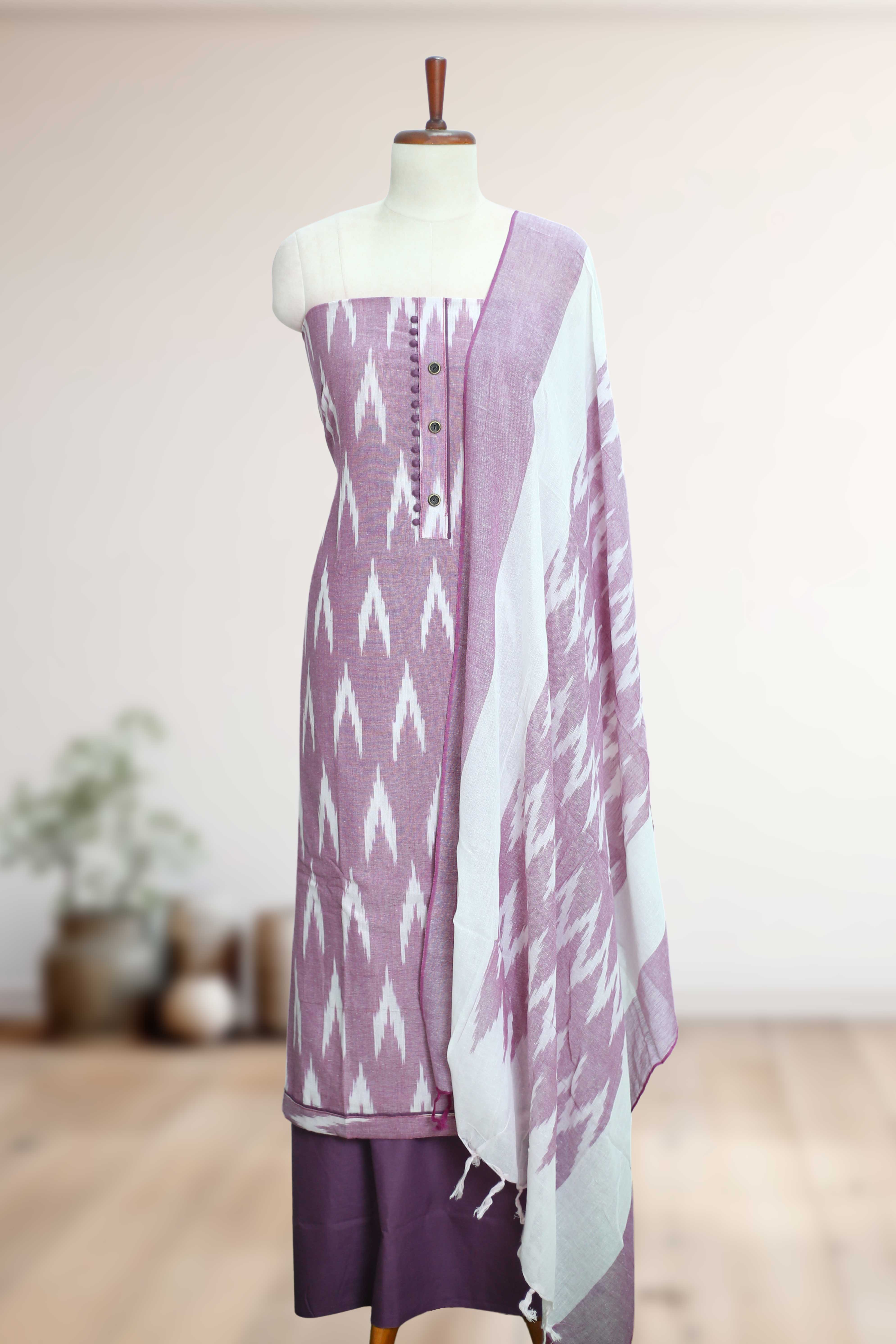 Traditional ekkath design for an elegant ethnic lookComfortable cotton fabric suitable for daily and festive wearUnstitched material for a customized fit