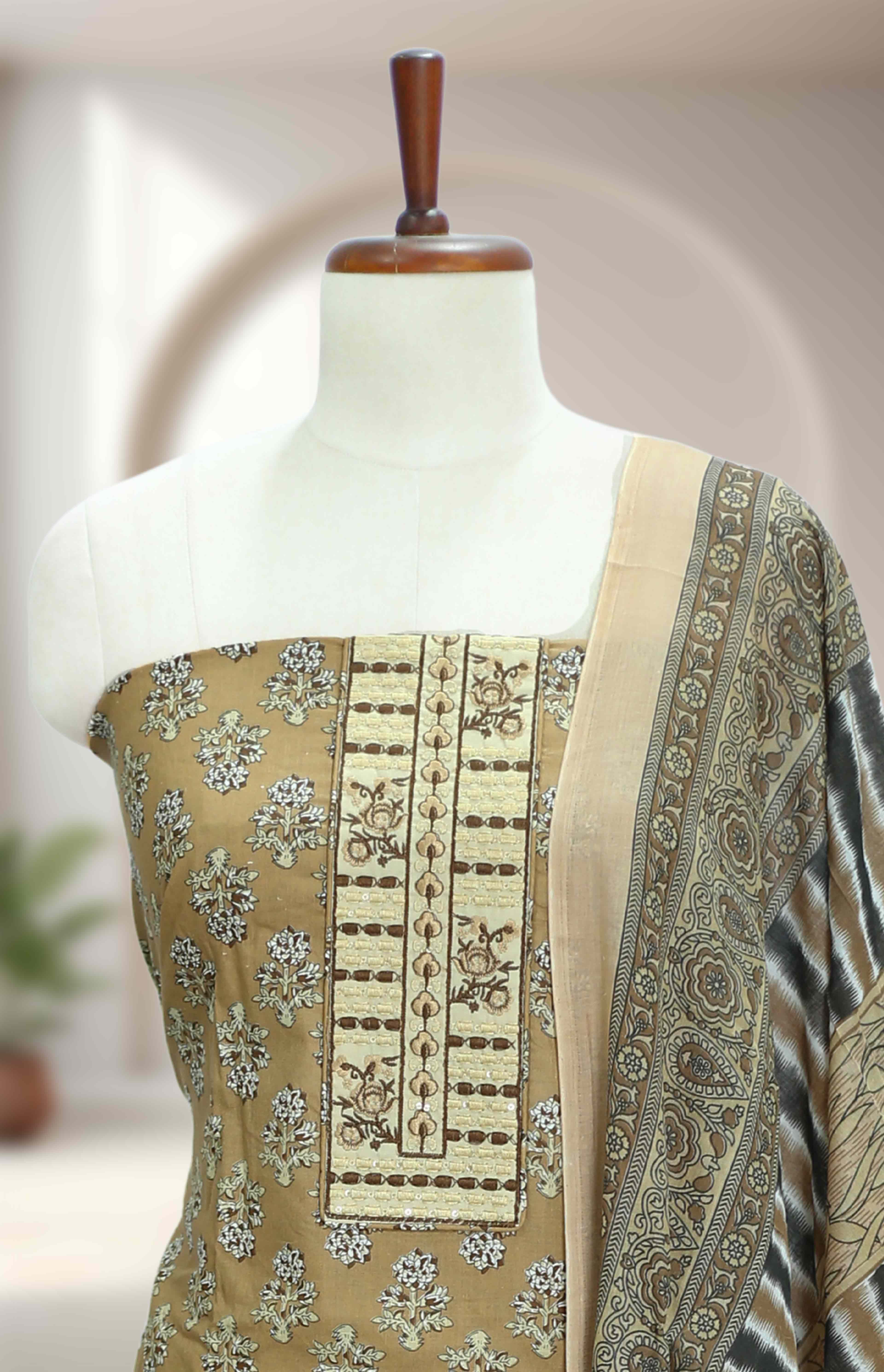 Cotton Churidar Material Thread and Sequins Work