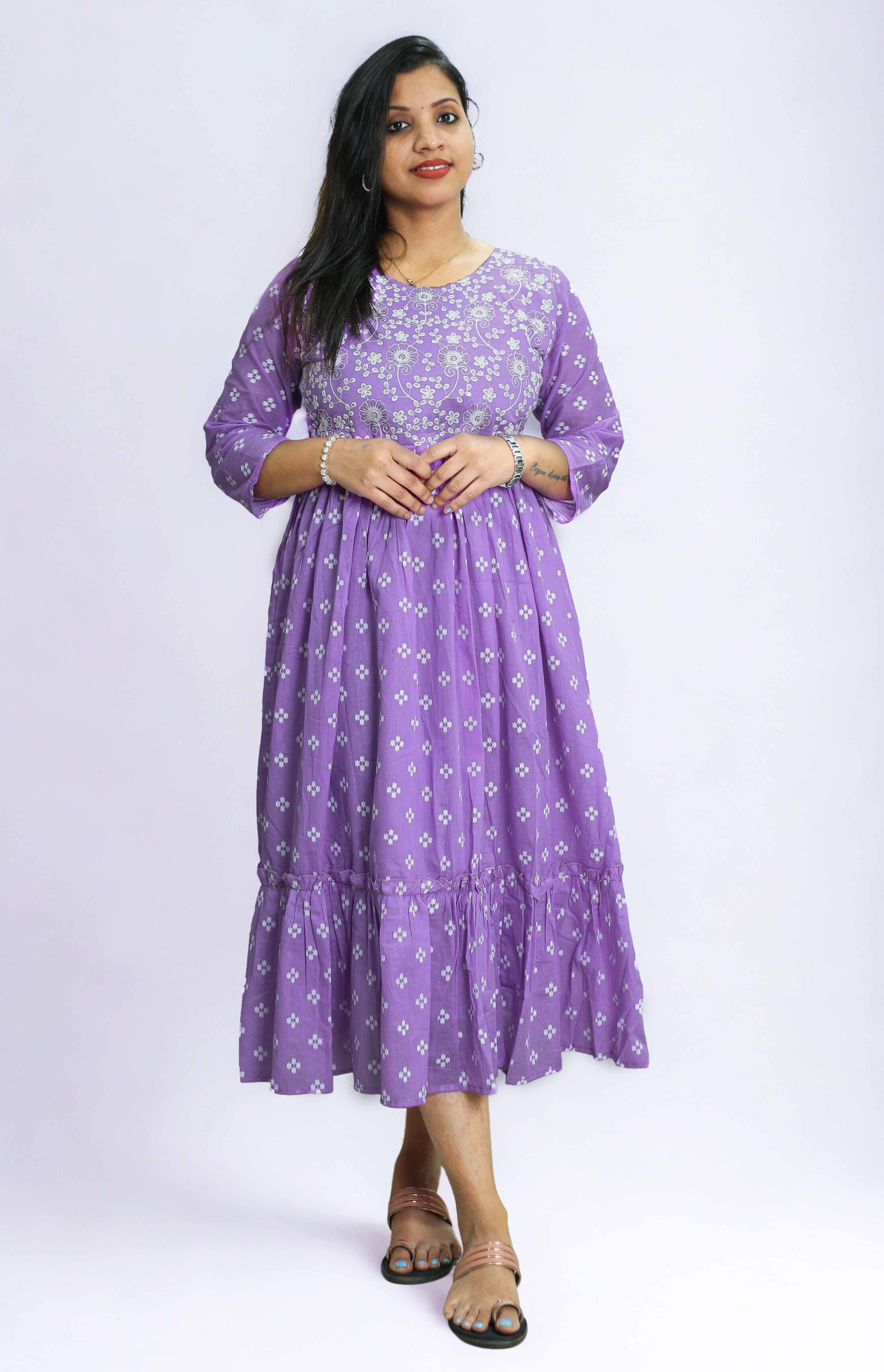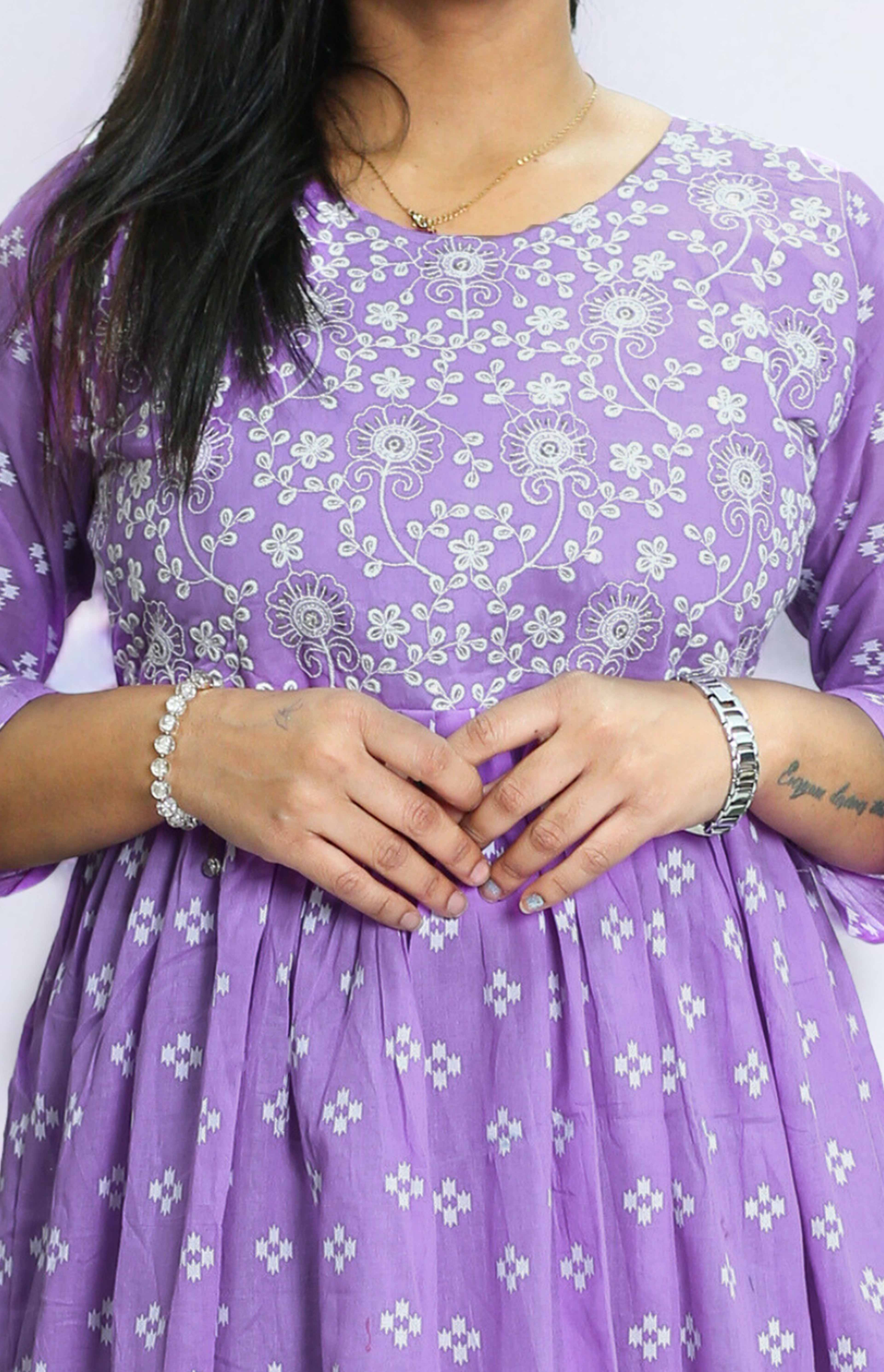 Cotton Kurti – Floral Thread & Sequins Work – suryasilksonline.com