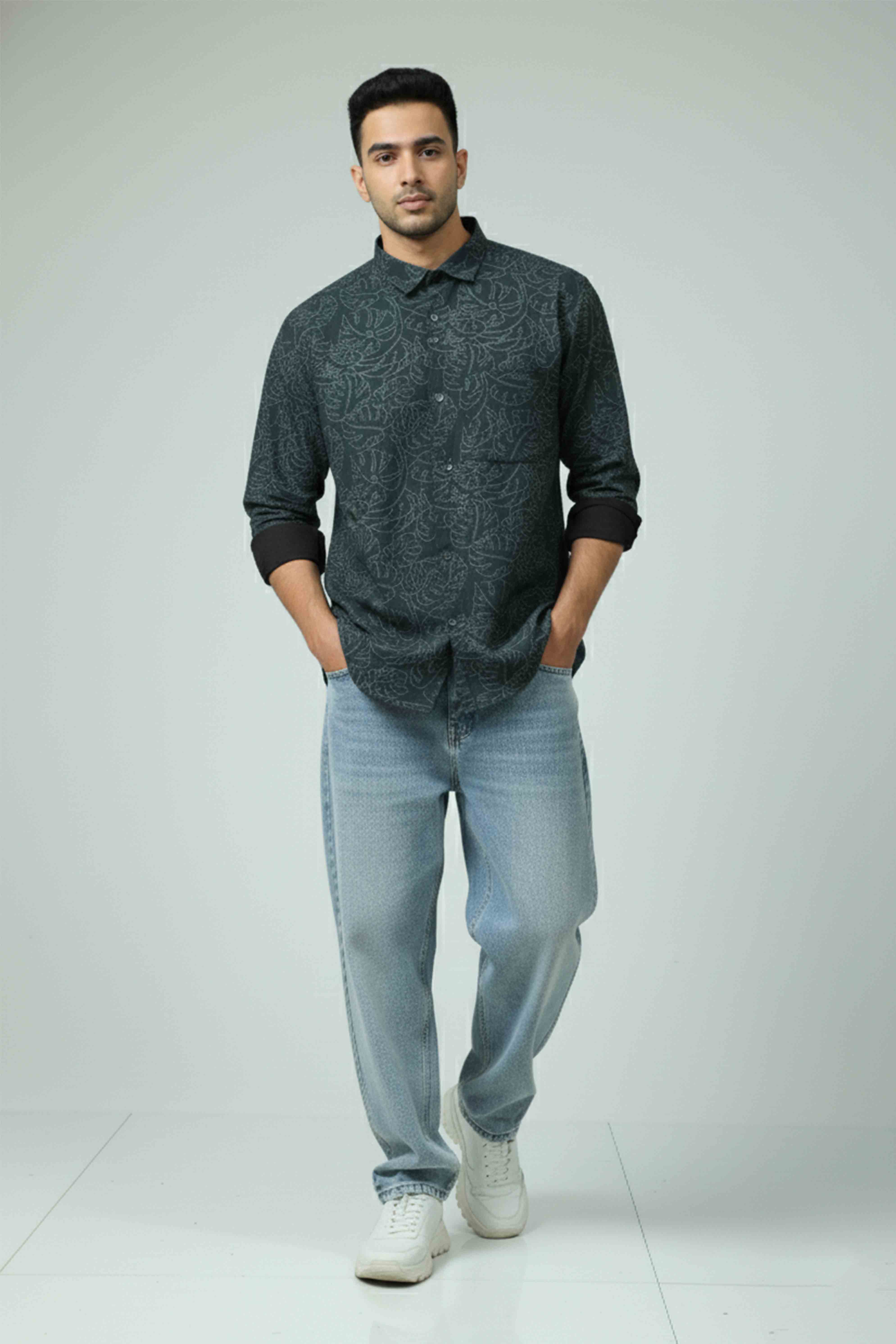 A stylish men’s casual shirt designed for everyday comfort and smart looks, featuring modern prints on breathable cotton fabric.