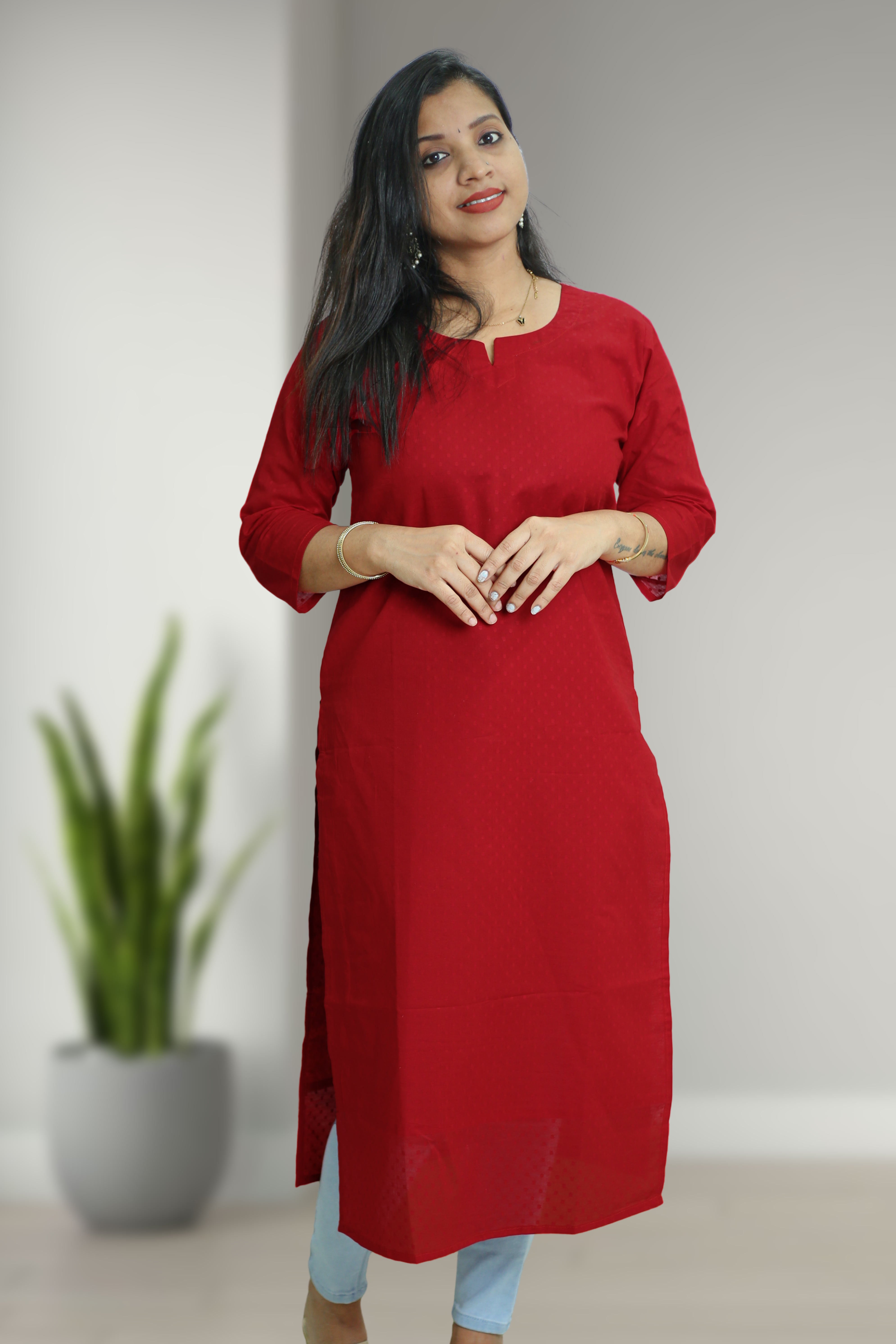 Comfortable cotton kurti with a subtle light-dot pattern and stylish notch neck — ideal for daily wear, office use & casual outings.